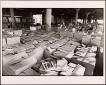 A black and white photograph depicting a view of an Institute for Scientific Information (ISI) warehouse filled with cardboard boxes. The ISI was an academic publishing service, founded by Eugene Garfield (1925-2017) in…