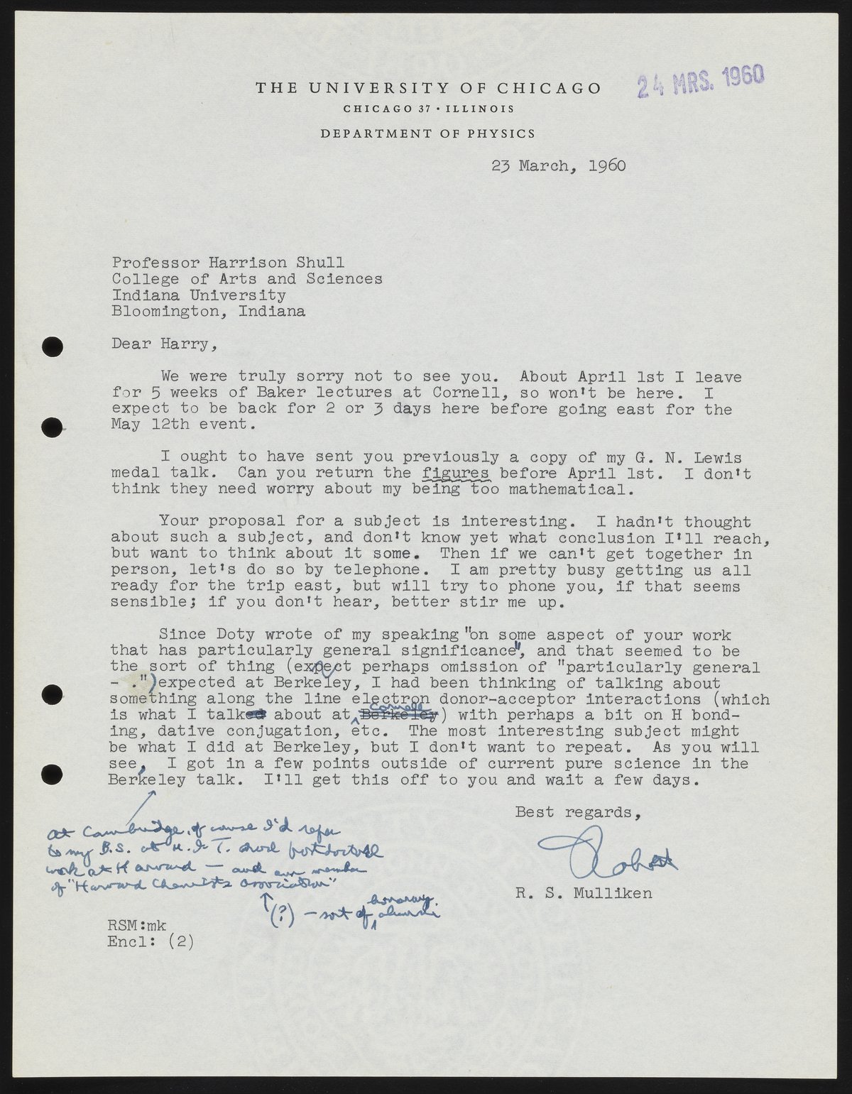 Mulliken, Robert Sanderson. “Letter from Robert S. Mulliken to Harrison Shull, 1960,” March 23, 1960. Robert S. Mulliken & Harrison Shull Correspondence, Box 1. Science History Institute. Philadelphia. https://digital.sciencehistory.org/works/02870v933.