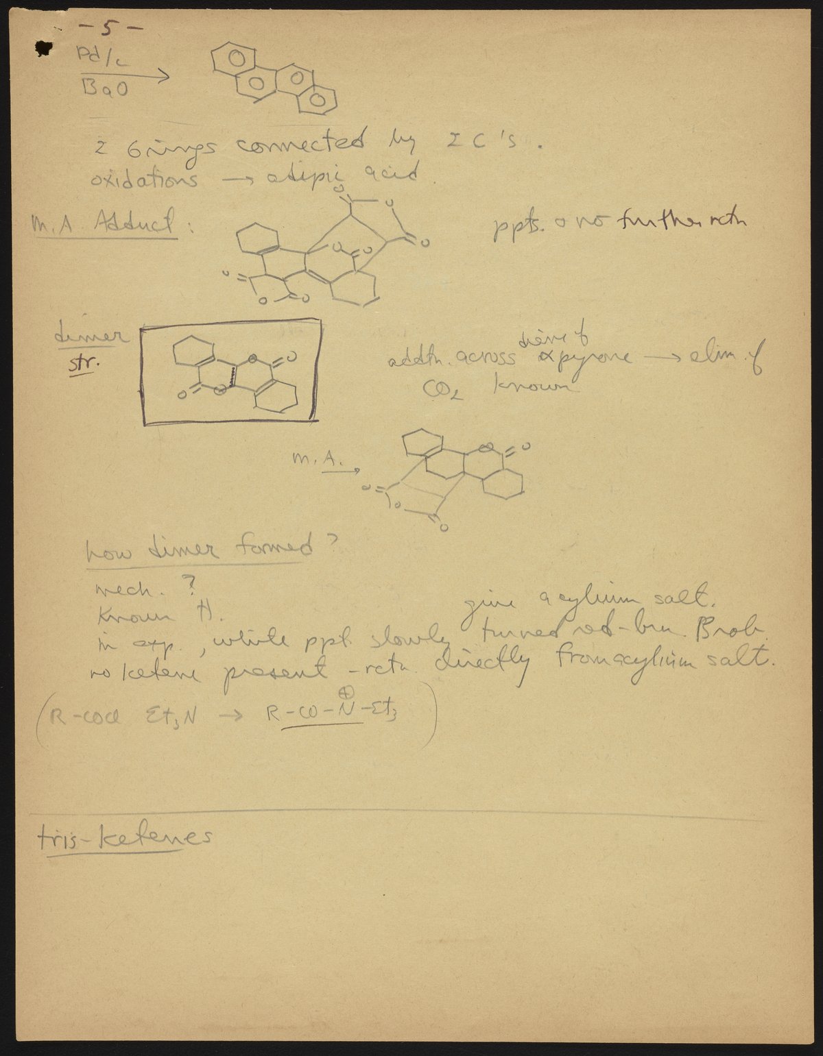 Kohler, Robert E. “R. B. (Robert Burns) Woodward Seminar Entitled ‘Bis-Ketenes.’” Notes from R. B. (Robert Burns) Woodward's Seminars, circa 1959–1966. Folder 2. Science History Institute. Philadelphia. https://digital.sciencehistory.org/works/05741s75m.