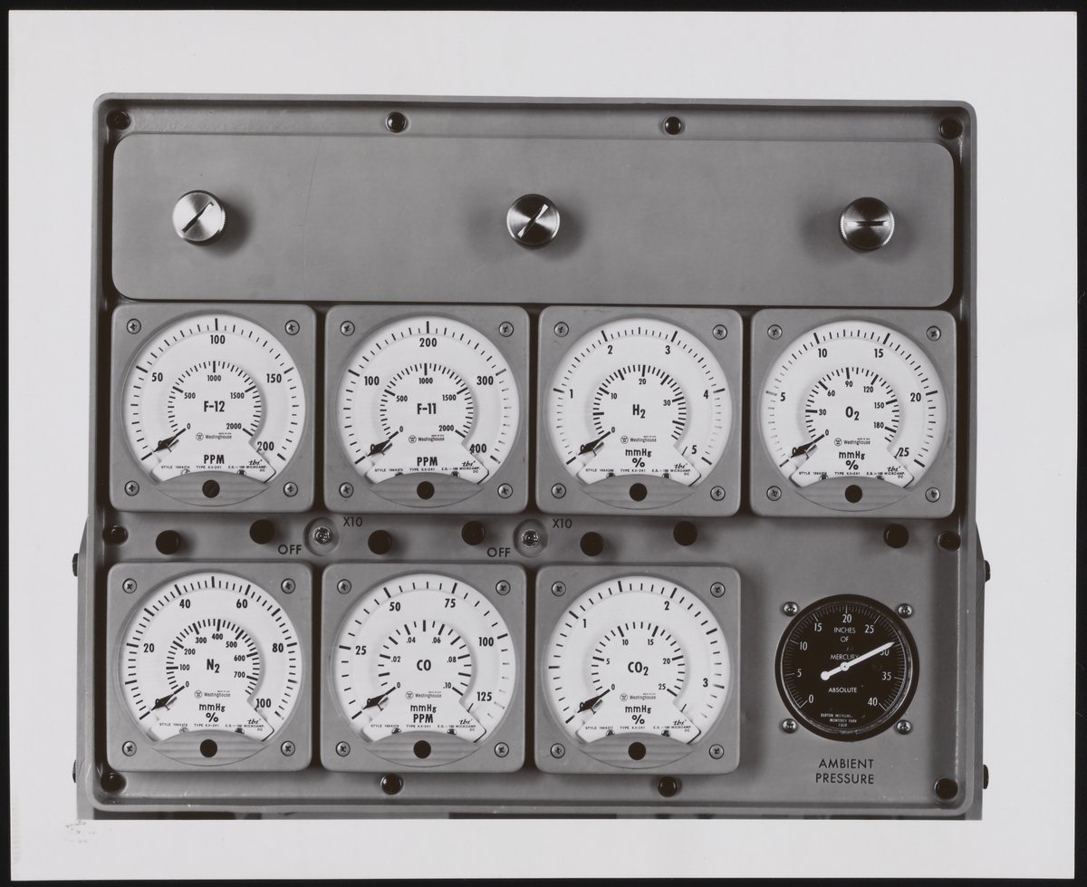 Small JPG1200 x 1464px — 97.7 KBFull-sized JPG2564 x 3128px — 329 KBOriginal fileTIFF — 2564 x 3128px — 23.0 MBBeckman originally produced 27 Mark V Atmosphere Analyzers for use on nuclear ballistic missile submarines. The instrument measured oxygen, hydrogen, carbon dioxide, carbon monoxide, freon, and other atmospheric contaminants and completed an analysis ever fifteen minutes.