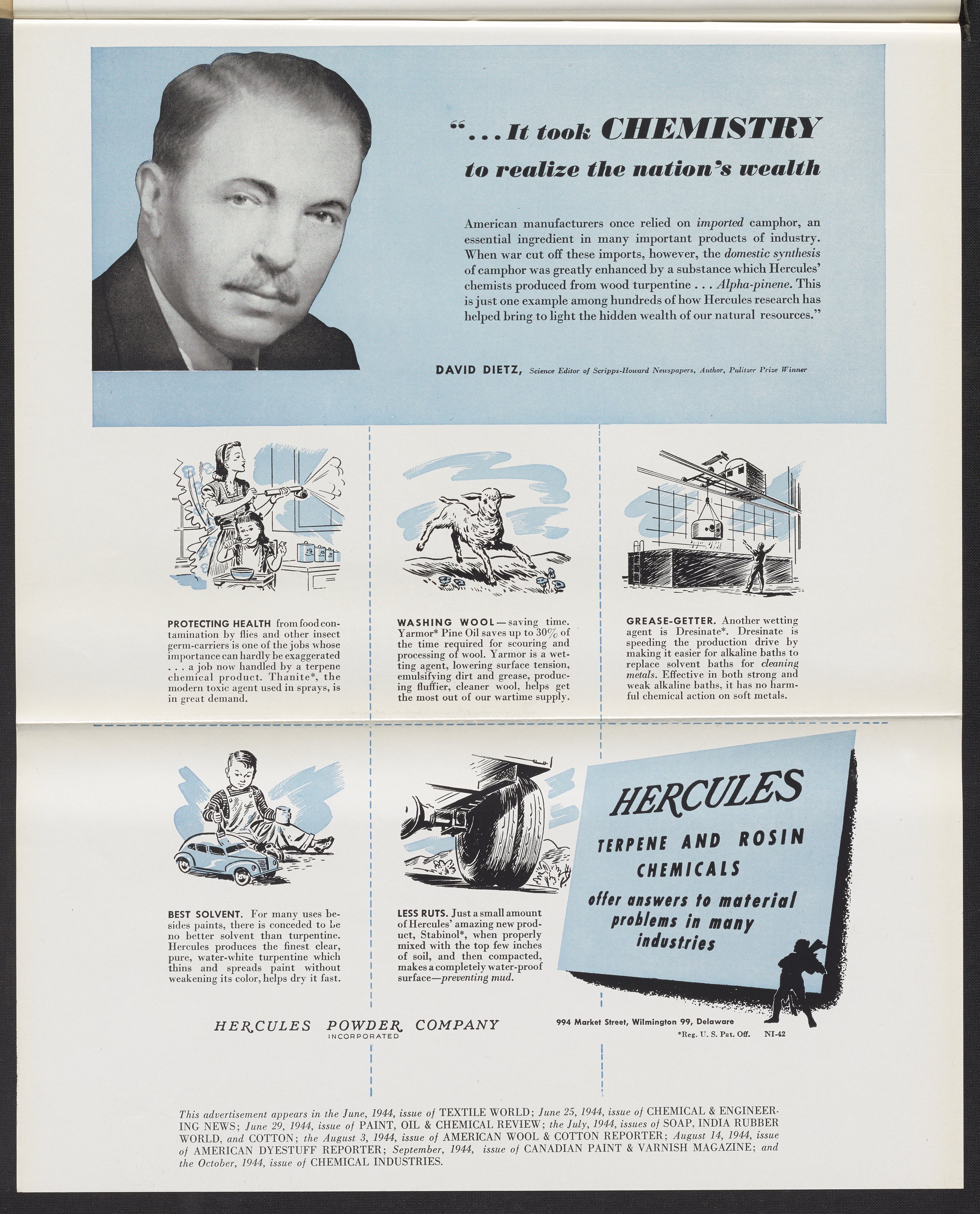 Hercules Incorporated. “"...It Took CHEMISTRY to Realize the Nation's Wealth.’” 1944 Hercules Advertisements, 1944. Records of Hercules Incorporated, Volume 1944. Science History Institute. Philadelphia. https://digital.sciencehistory.org/works/0c483k191.
