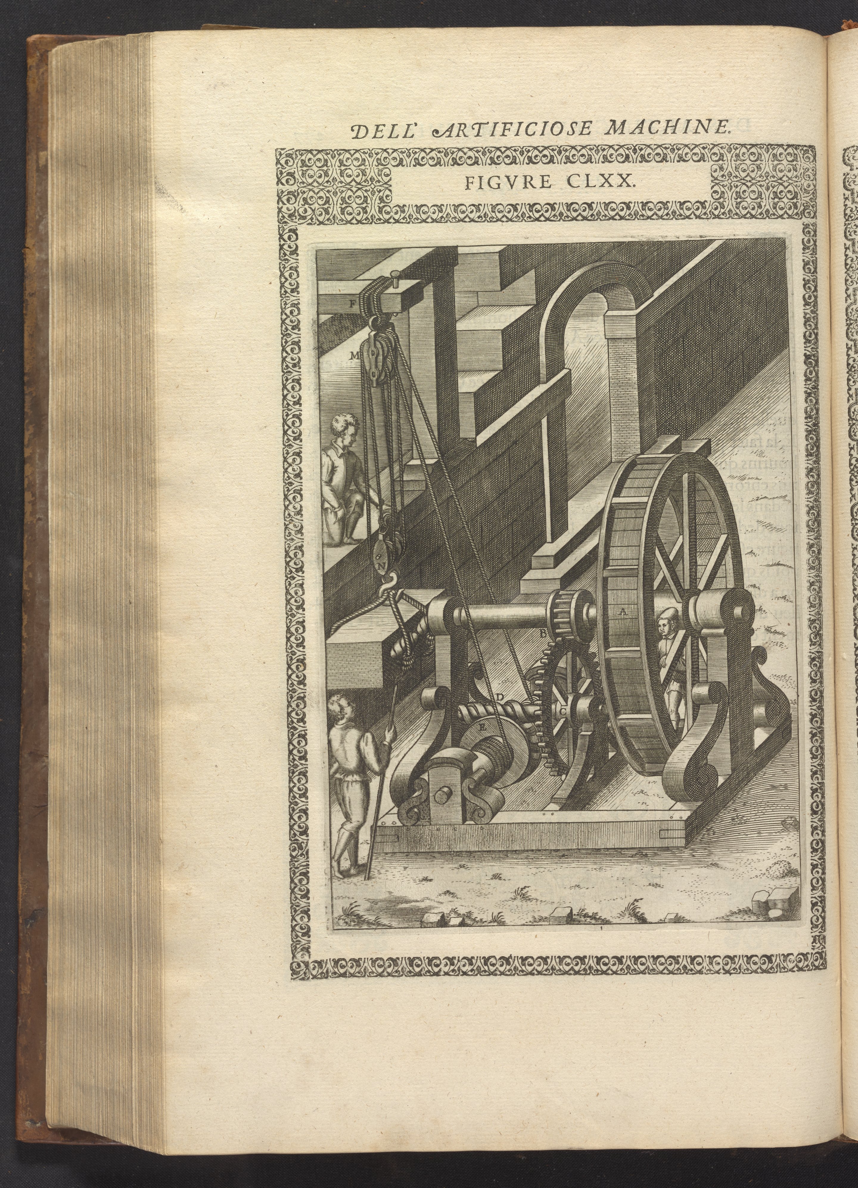 Ramelli, Agostino. “Plate 170: Crane for Lifting Heavy Weights.” In Le Diverse Et Artificiose Machine Del Capitano Agostino Ramelli. Paris, France, 1588. https://digital.sciencehistory.org/works/0p0967292.