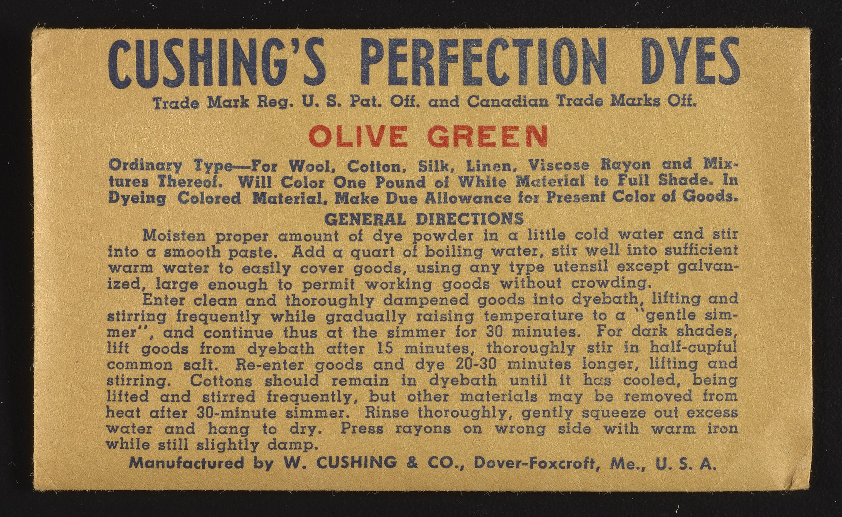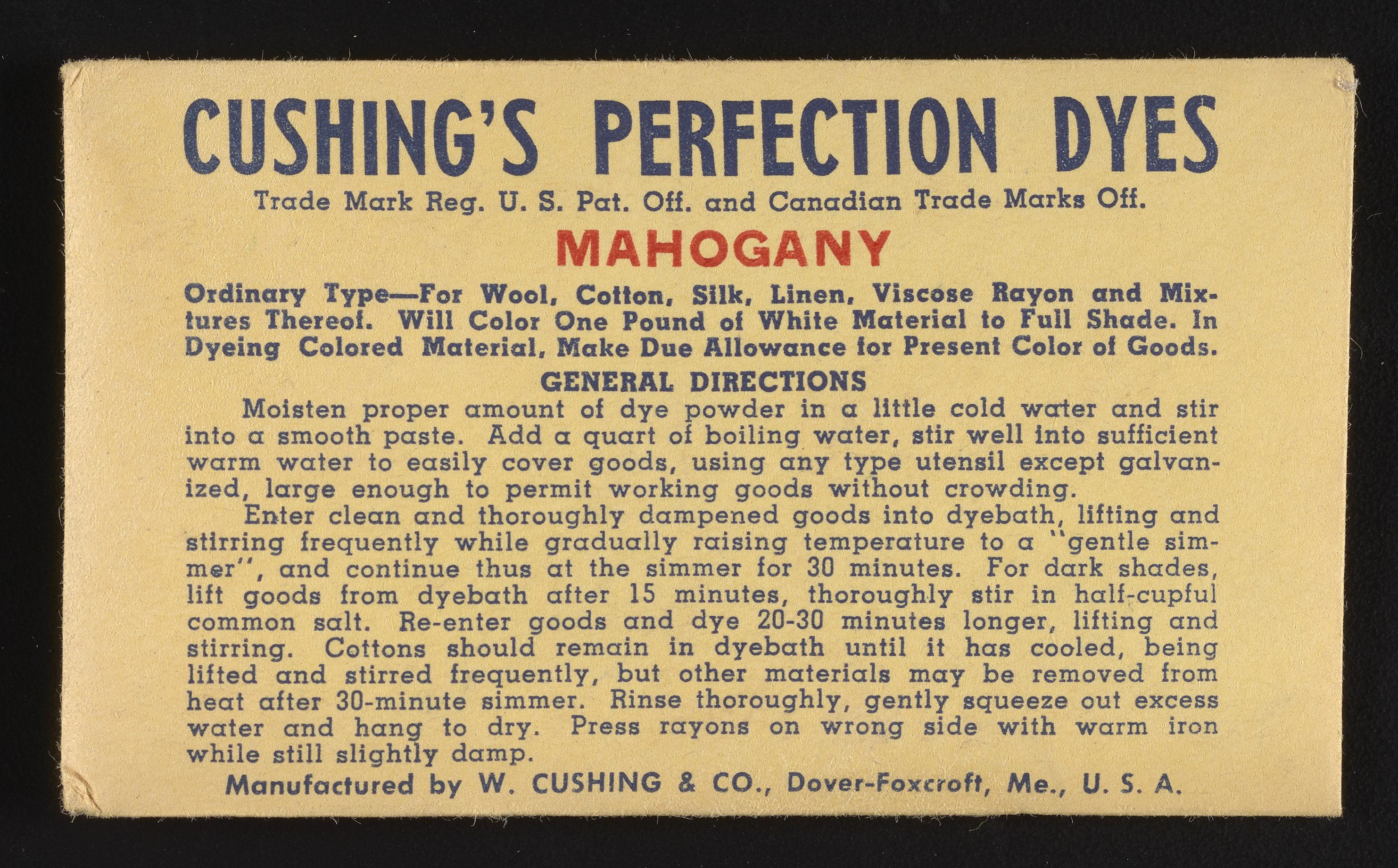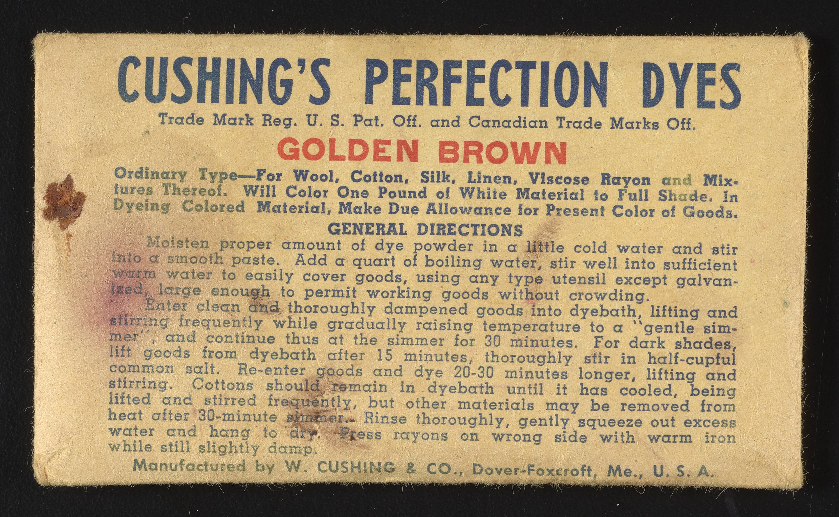 “Cushing's Perfection Dyes Set.” Paper (fiber product), n.d. Science History Institute. Philadelphia. https://digital.sciencehistory.org/works/0r9673780.