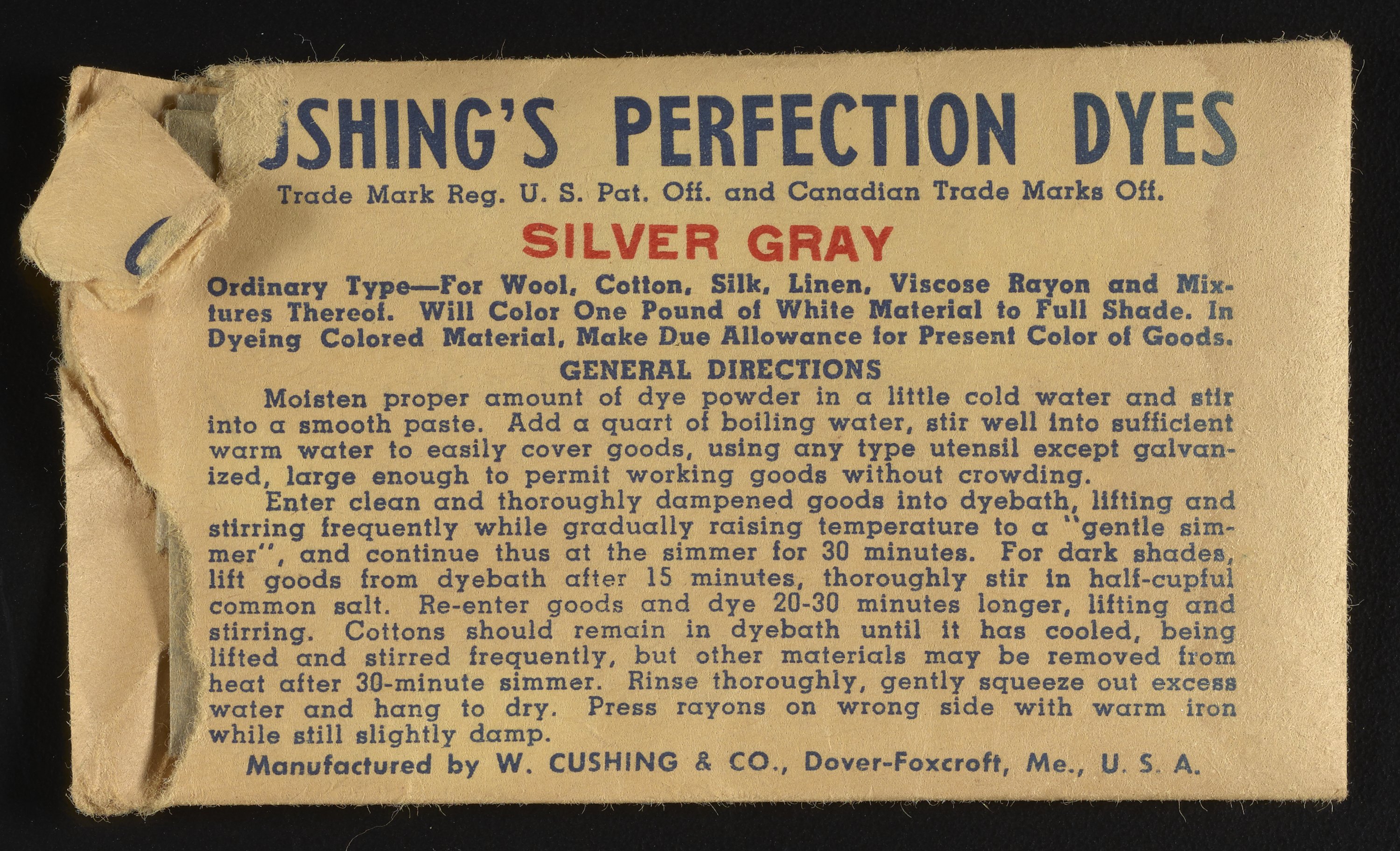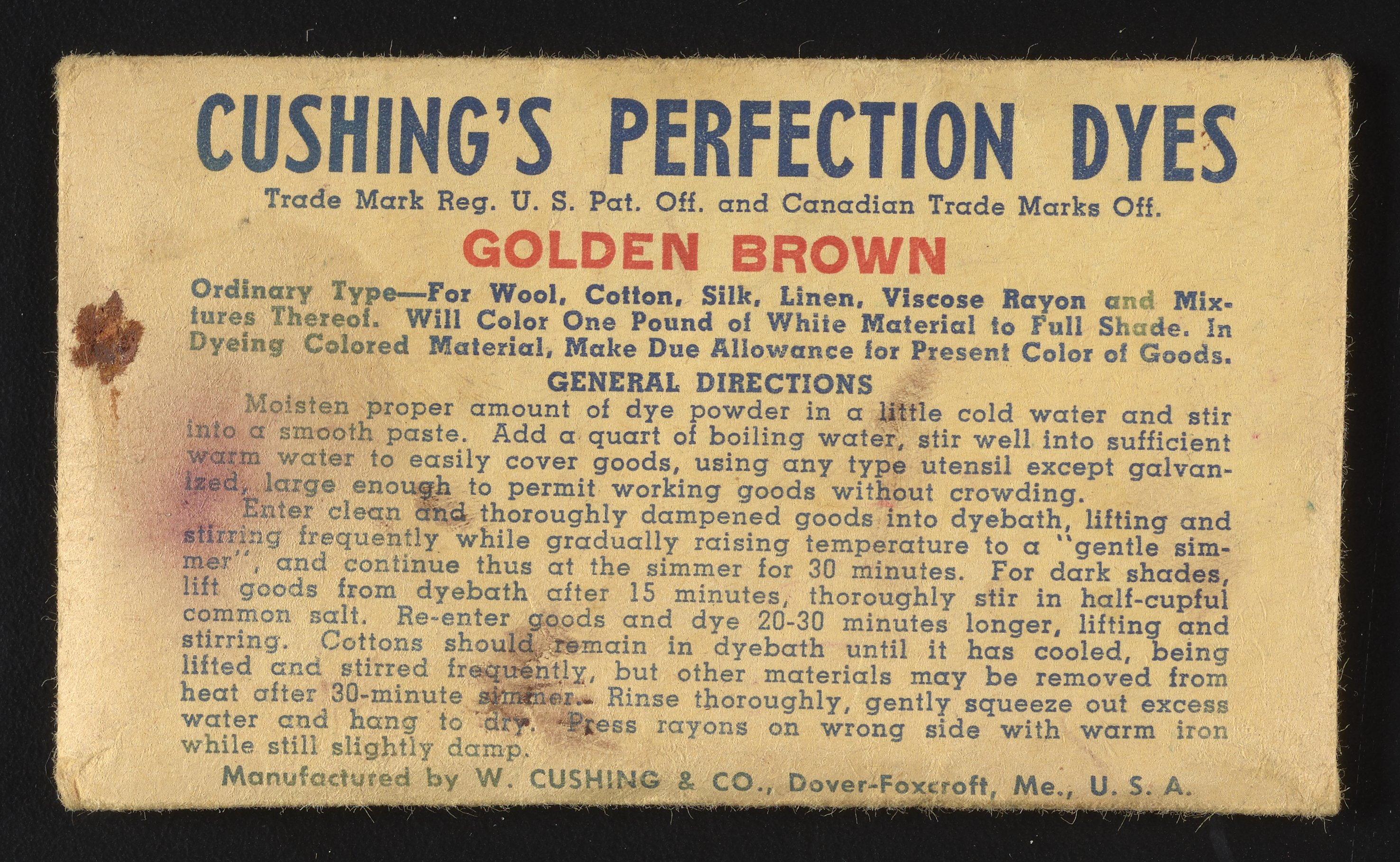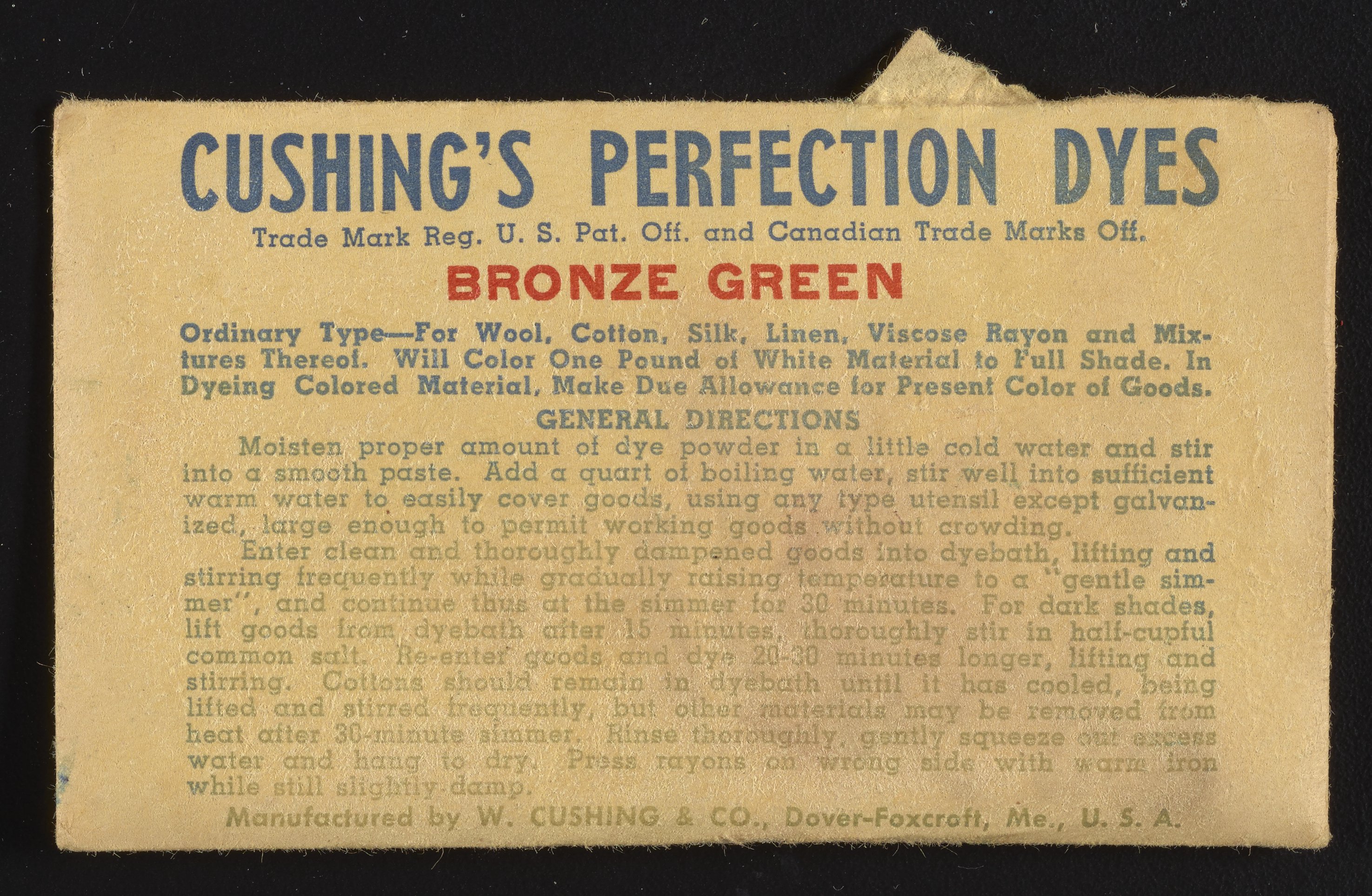 “Cushing's Perfection Dyes Set.” Paper (fiber product), n.d. Science History Institute. Philadelphia. https://digital.sciencehistory.org/works/0r9673780.