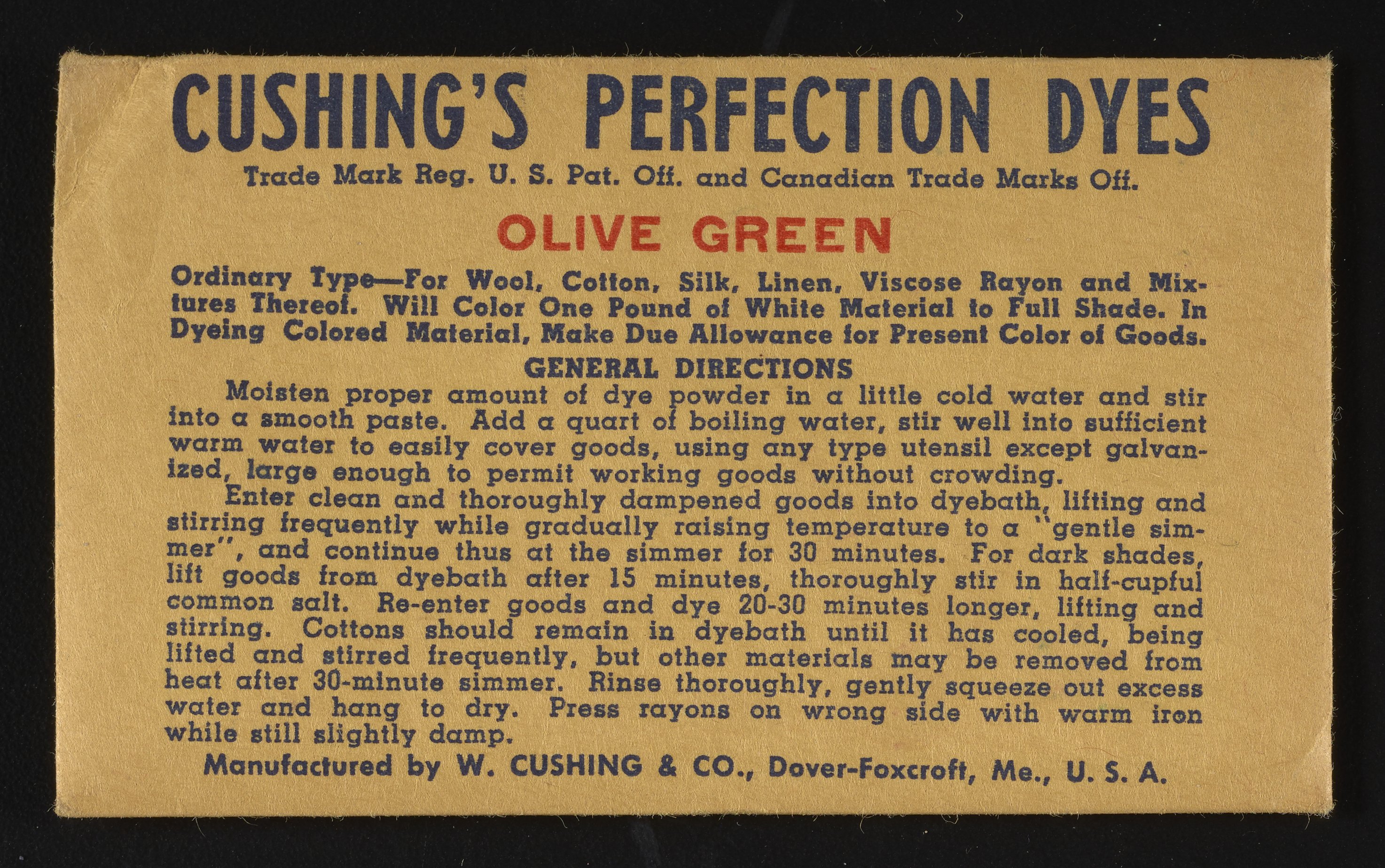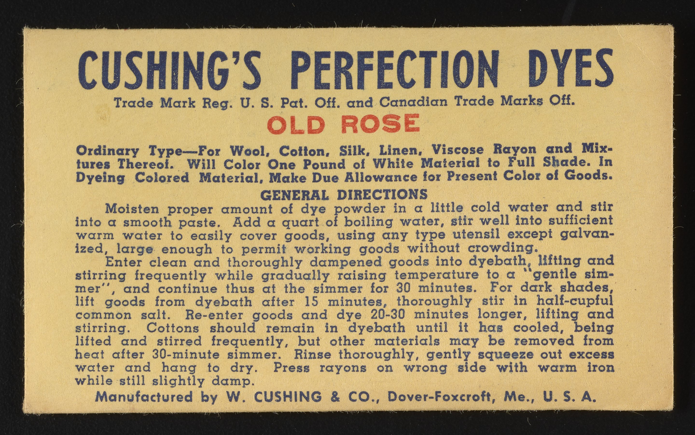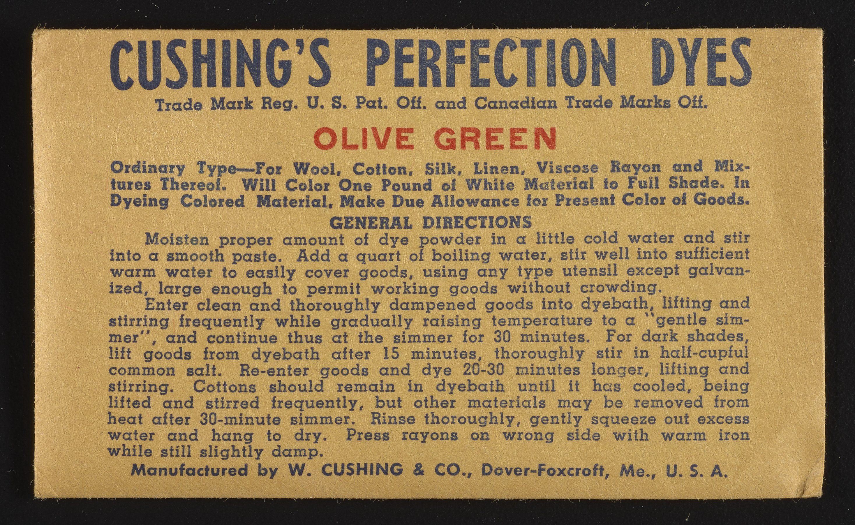 “Cushing's Perfection Dyes Set.” Paper (fiber product), n.d. Science History Institute. Philadelphia. https://digital.sciencehistory.org/works/0r9673780.