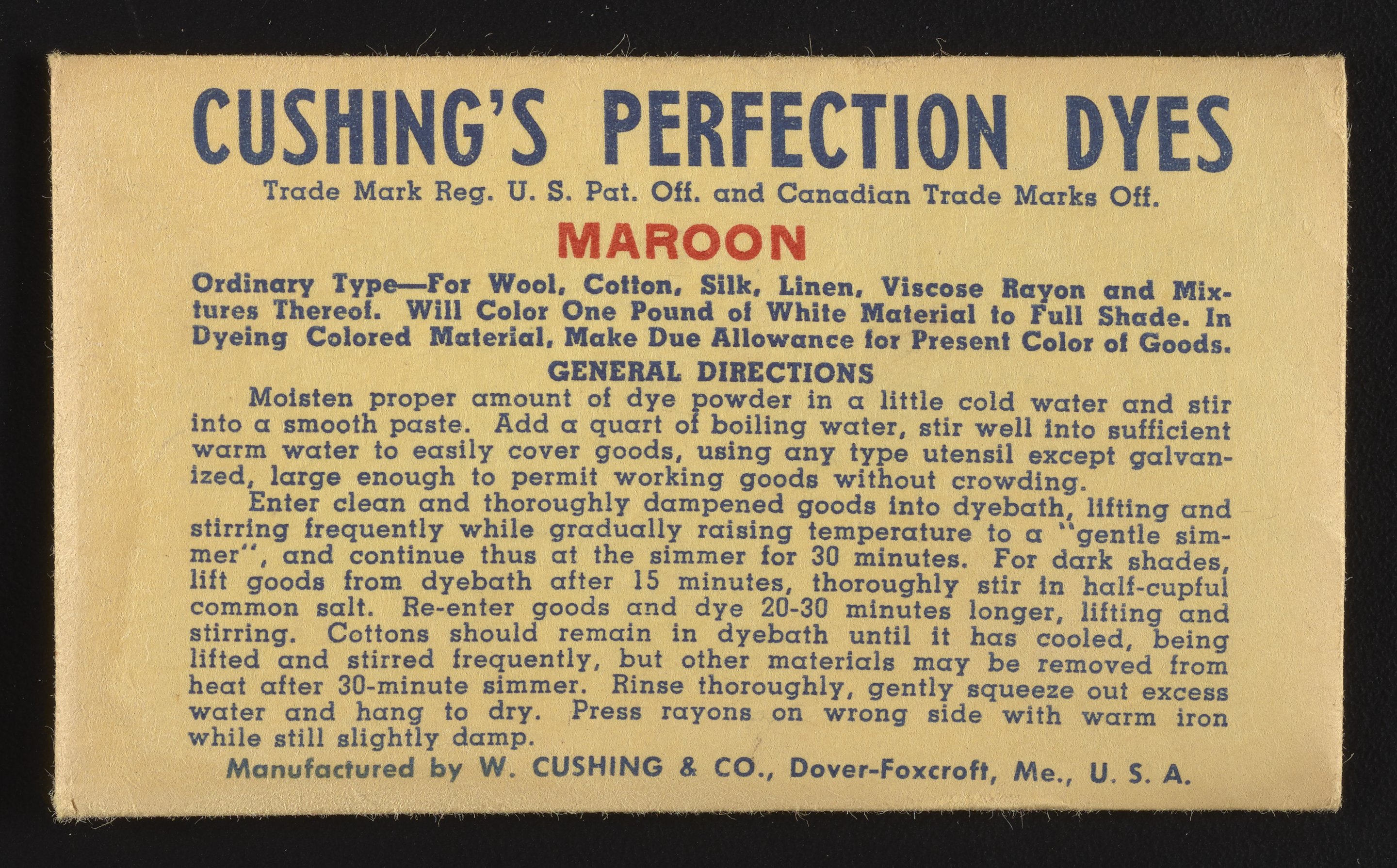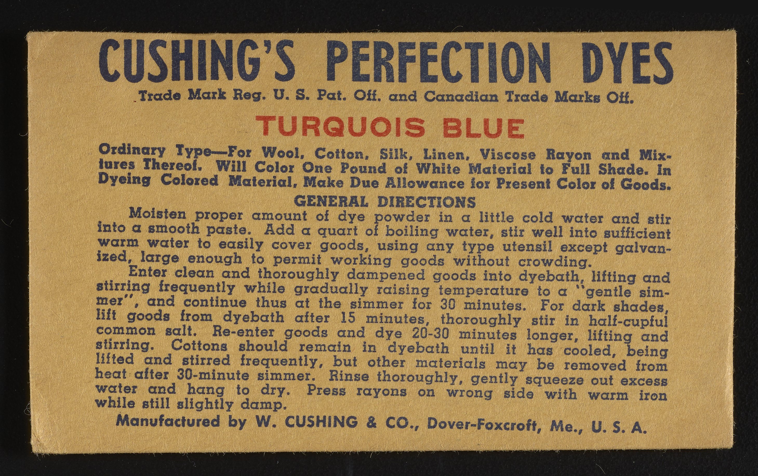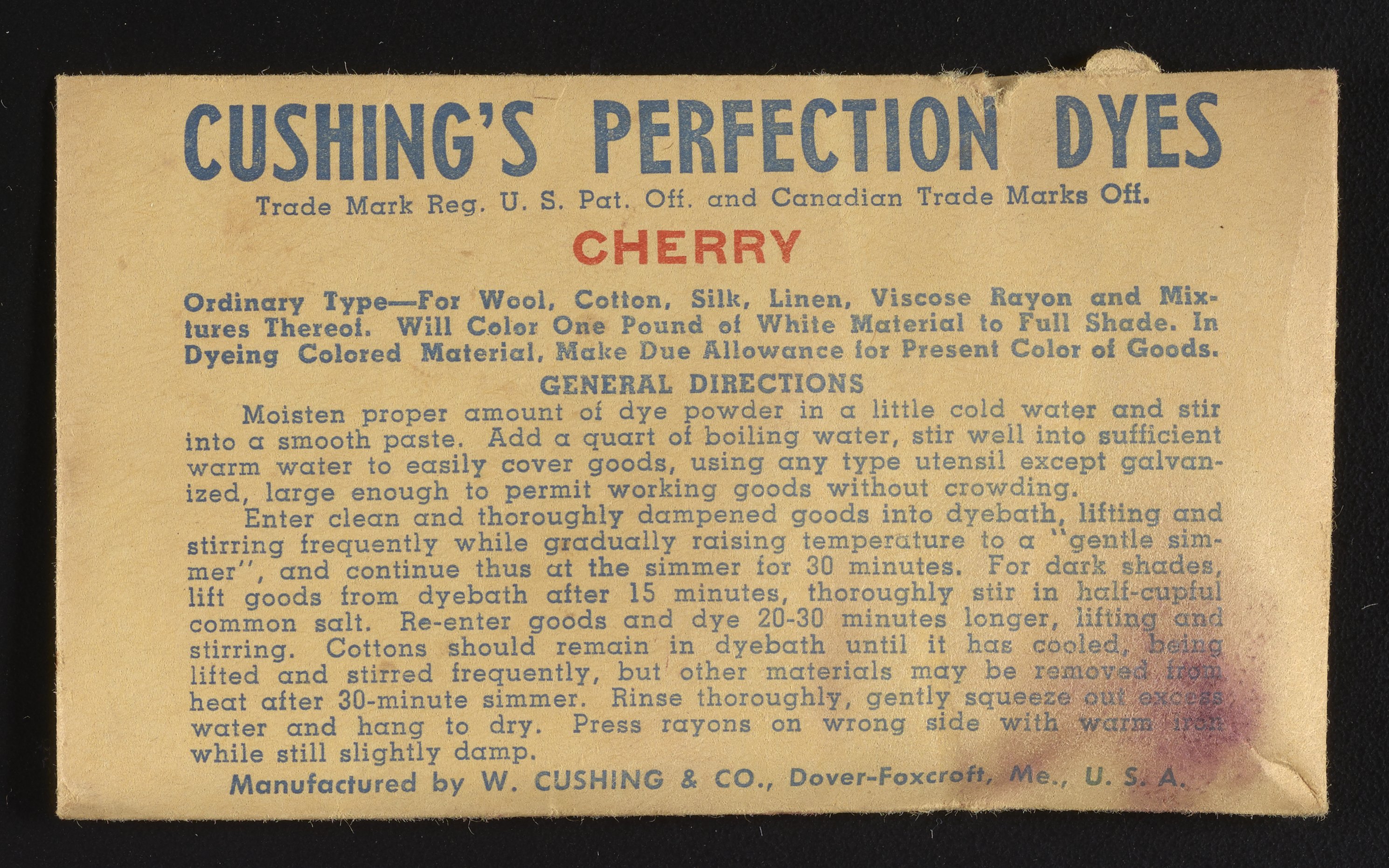 “Cushing's Perfection Dyes Set.” Paper (fiber product), n.d. Science History Institute. Philadelphia. https://digital.sciencehistory.org/works/0r9673780.