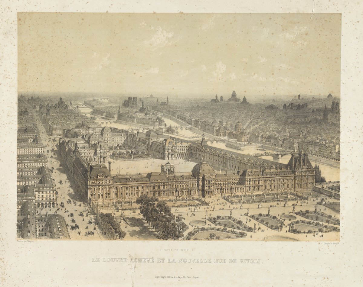 Benoist, Philippe. “Le Louvre Achevé Et La Nouvelle Rue De Rivoli,” circa 1826–1865. Science History Institute. Philadelphia. https://digital.sciencehistory.org/works/0r967457f.
