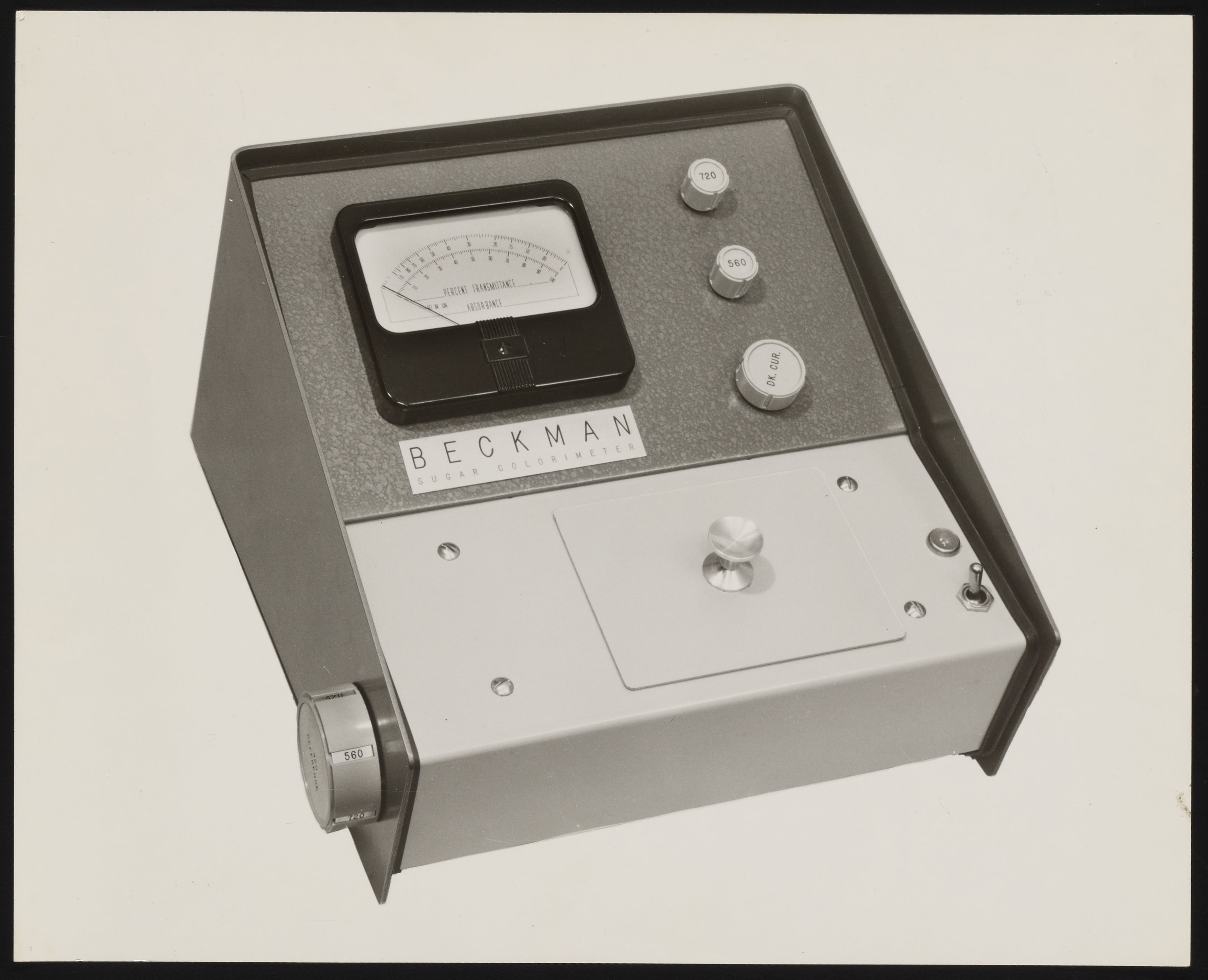 Preston E. Mitchell Commercial Photography. “Beckman Sugar Colorimeter,” 1950. Beckman Historical Collection, Box 55, Folder 166. Science History Institute. Philadelphia. https://digital.sciencehistory.org/works/0v8380612.