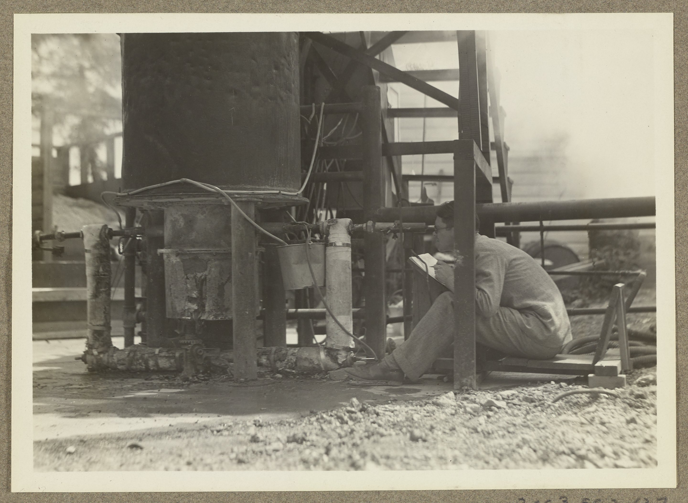 “Travis P. Hignett Measuring Combustion Temperature in Blast Furnace,” May 28, 1930. Travis P. Hignett Collection of Fixed Nitrogen Research Laboratory Photographs, Box 1. Science History Institute. Philadelphia. https://digital.sciencehistory.org/works/12579s42g.