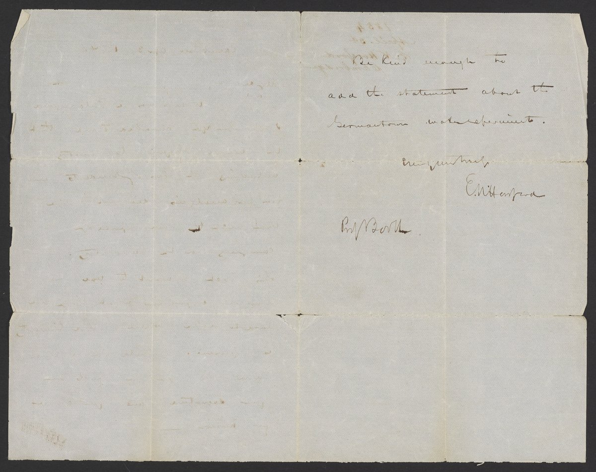 Small JPG1200 x 1863px — 644 KBFull-sized JPG2217 x 3441px — 2.0 MBOriginal fileTIFF — 2217 x 3441px — 21.9 MBEben Norton Horsford (1818-1893), a Harvard professor of agricultural chemistry, writes to James Curtis Booth (1810-1888) to inquire about courses offered by Booth.