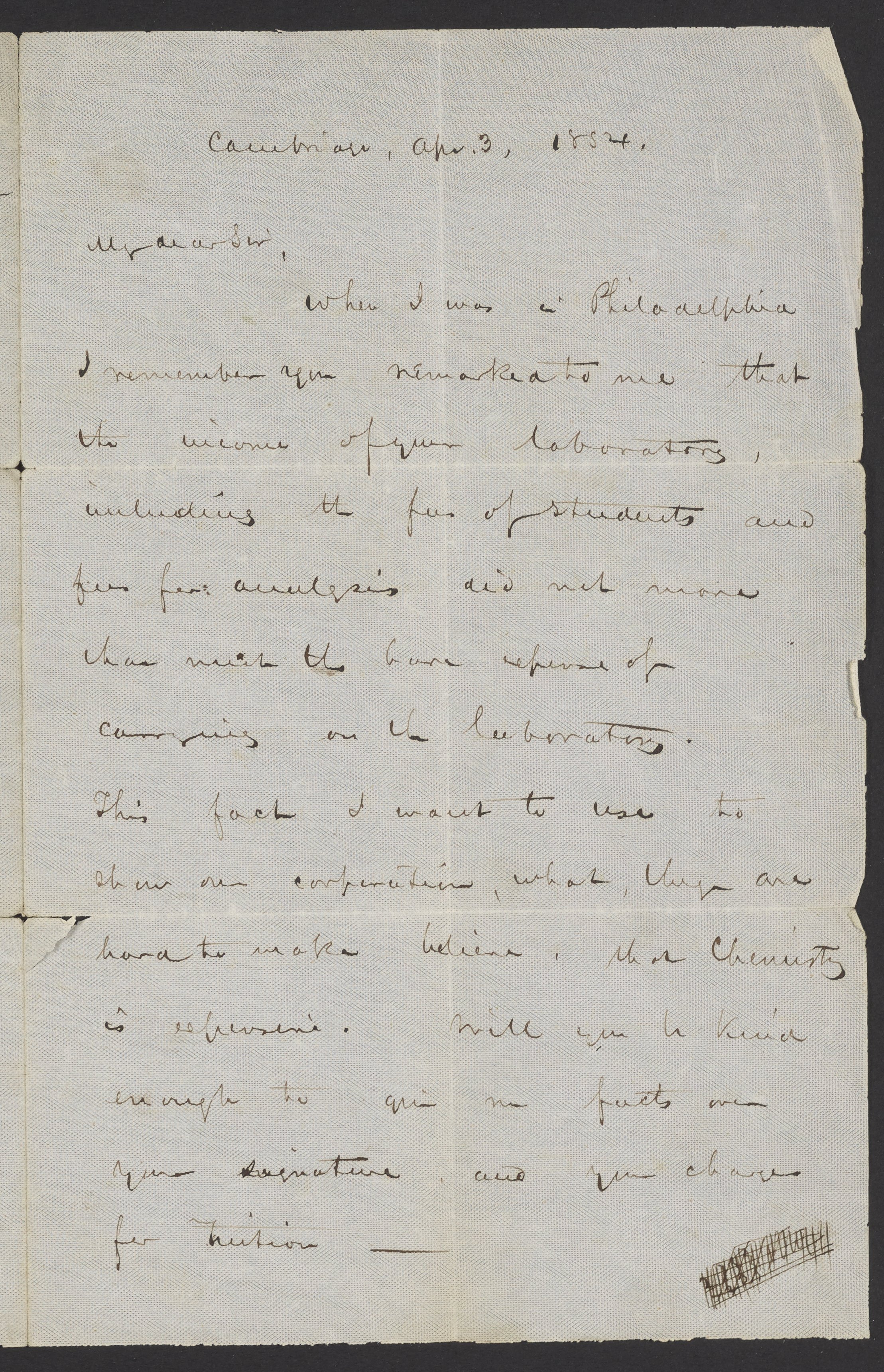 Letter from E.N. Horsford to James Curtis Booth, April 3, 1854