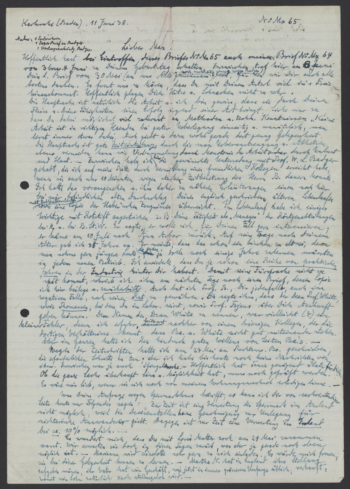 Letter from Georg Bredig to Max Bredig, June 11, 1938