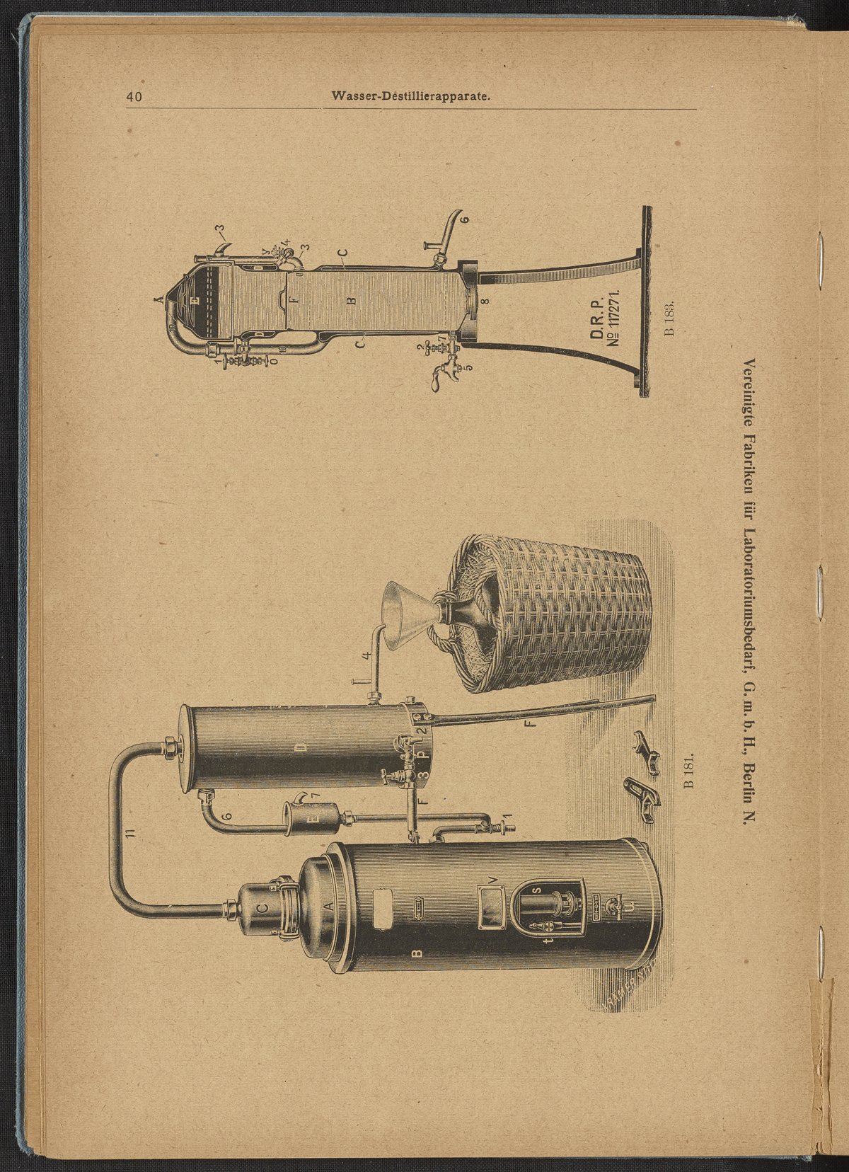 Vereinigte Fabriken für Laboratoriumsbedarf (Berlin). “Water Distillation Apparatuses.” Preis-Verzeichnis Über Apparate Und Gerätschaften Für Alle Laboratoriums-Arbeiten Im Gebiet Der Biochemie. Berlin, Germany, 1913. Science History Institute. Philadelphia. https://digital.sciencehistory.org/works/1831cj962.