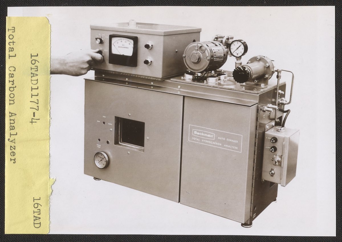 Dietrich, T. A. “Operator Adjusting a Dial on Beckman Auto Exhaust Total Hydrocarbon Analyzer,” n.d. Beckman Historical Collection, Box 84. Science History Institute. Philadelphia. https://digital.sciencehistory.org/works/1831ck284.