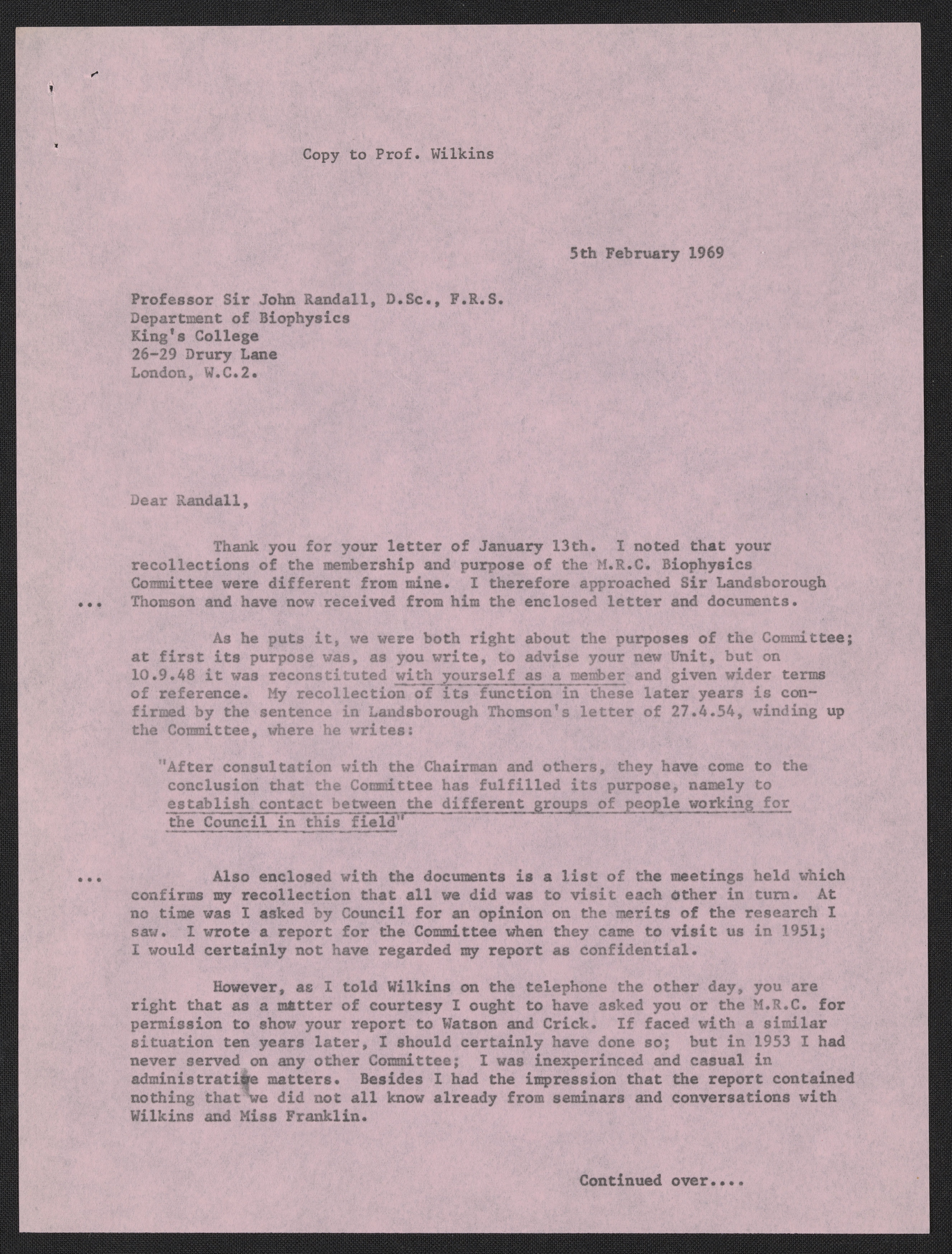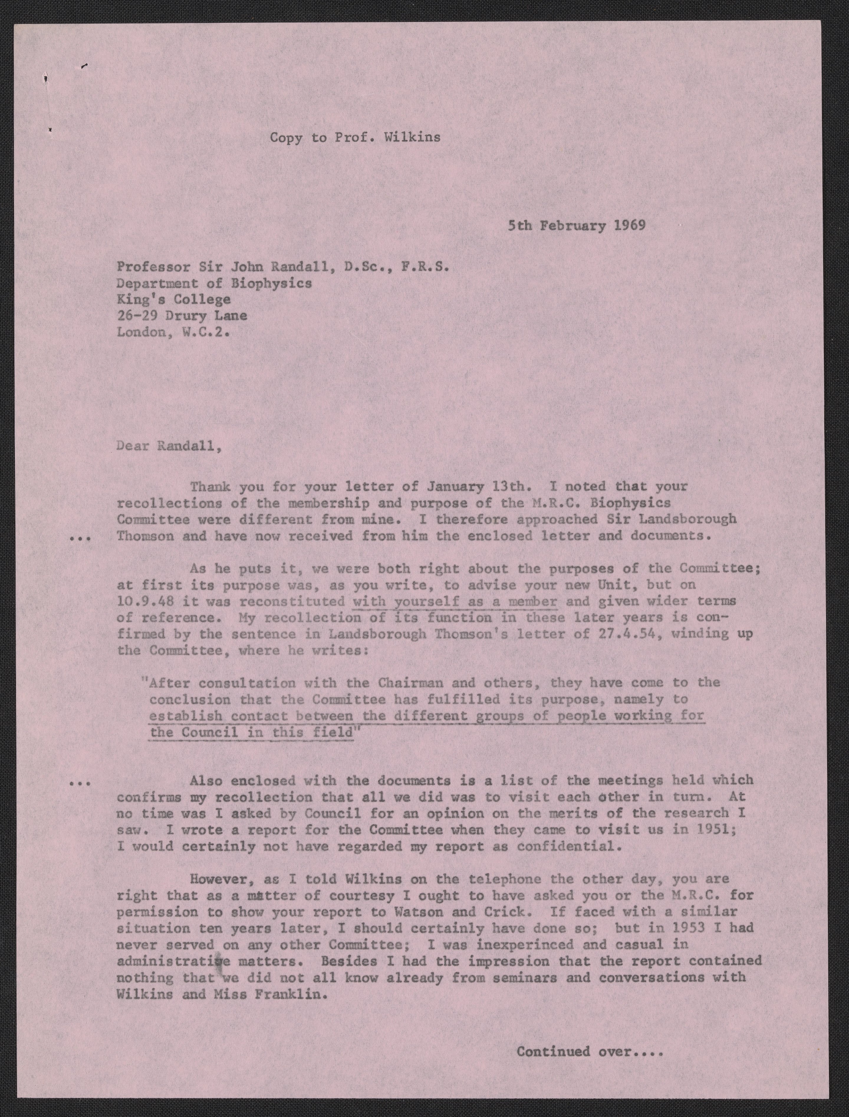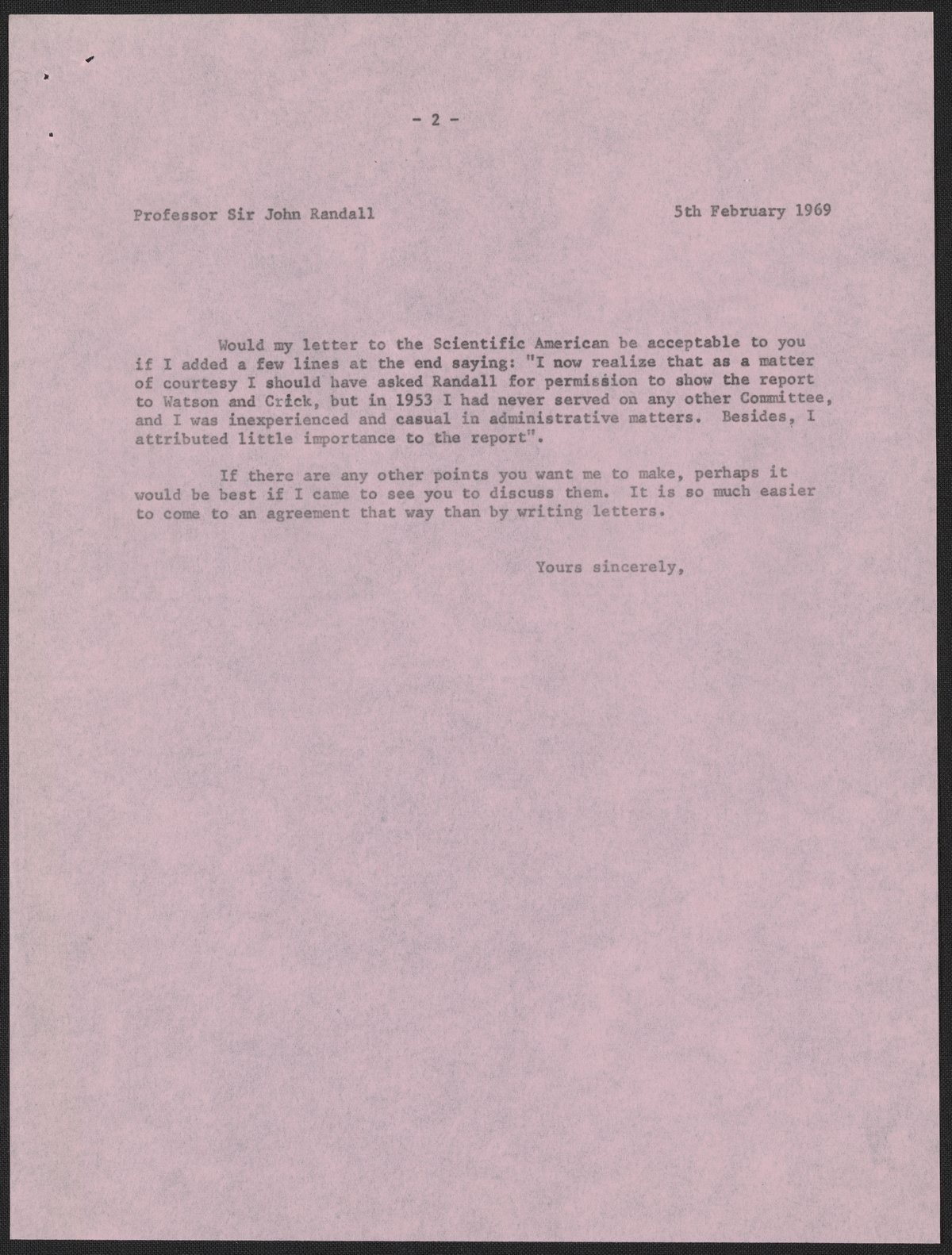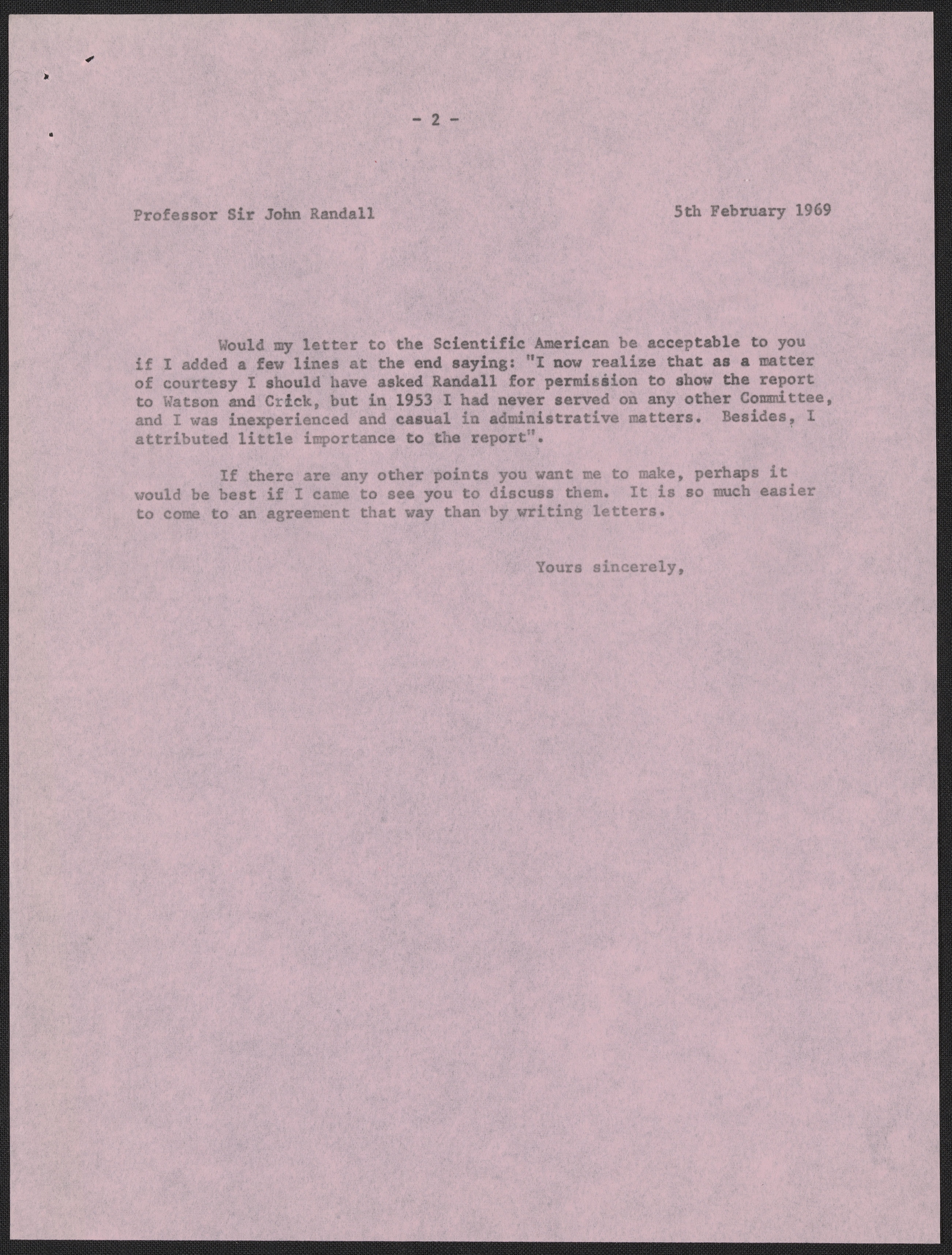 Perutz, Max F. “Letter from Max Perutz to John Randall, February 5, 1969,” February 5, 1969. History of Molecular Biology Collection, Box 88, Folder 3. Science History Institute. Philadelphia. https://digital.sciencehistory.org/works/1fru8hf.