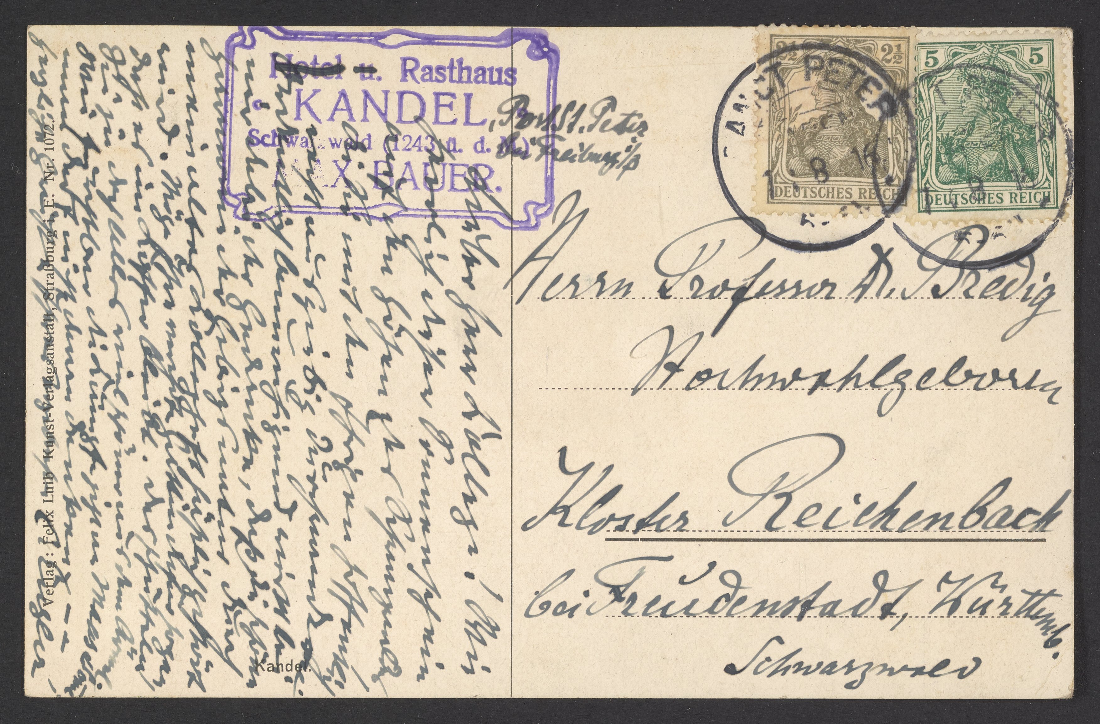 Engler, Carl. “Postcard from Carl Engler to Georg Bredig, August 1916,” August 1, 1916. Papers of Georg and Max Bredig, Box 1, Folder 36. Science History Institute. Philadelphia. https://digital.sciencehistory.org/works/1l5swfo.