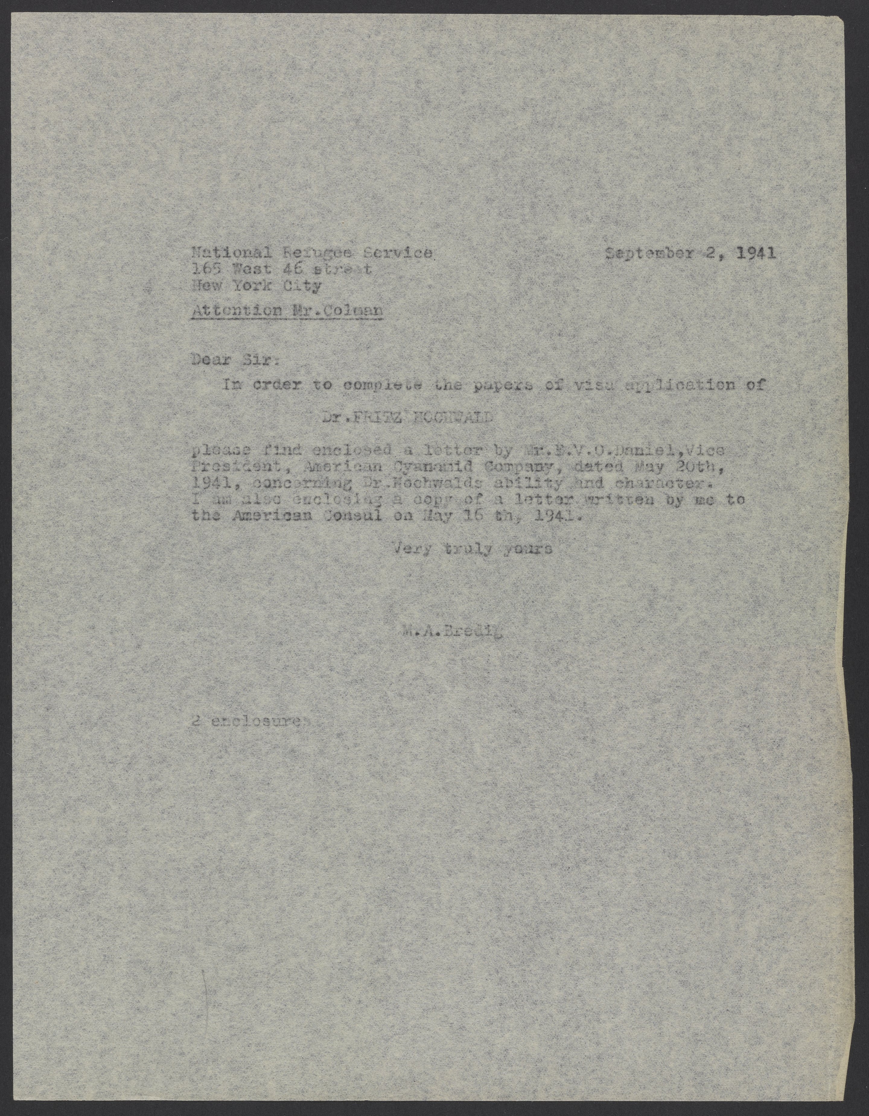 Small JPG1200 x 1543px — 156 KBLarge JPG2880 x 3703px — 1.2 MBFull-sized JPG5352 x 6882px — 4.7 MBOriginal fileTIFF — 5352 x 6882px — 105 MBMax Bredig (1902-1977) sends an affidavit from the American Cyanamid company for Fritz Hochwald (1897-1968) to the National Refugee Service.