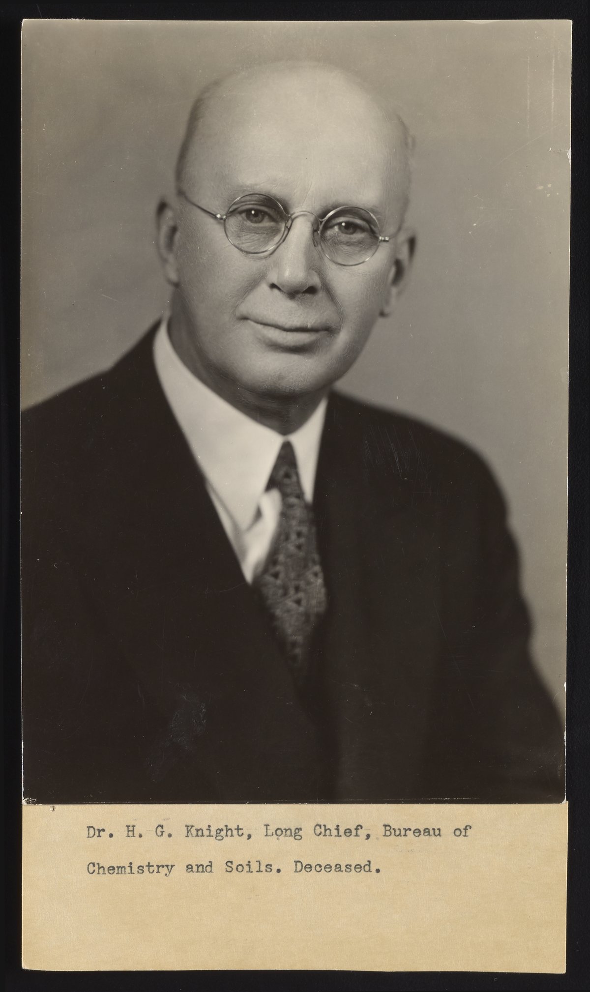Portrait of Dr. Henry G. Knight, Chief of the U.S. Department of Agriculture's Bureau of Chemistry & Soils.