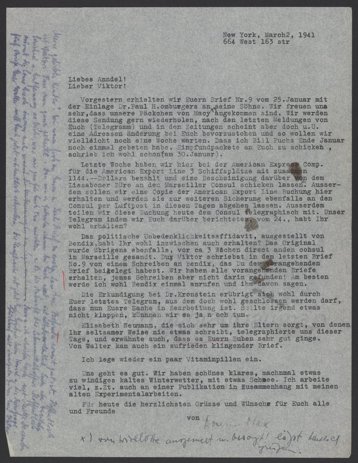 Letter from Max and Georg Bredig to Marianne and Viktor Homburger, March 2, 1941
