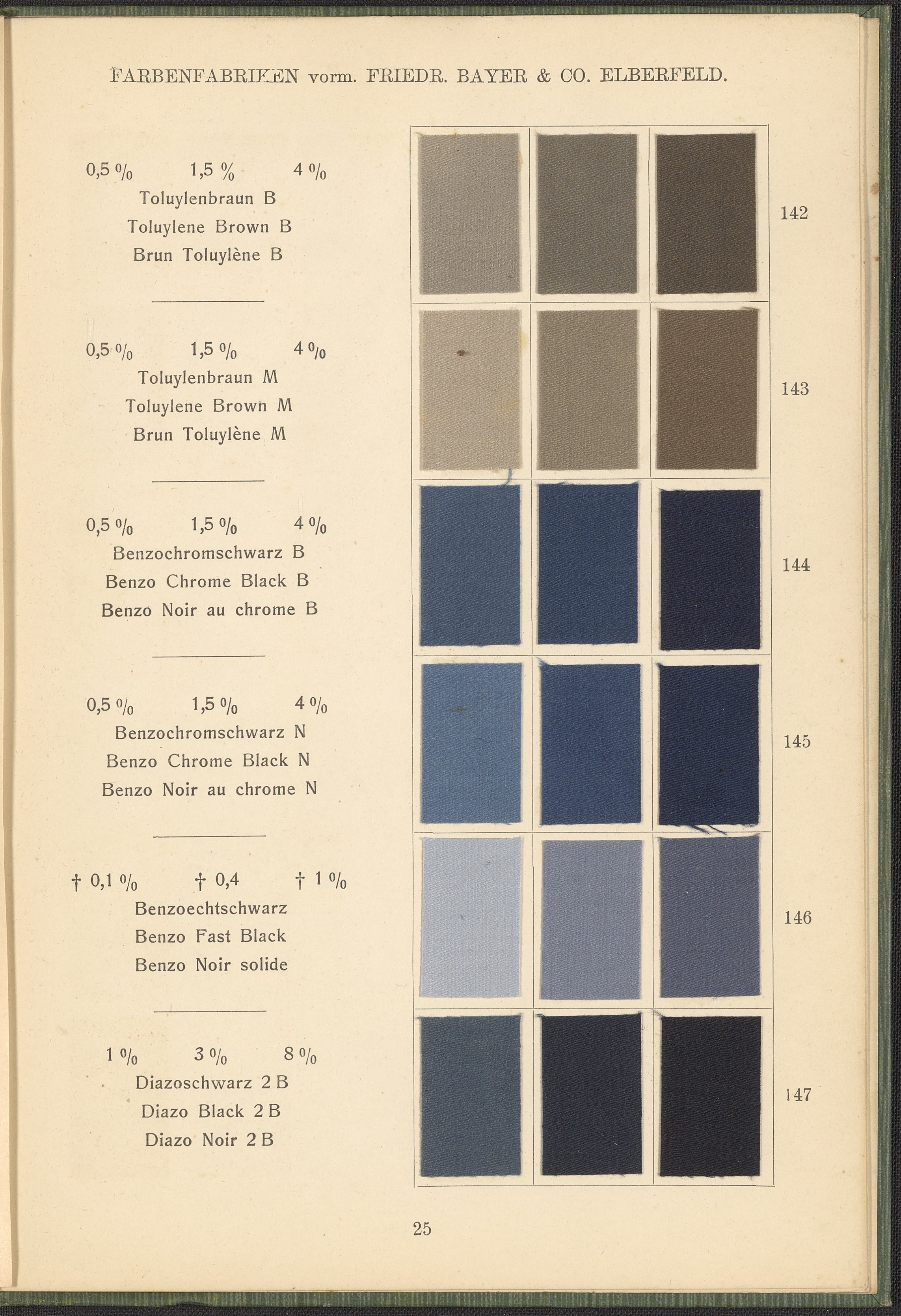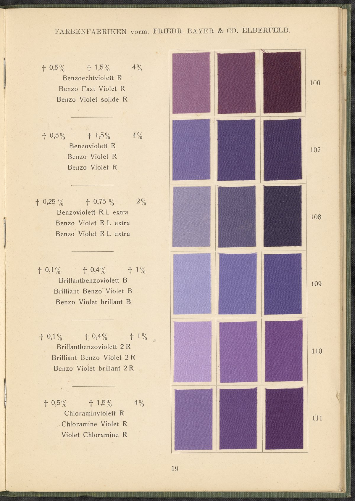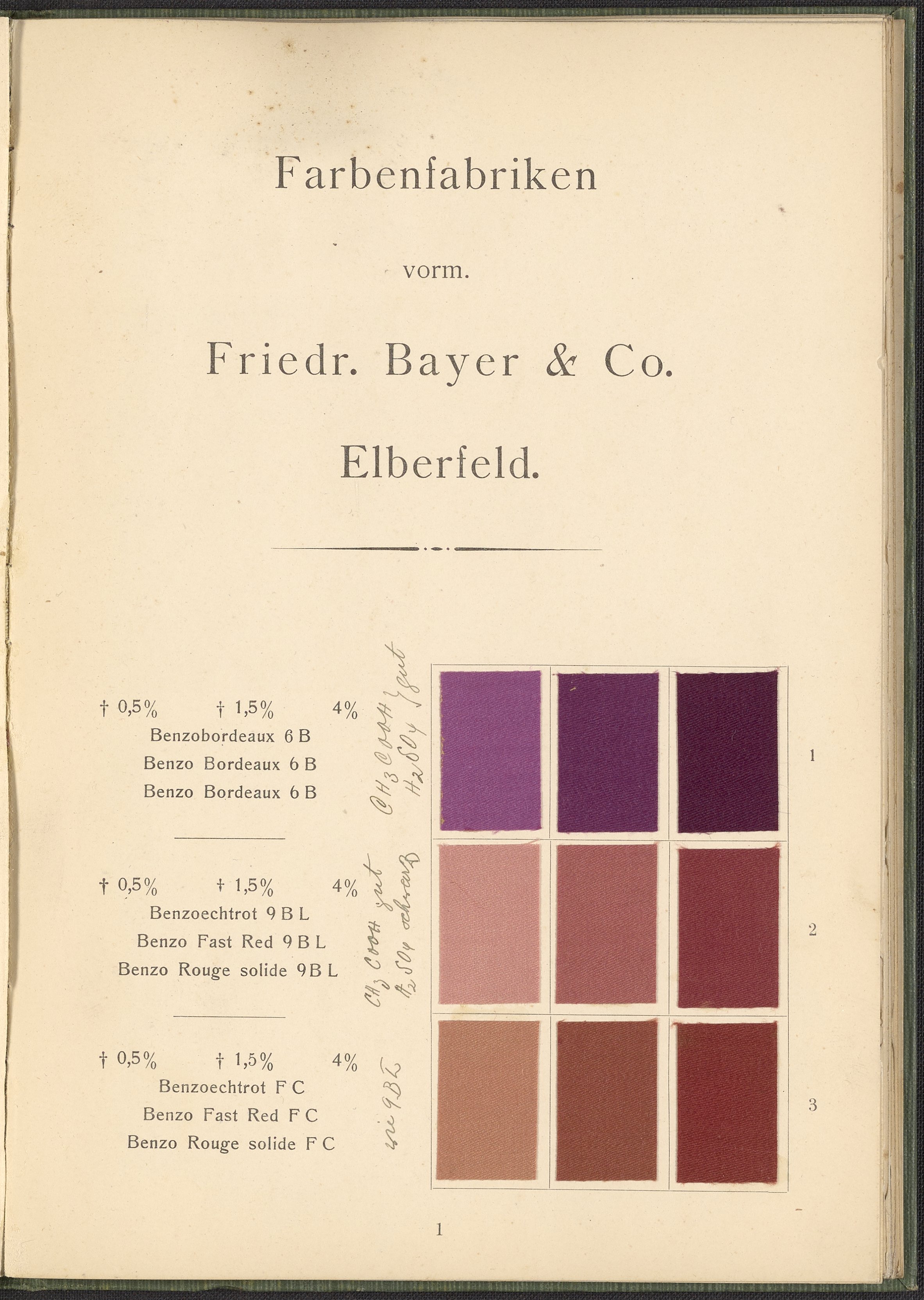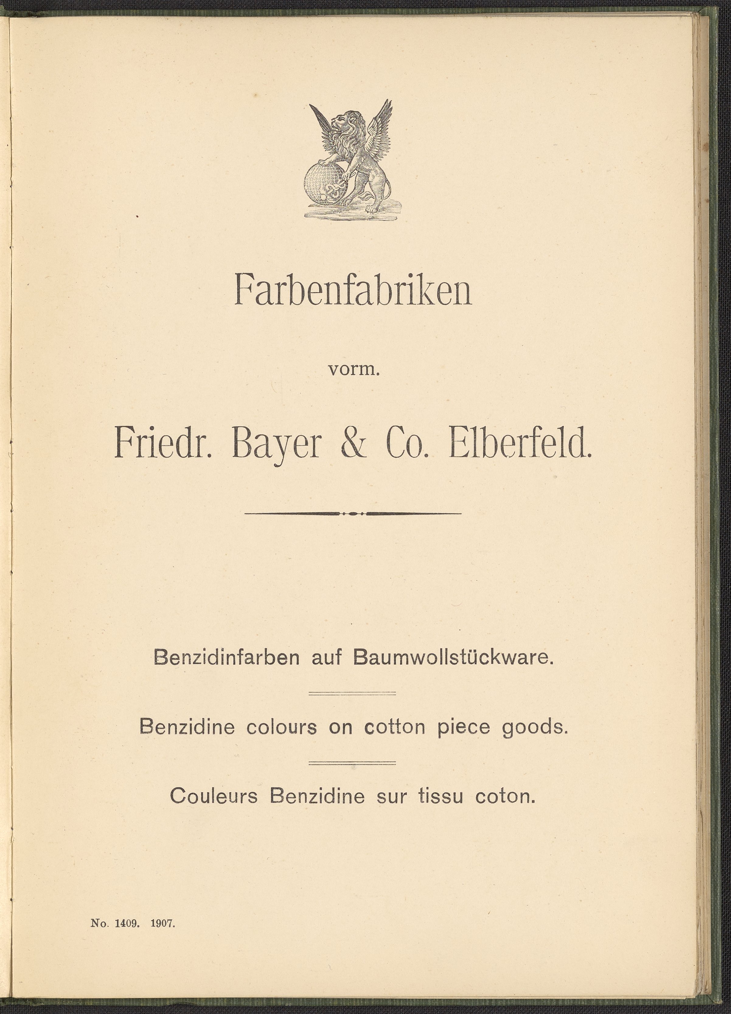 Farbenfabriken vorm. Friedrich Bayer & Co. Benzidinfarben Auf Baumwollstückware, 1901. https://digital.sciencehistory.org/works/1zshph4.