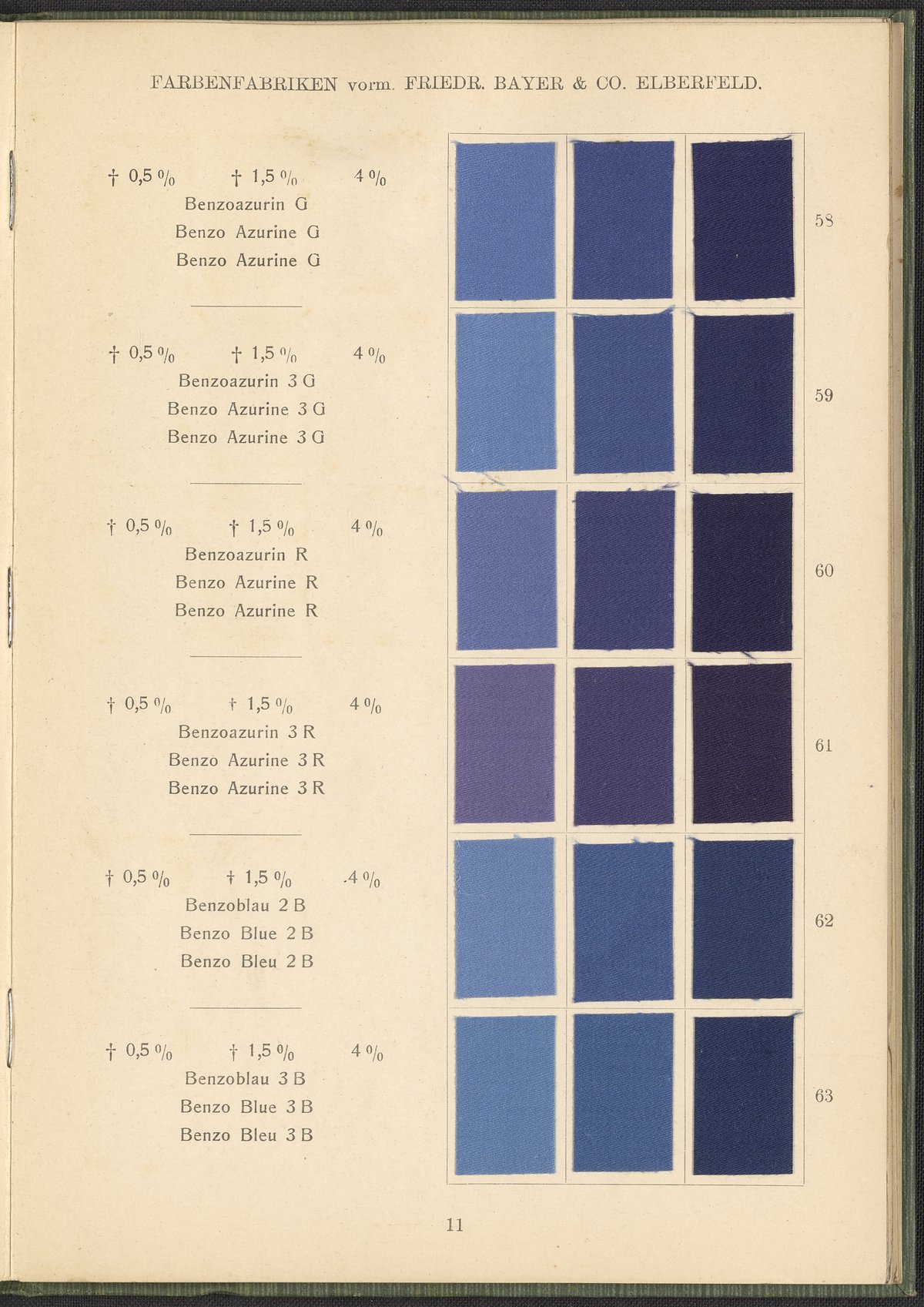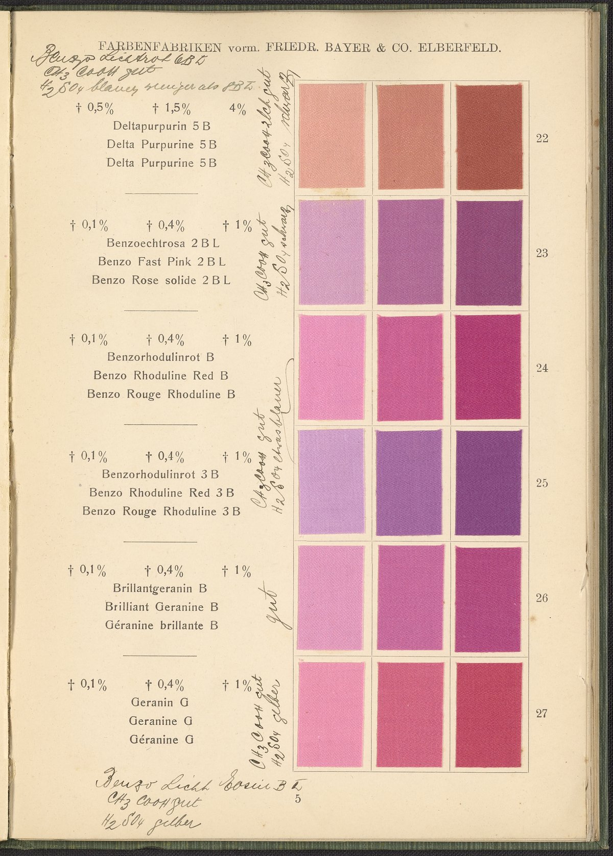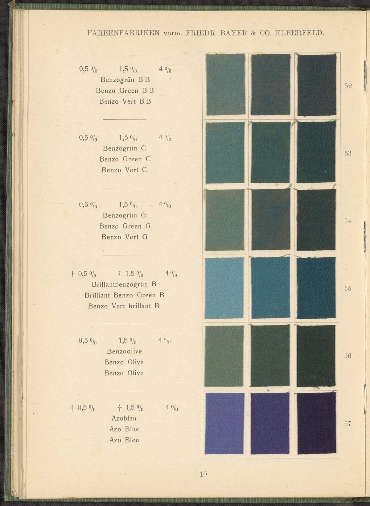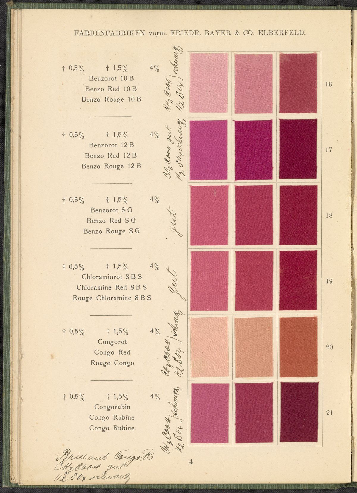 Farbenfabriken vorm. Friedrich Bayer & Co. Benzidinfarben Auf Baumwollstückware, 1901. https://digital.sciencehistory.org/works/1zshph4.