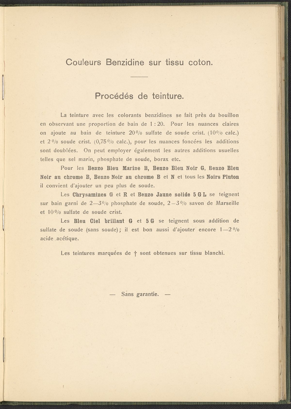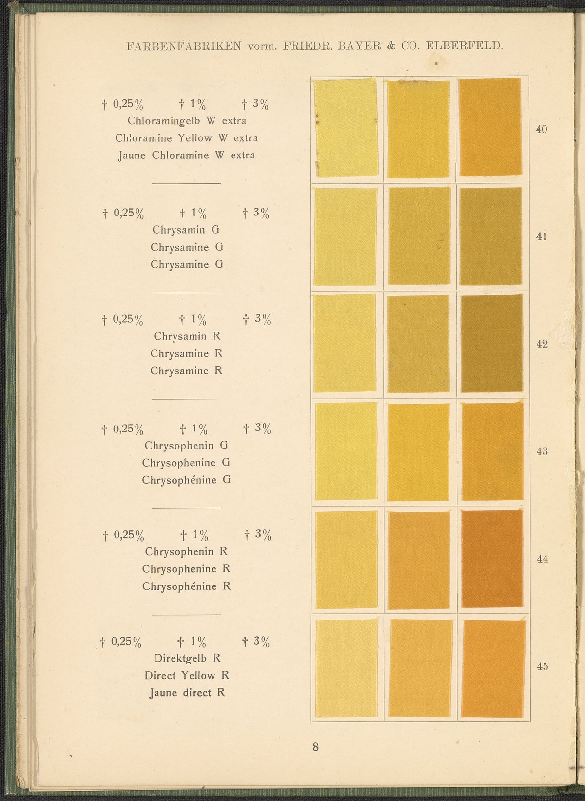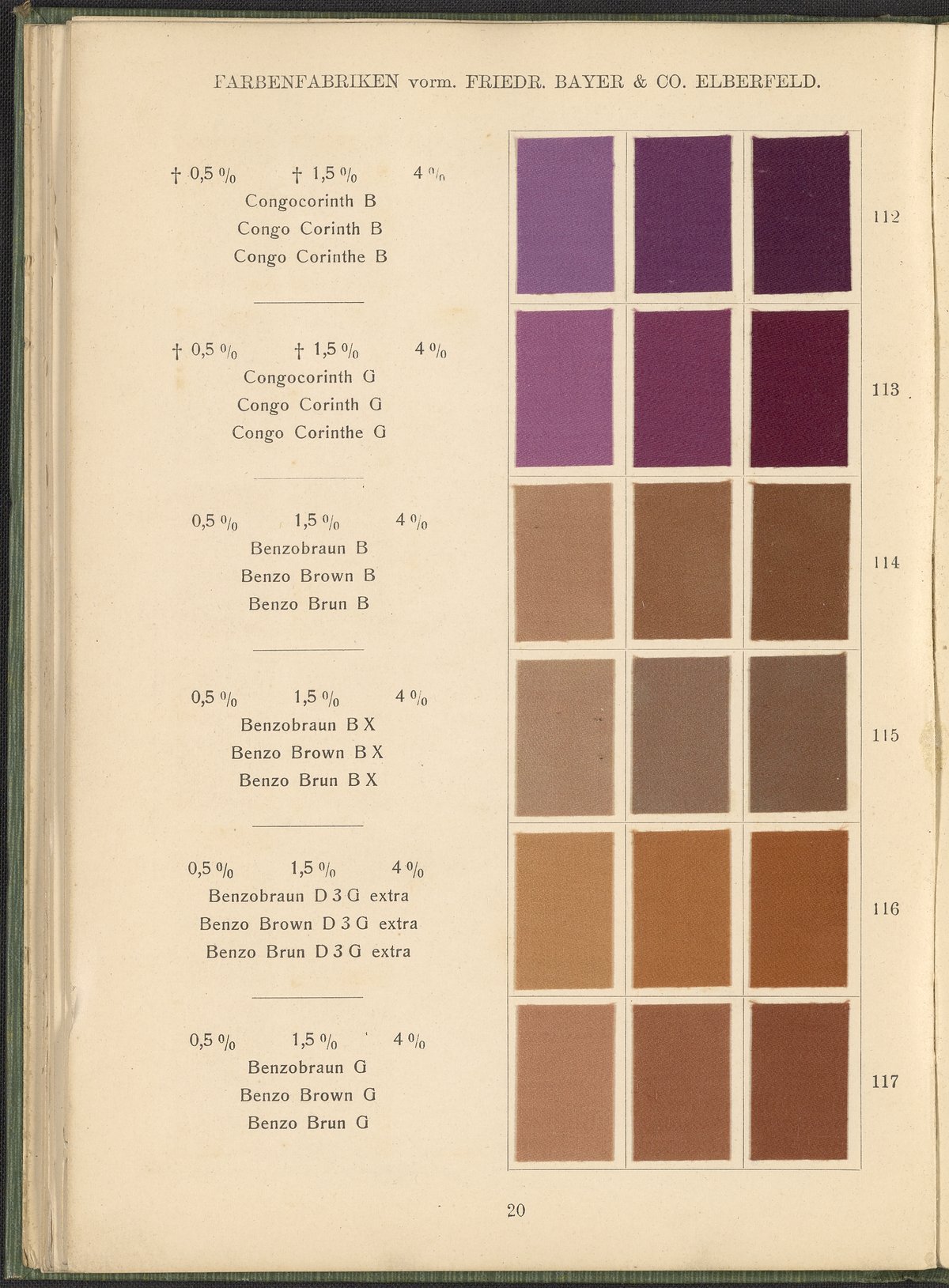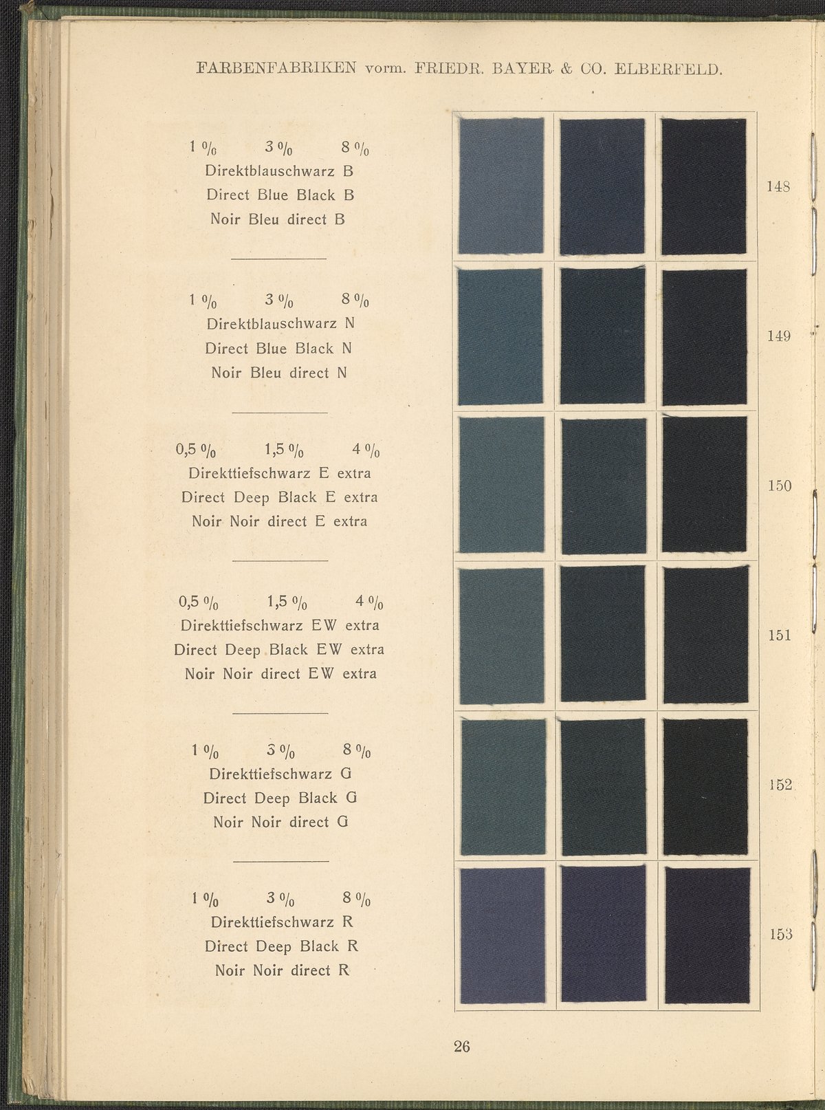 Farbenfabriken vorm. Friedrich Bayer & Co. Benzidinfarben Auf Baumwollstückware, 1901. https://digital.sciencehistory.org/works/1zshph4.