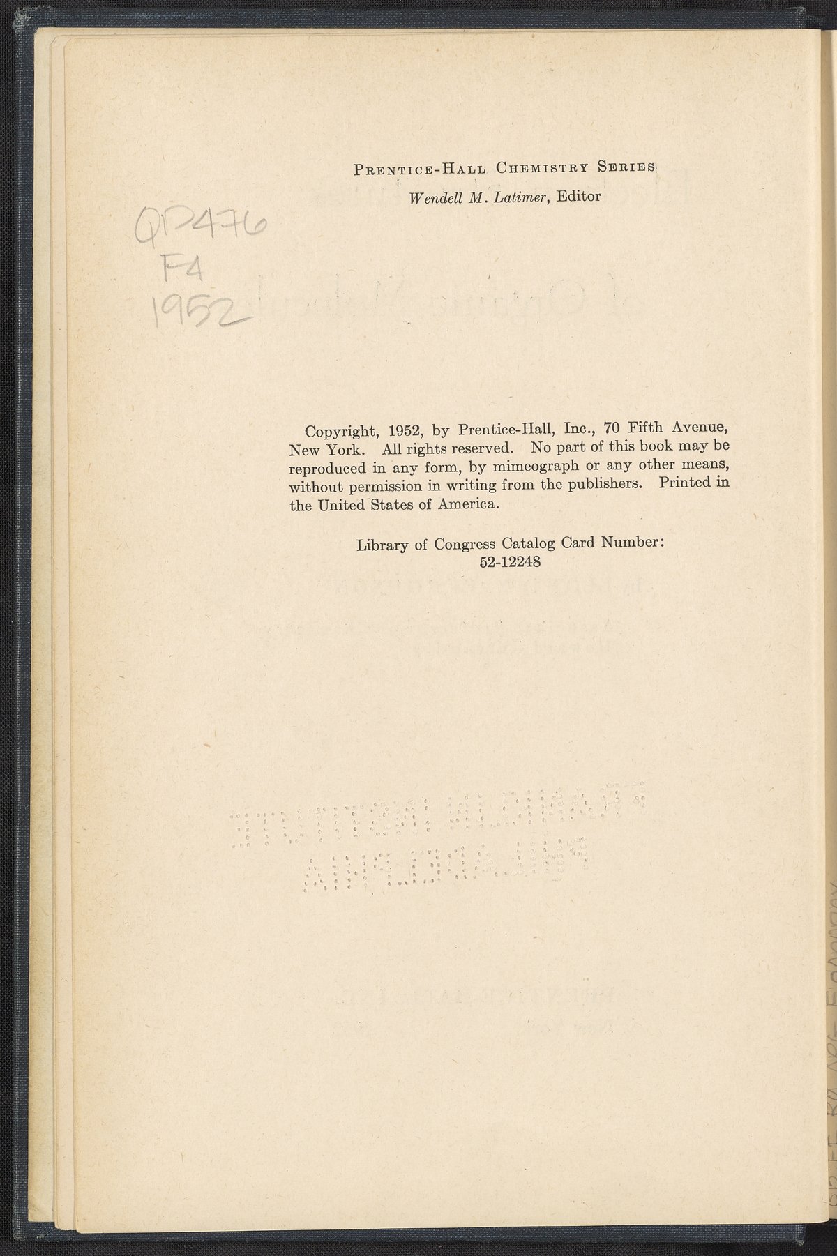 Digitized content includes the work's frontmatter. This work is protected by copyright law; to view the full text, contact or visit the Othmer Library of Chemical History.