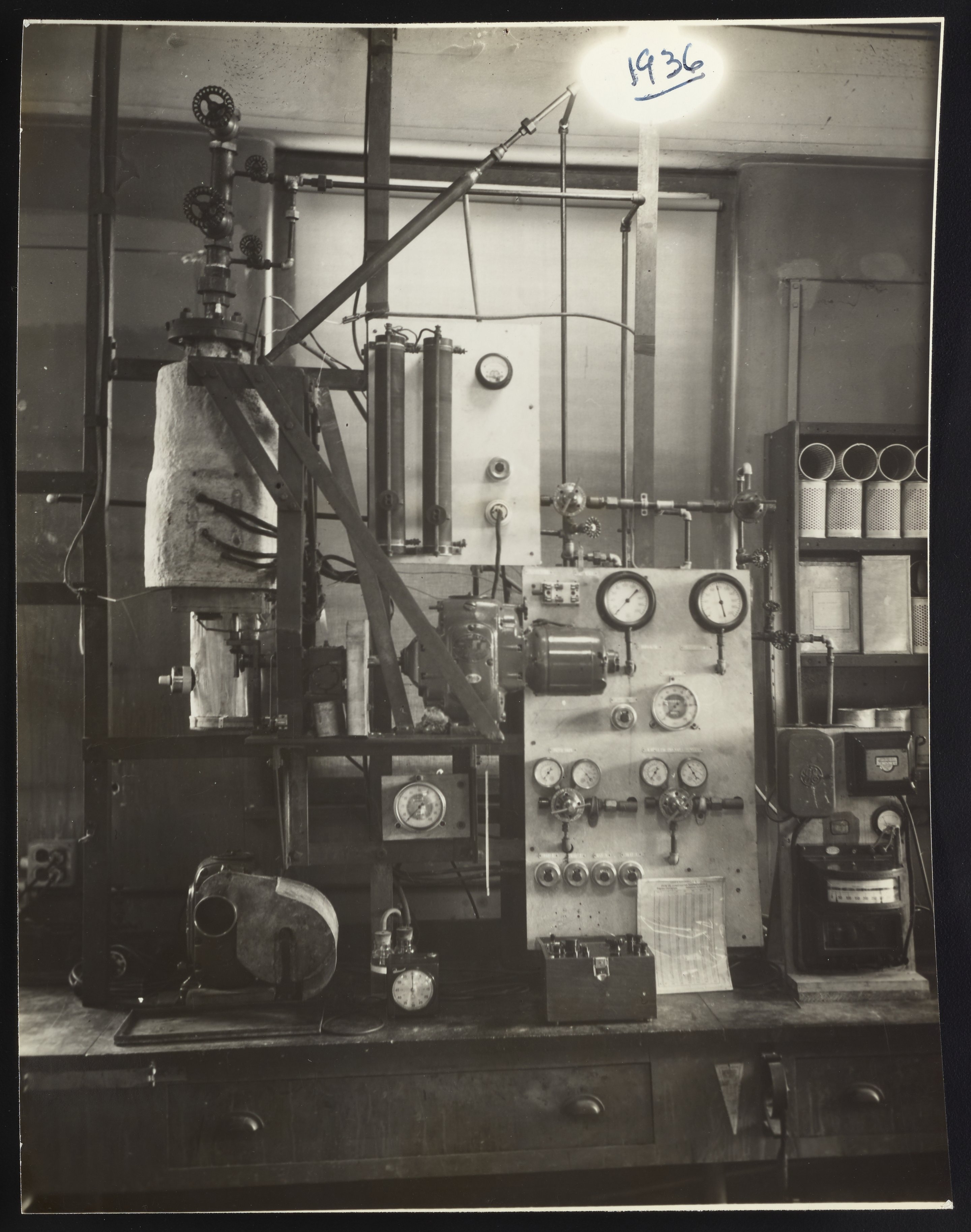 “Second Continuous Spinning Machine,” October 2, 1936. Joseph X. Labovsky Collection of Nylon Photographs and Ephemera, Box 1. Science History Institute. Philadelphia. https://digital.sciencehistory.org/works/2514nk53w.