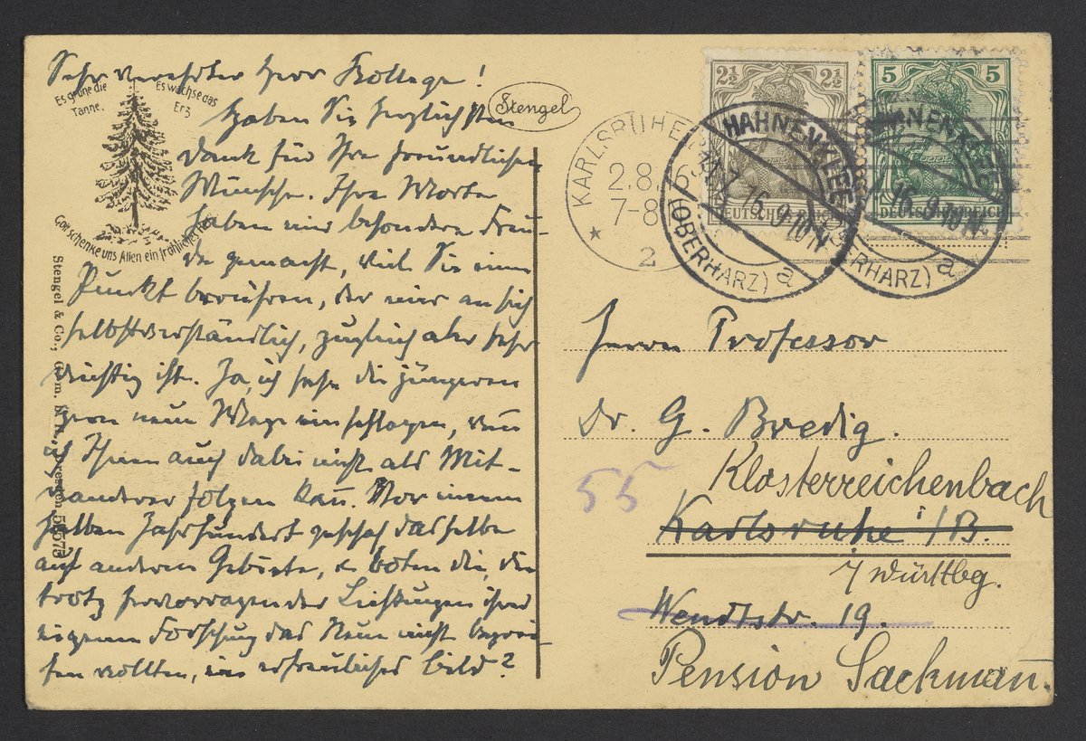 Postcard from Richard Emil Meyer to Georg Bredig, August 1916