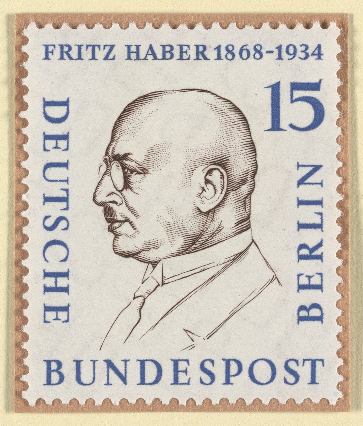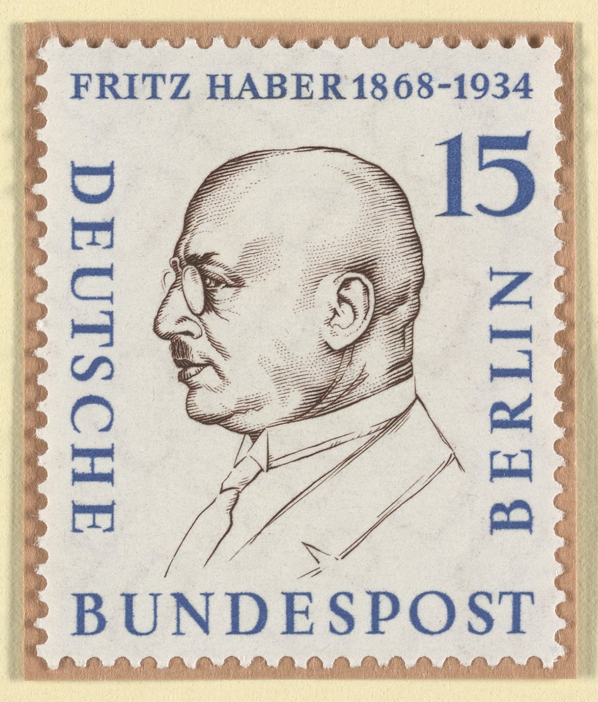 “German Postage Stamp Commemorating Fritz Haber.” Germany, n.d. Witco Stamp Collection, Box 3. Science History Institute. Philadelphia. https://digital.sciencehistory.org/works/2801pg37r.