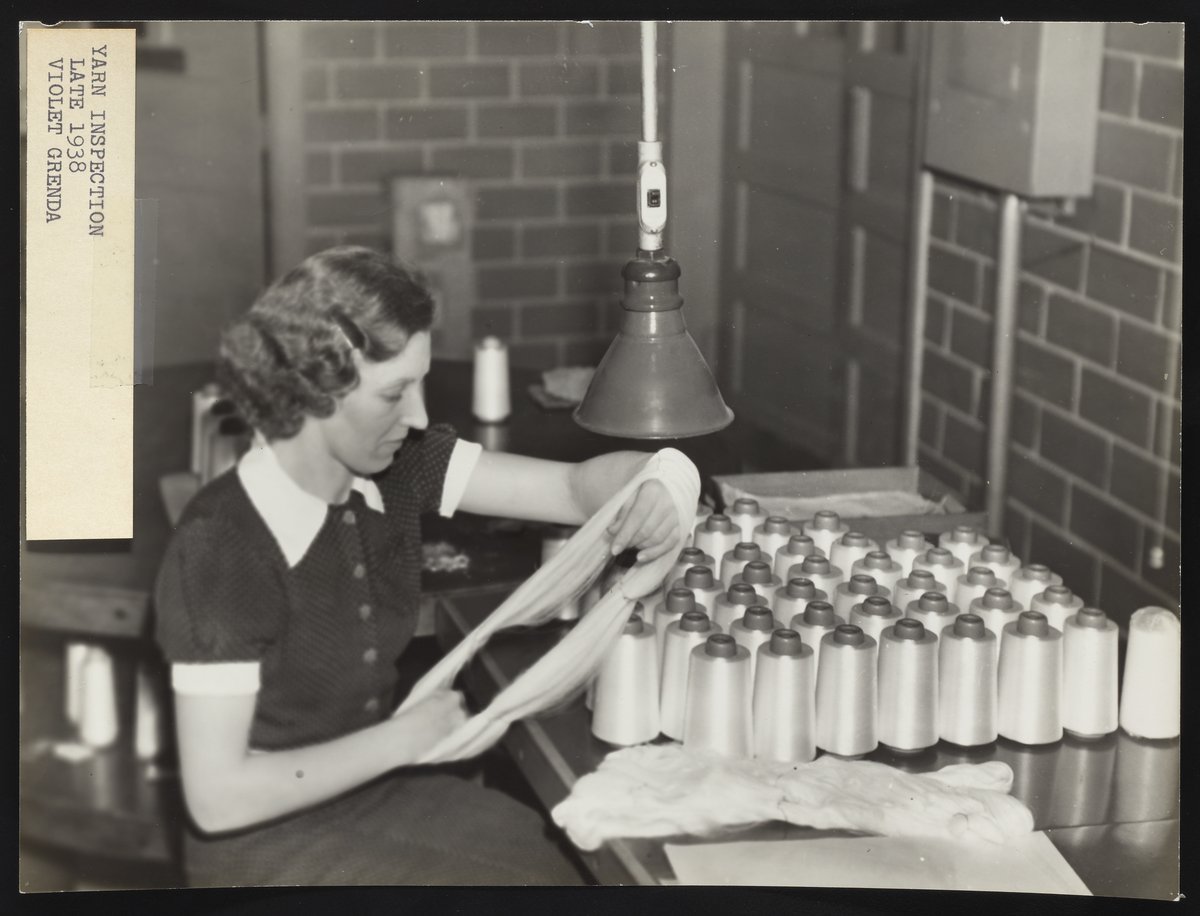 Violet Grenda inspecting nylon yarn at DuPont facility