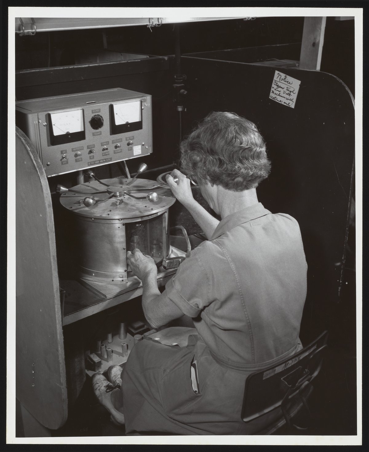 Hercules Incorporated. “Employee Operating Apparatus for Testing Electric Detonators,” 1962. Photographs from the Records & Ephemera of Hercules Incorporated, Box 2, Folder 38. Science History Institute. Philadelphia. https://digital.sciencehistory.org/works/2801pg798.