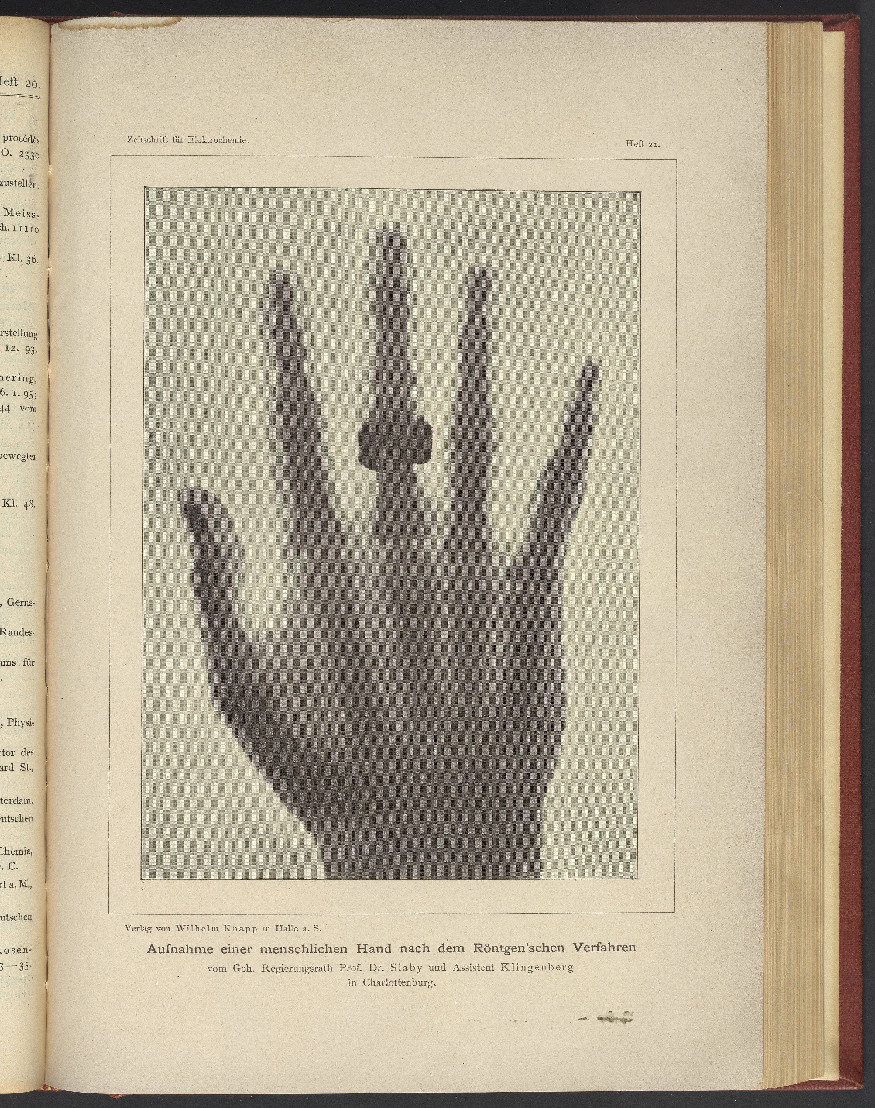 Aufnahme einer menschlichen Hand nach dem Röntgen'schen Verfahren
