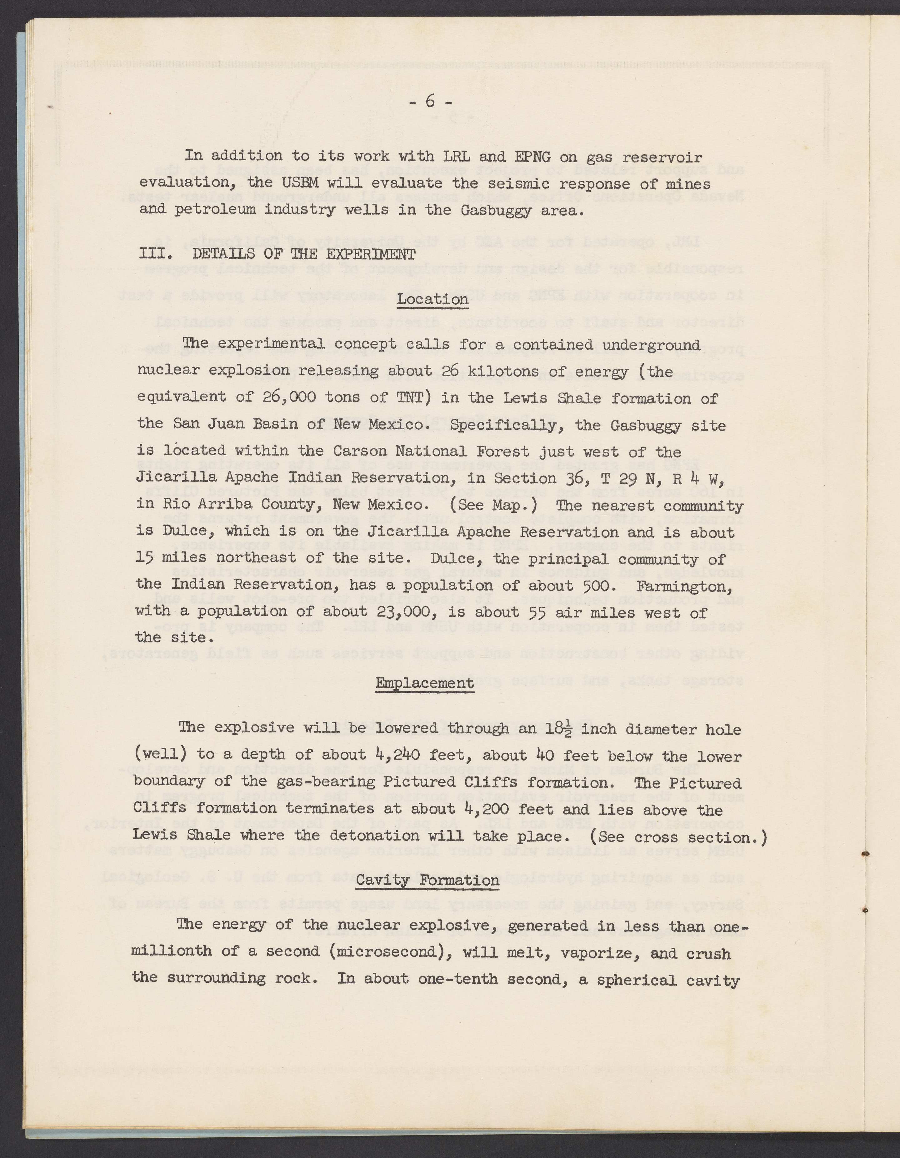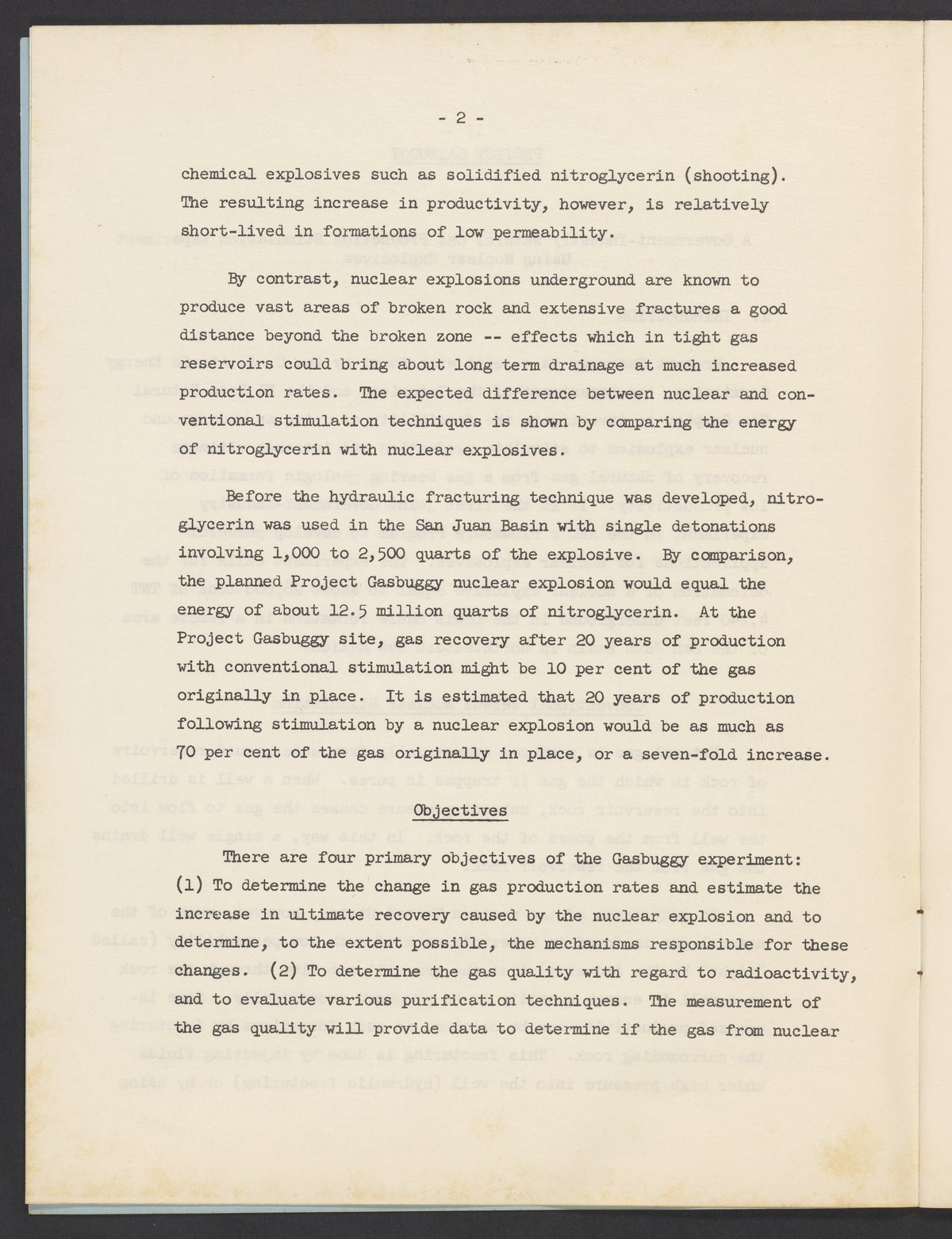 Project Gasbuggy (U.S.). Joint Office of Information, U.S. Atomic Energy Commission, El Paso Natural Gas Company, El Paso Natural Gas Company, and United States. Department of the Interior. “Project Gasbuggy: A Government-Industry Natural Gas Production Stimulation Experiment Using Nuclear Explosives,” September 15, 1967. Papers of Spofford Grady English, Box 1, Folder 40. Science History Institute. Philadelphia. https://digital.sciencehistory.org/works/2dabt1q.