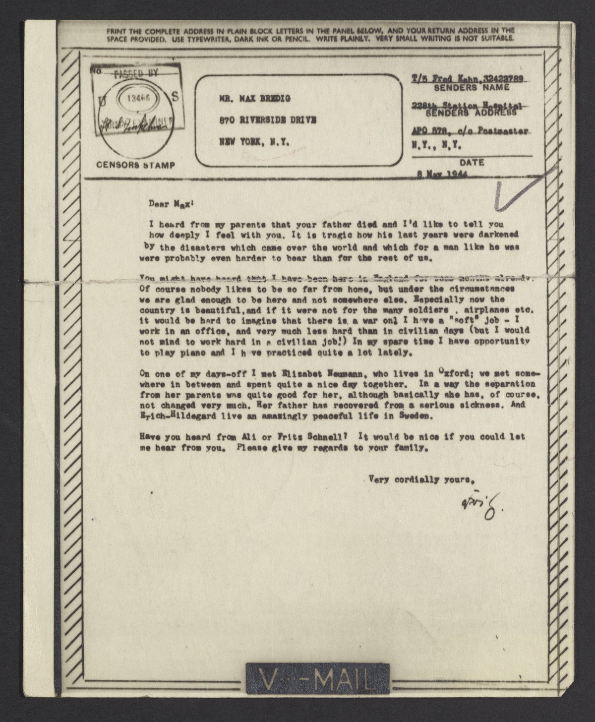 Hochwald, Fritz G. “Letter of Condolence from Fritz Hochwald to Max Bredig,” May 8, 1944. Papers of Georg and Max Bredig, Box 8, Folder 37. Science History Institute. Philadelphia. https://digital.sciencehistory.org/works/2ewkvo5.