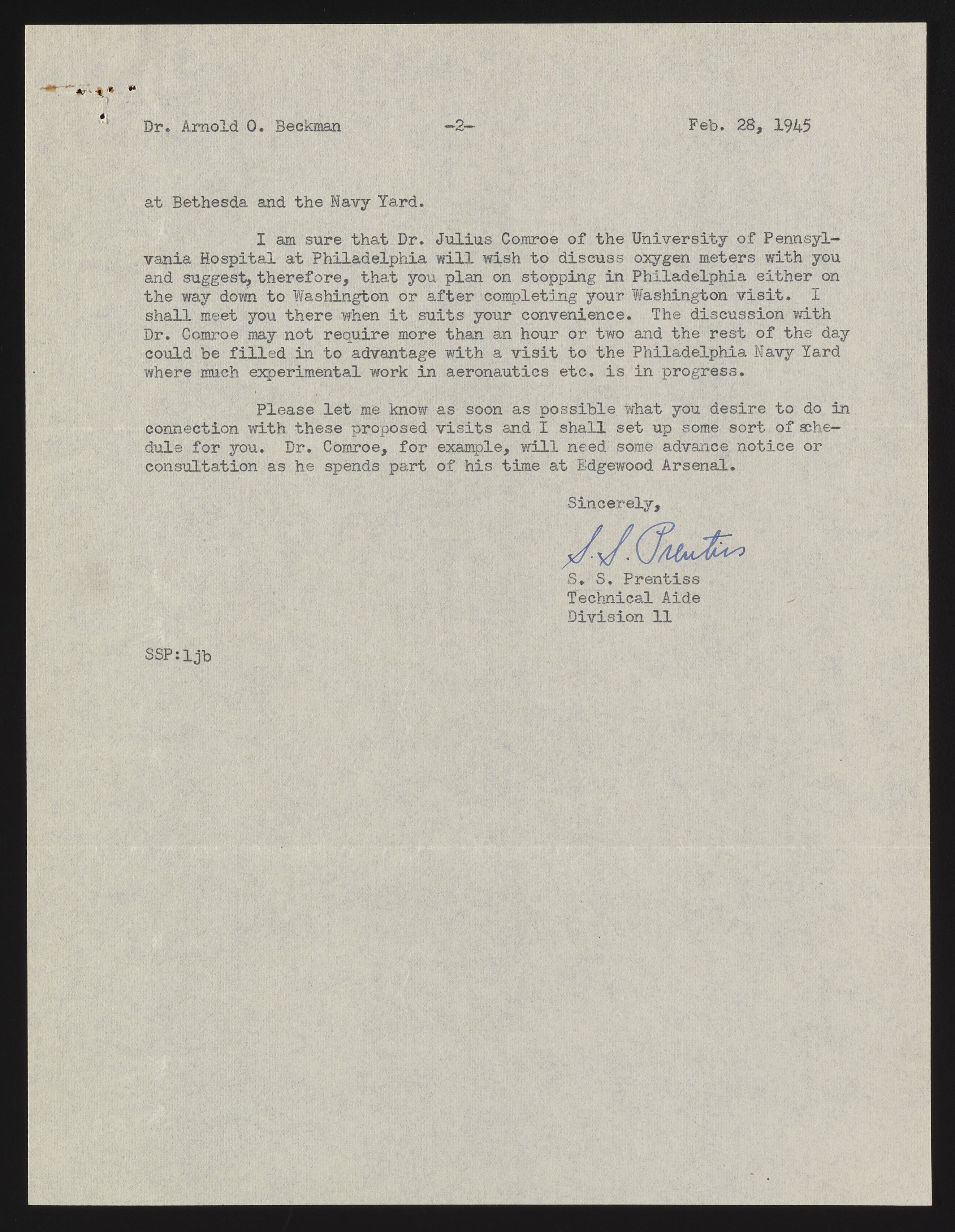 Letter from S. S. Prentiss to Arnold O. Beckman