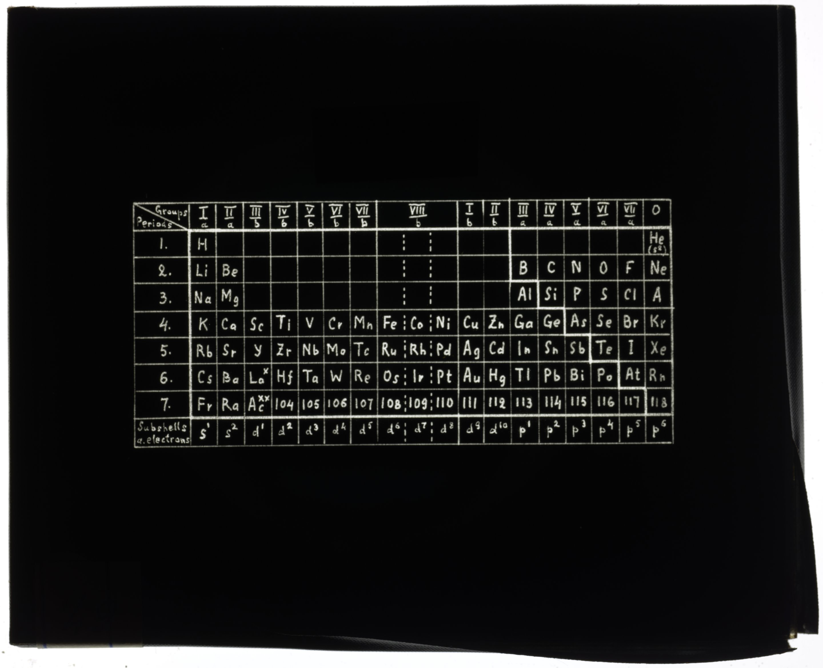 Series table designed by Dmitri Mendeleev (1869)1869 (Original design), Circa 1957 (Date attributed to slide)