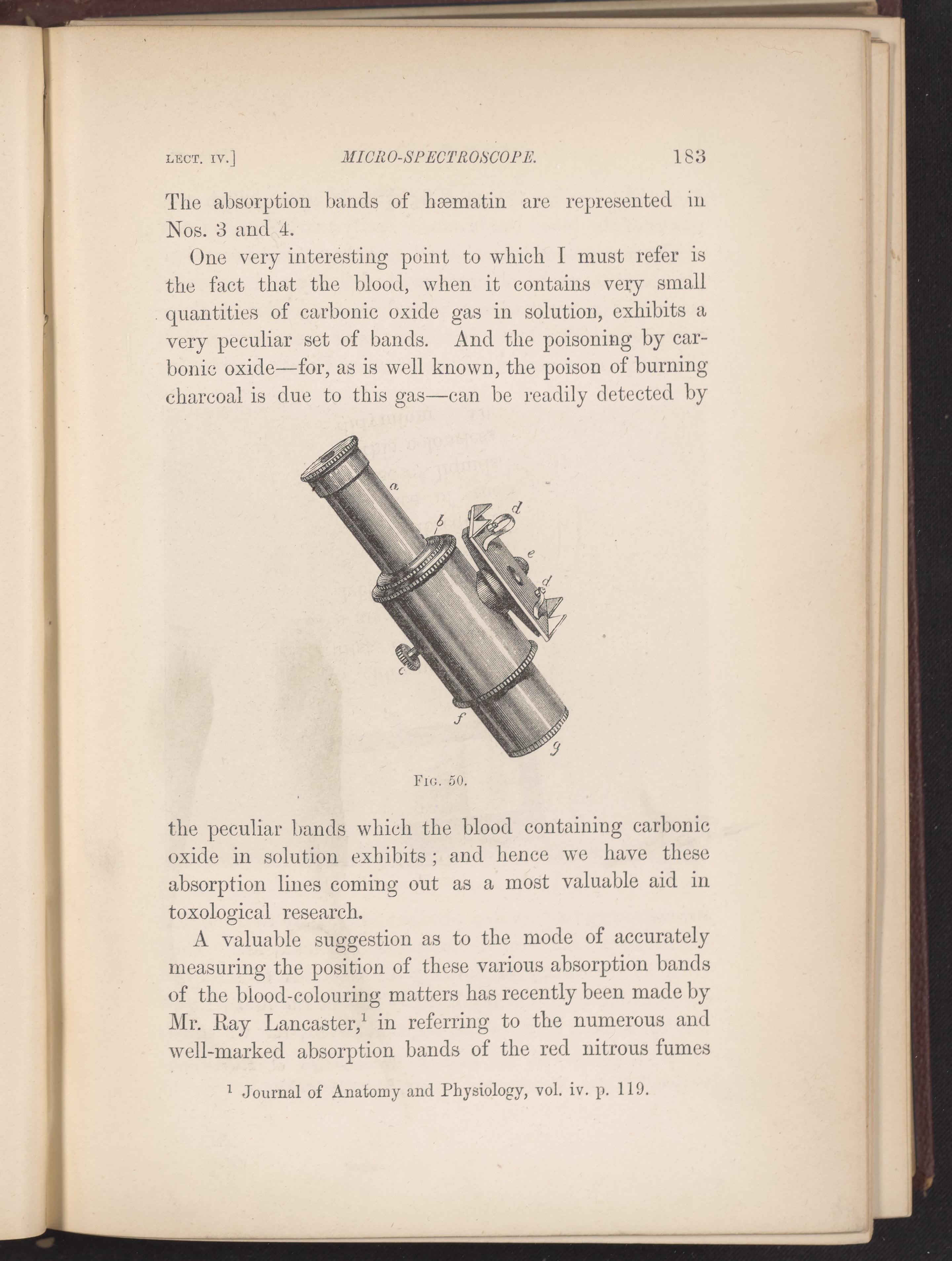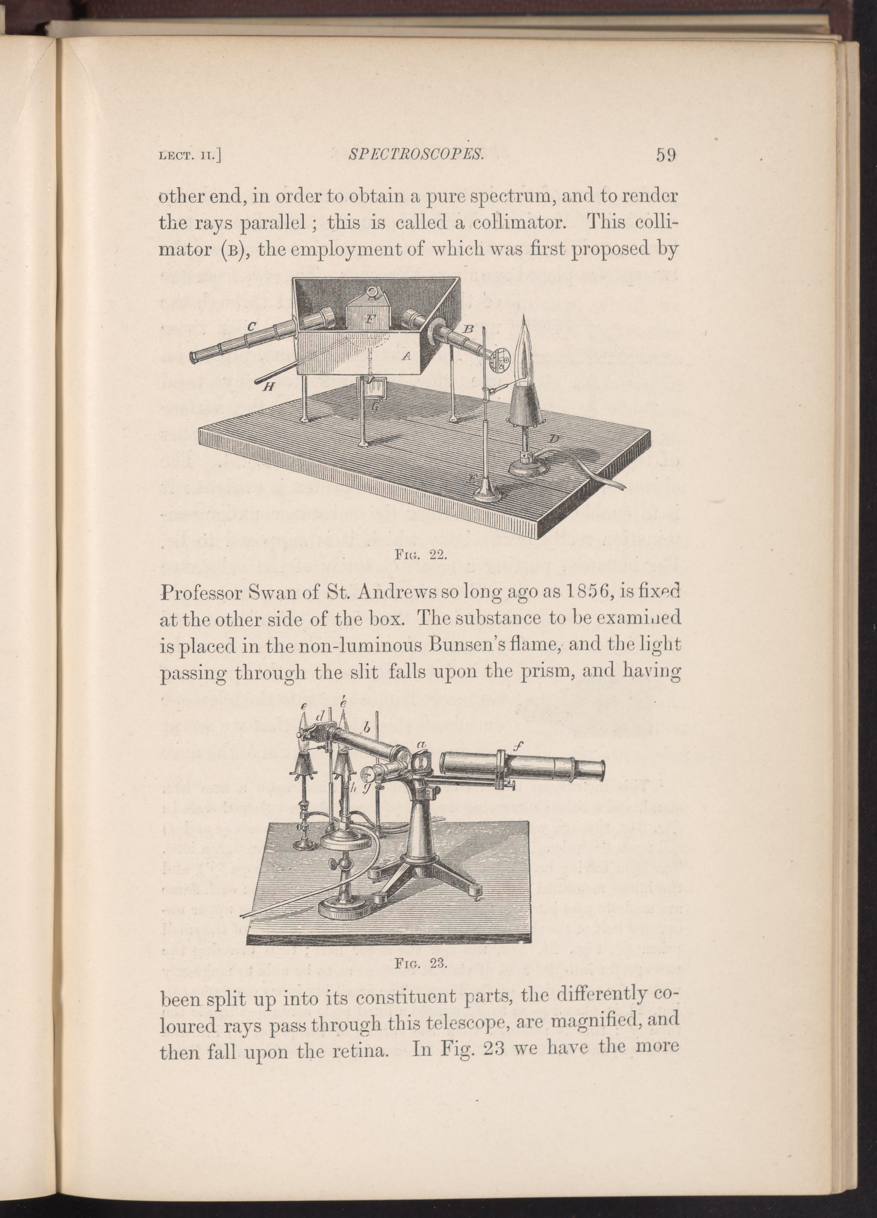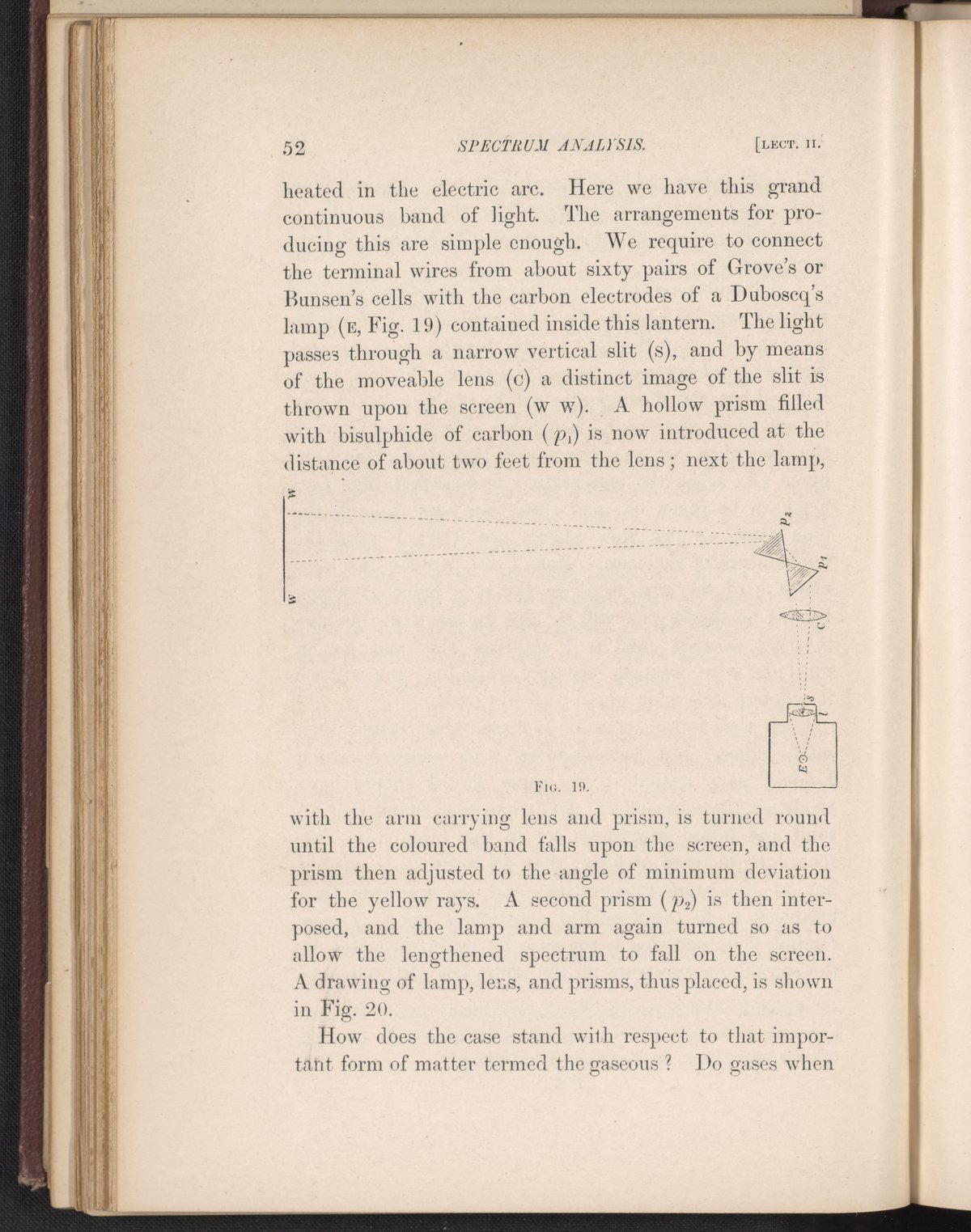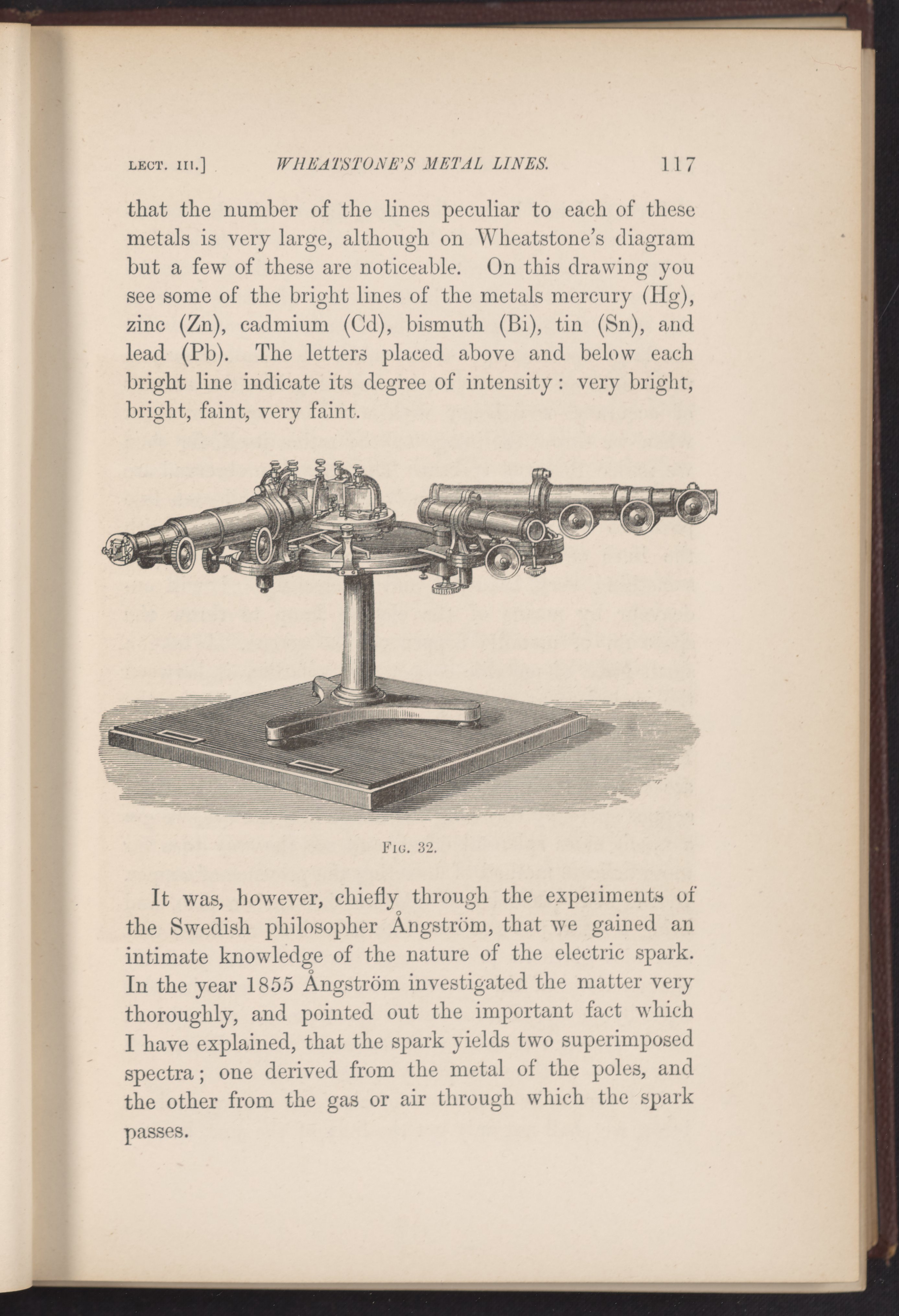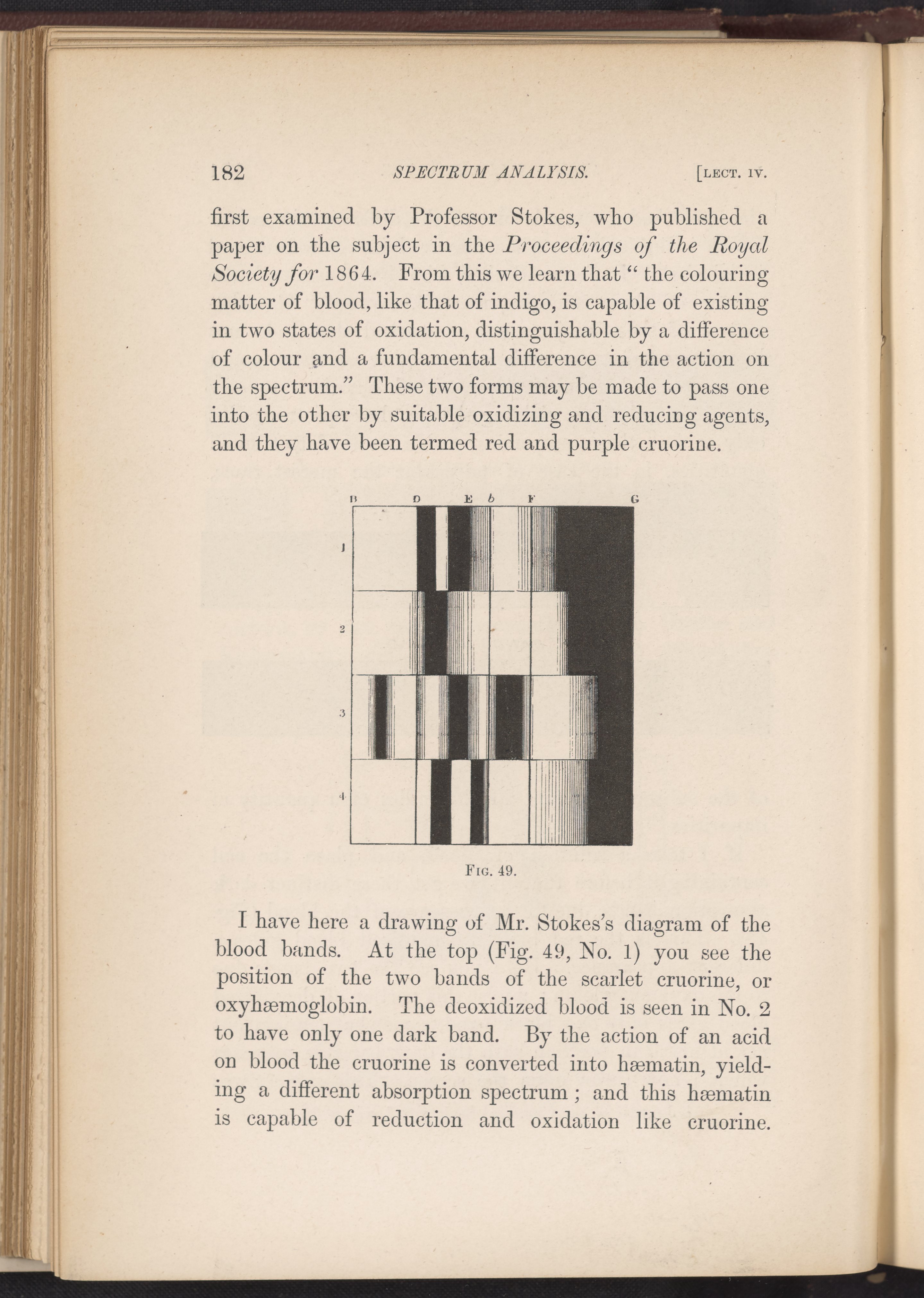 Roscoe, Henry E. (Henry Enfield). “Spectrum Analysis: Six Lectures, Delivered in 1868, Before the Society of Apothecaries of London.” London, England: Macmillan & Co., 1873. QC451 .R673 1873. Science History Institute. Philadelphia. https://digital.sciencehistory.org/works/2fskon7.