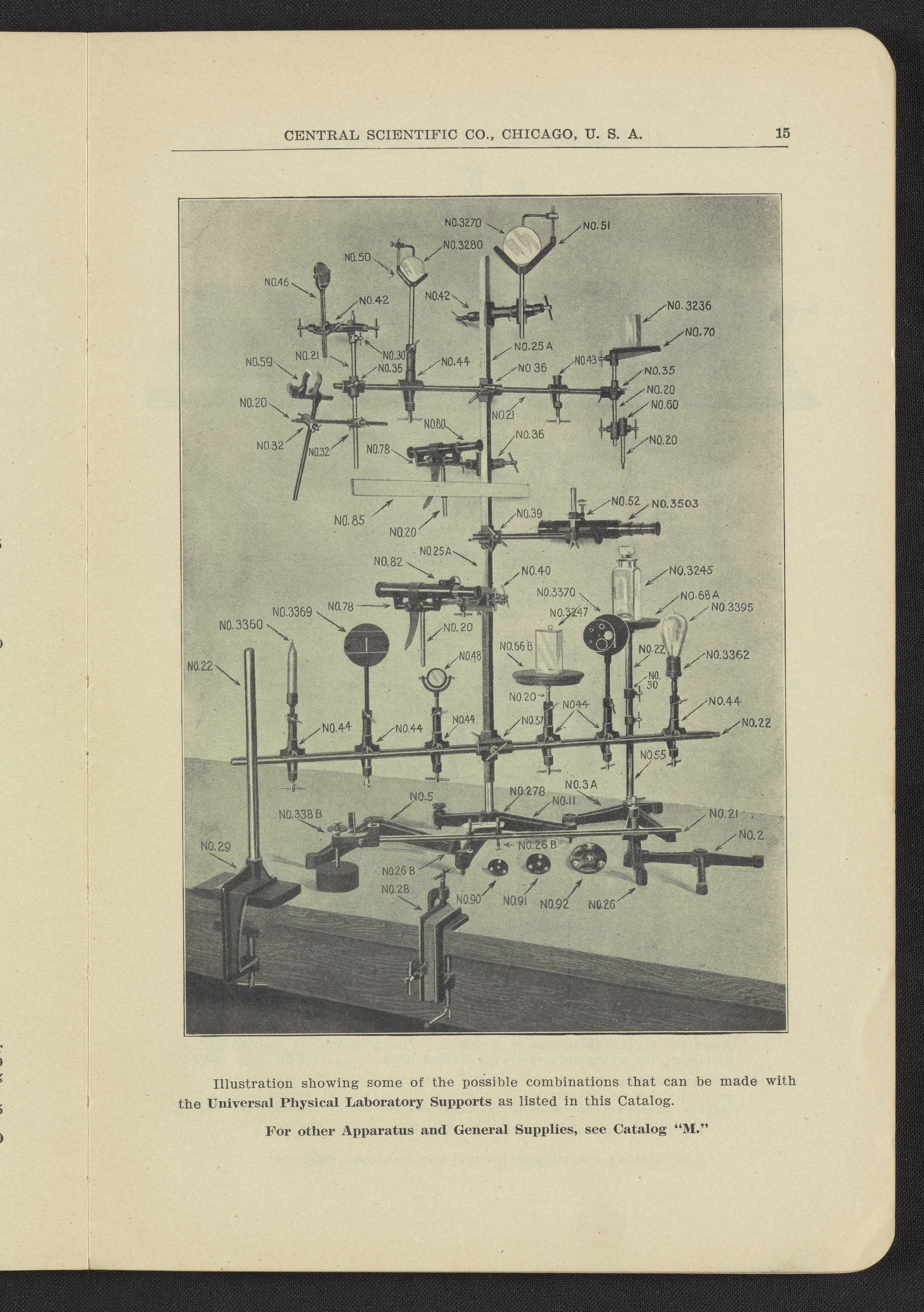 Central Scientific Company. “Universal Physical Laboratory Supports.” Physical Apparatus for Universities and Colleges Manufactured and Imported by Central Scientific Co. Chicago, Illinois: Central Scientific Company, 1912. Q185.7 .C46 1912. Science History Institute. Philadelphia. https://digital.sciencehistory.org/works/2hdltba.