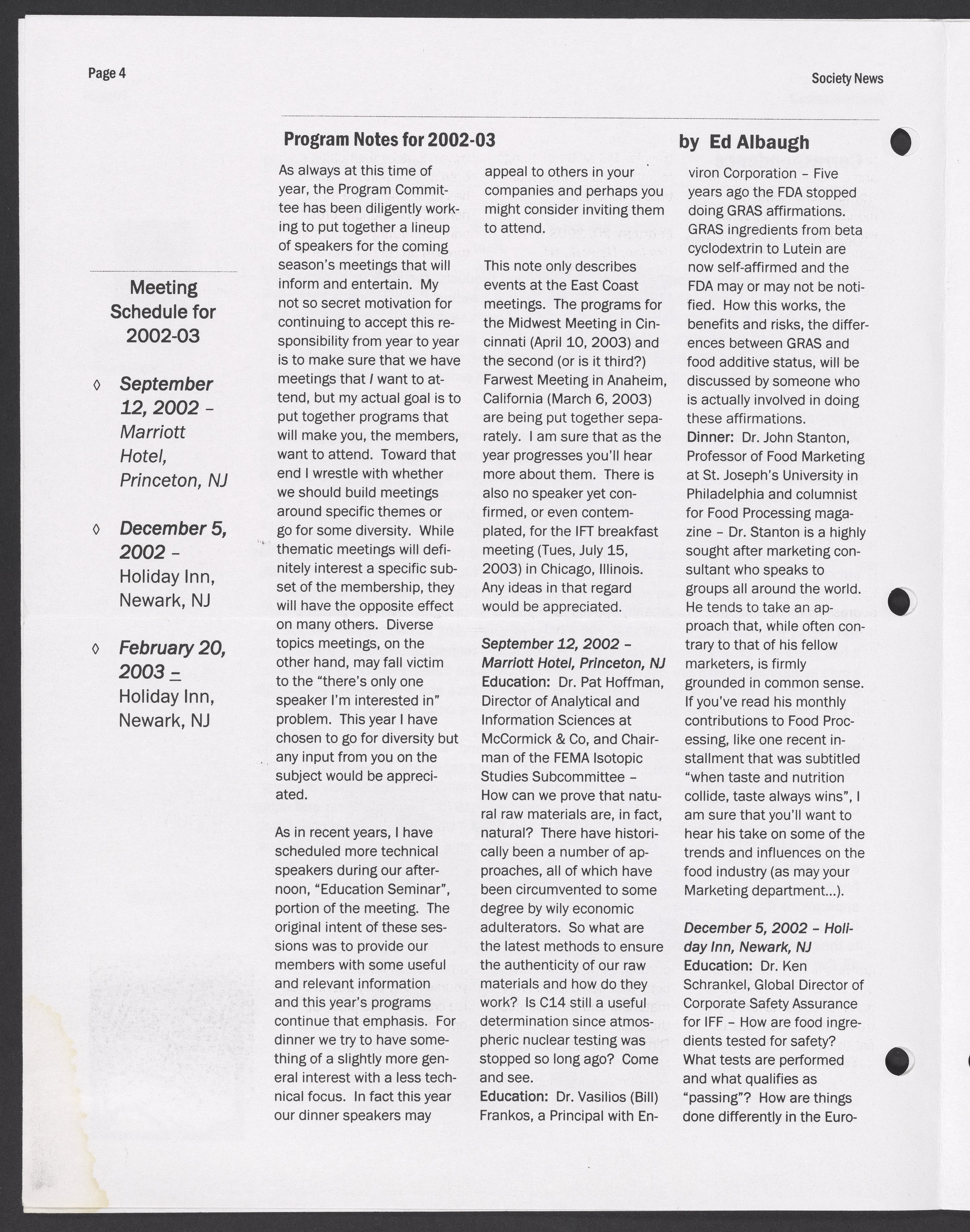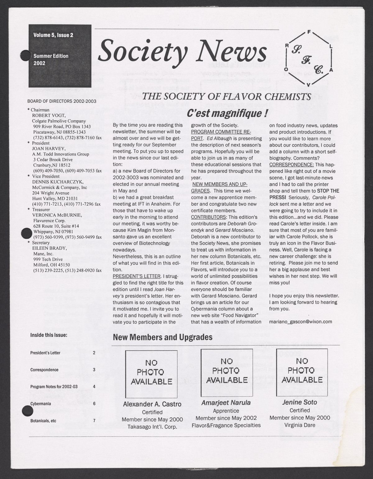 Society News, Volume 5, Issue 2