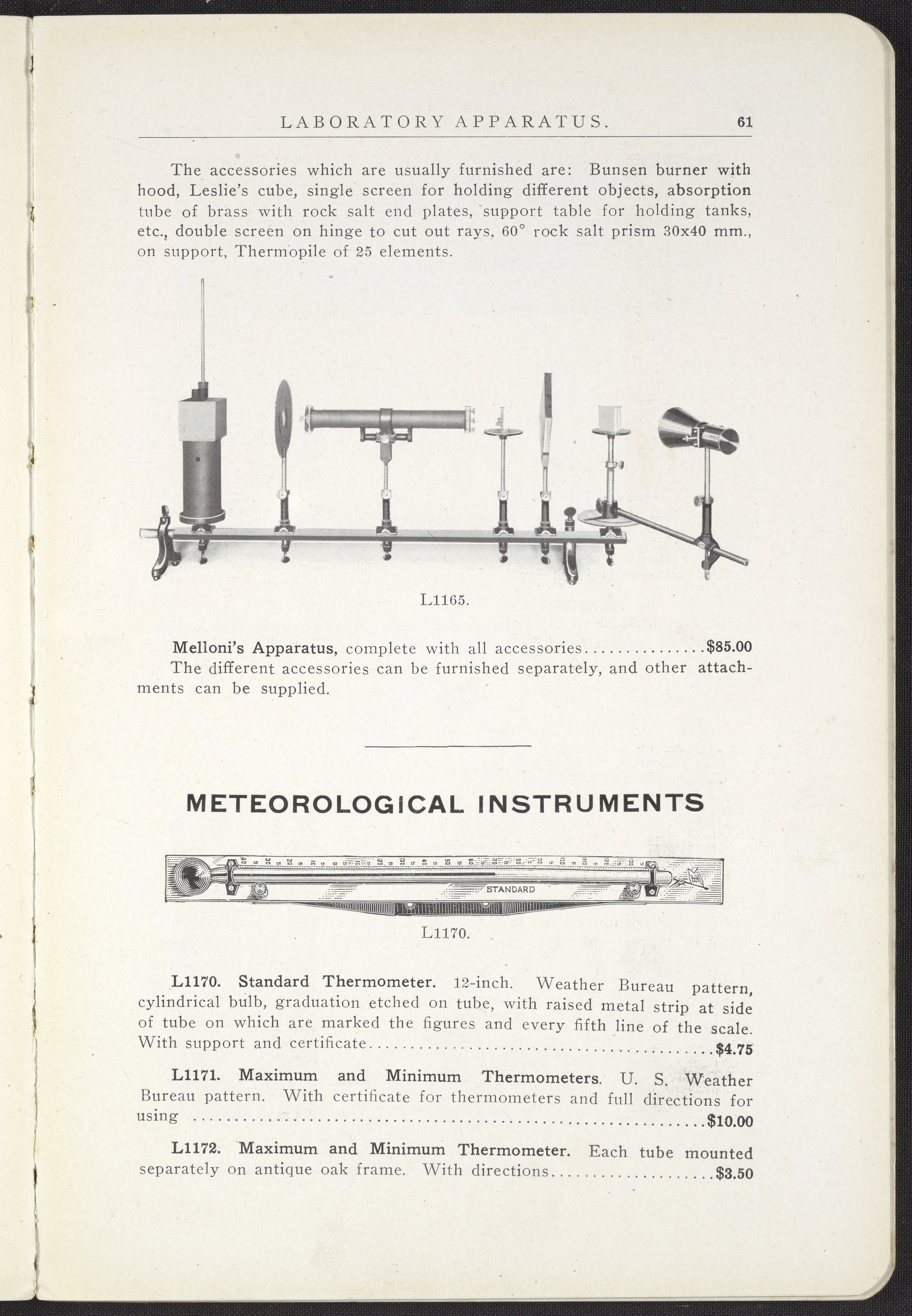 Wm. Gaertner & Company. “Melloni's Apparatus.” Instruments of Precision Laboratory Apparatus, M-L Catalog. Chicago, Illinois, 1911. https://digital.sciencehistory.org/works/2j62s486f.