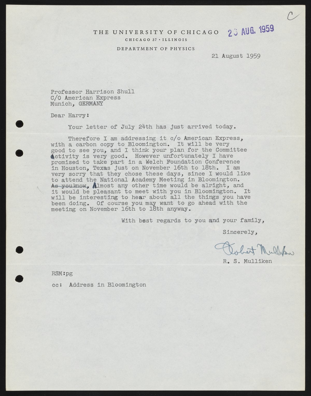 Mulliken, Robert Sanderson. “Letter from Robert S. Mulliken to Harrison Shull, 1959,” August 21, 1959. Robert S. Mulliken & Harrison Shull Correspondence, Box 1. Science History Institute. Philadelphia. https://digital.sciencehistory.org/works/2j62s4919.