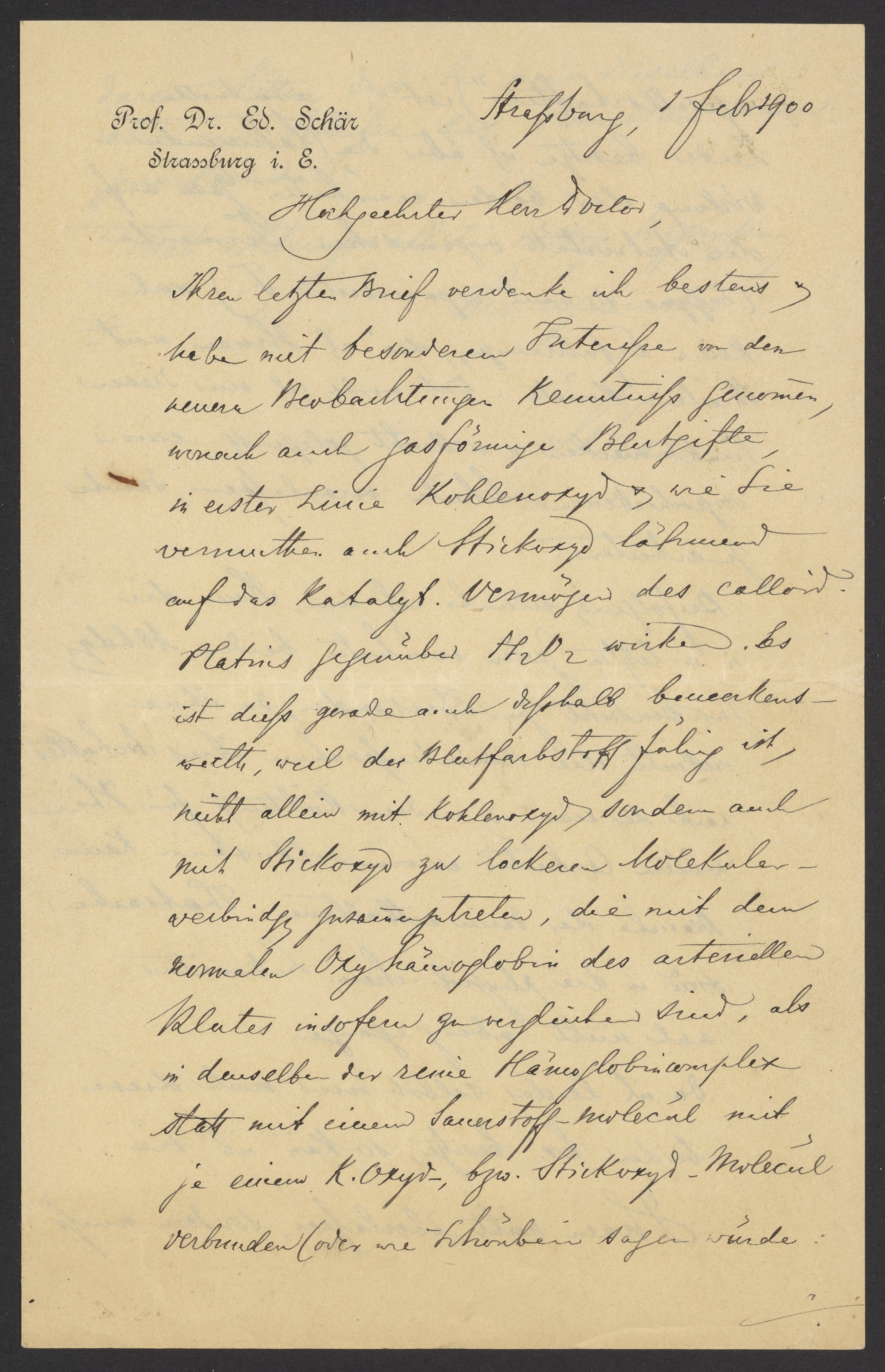 Letter from Eduard Schär to Georg Bredig, February 1900