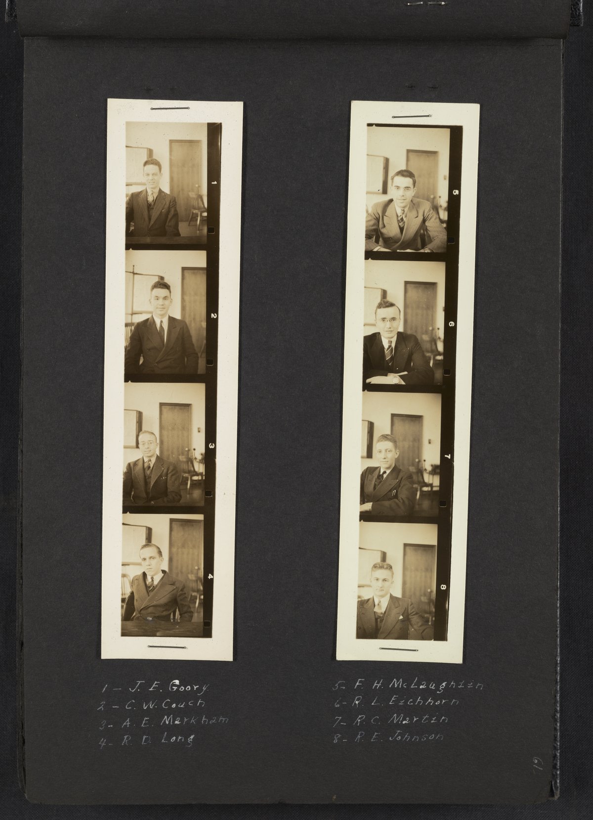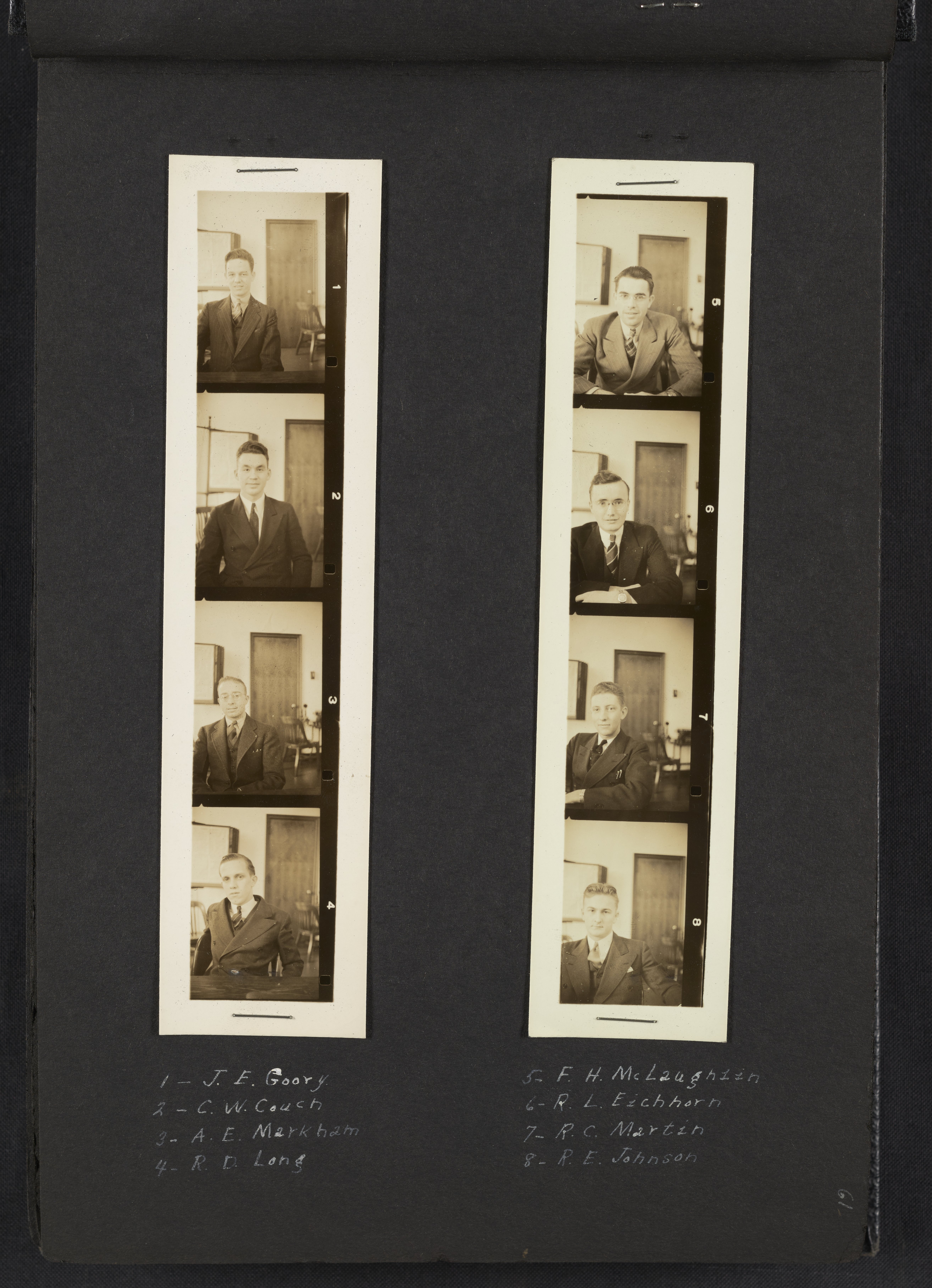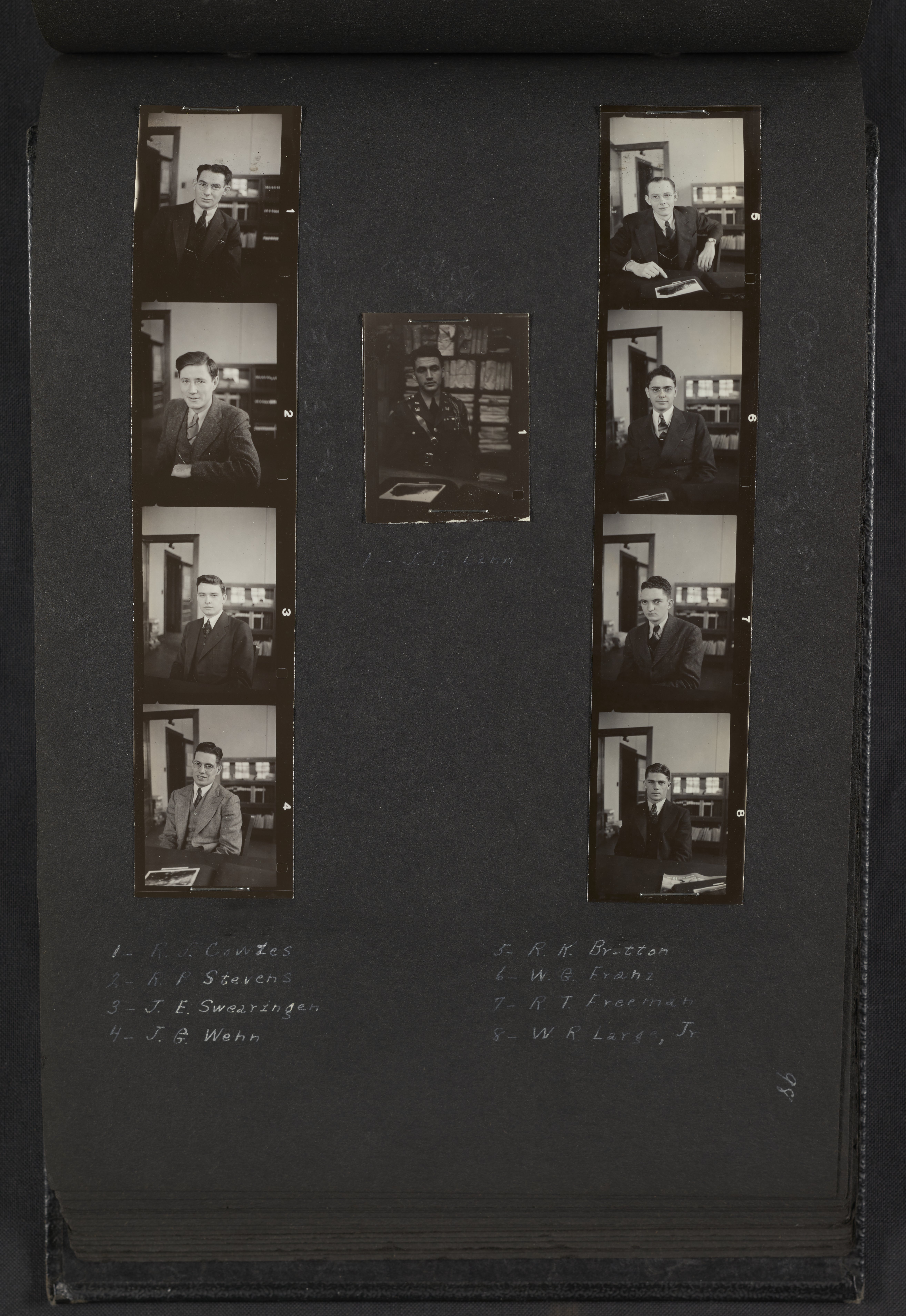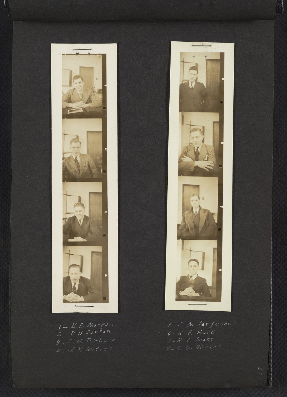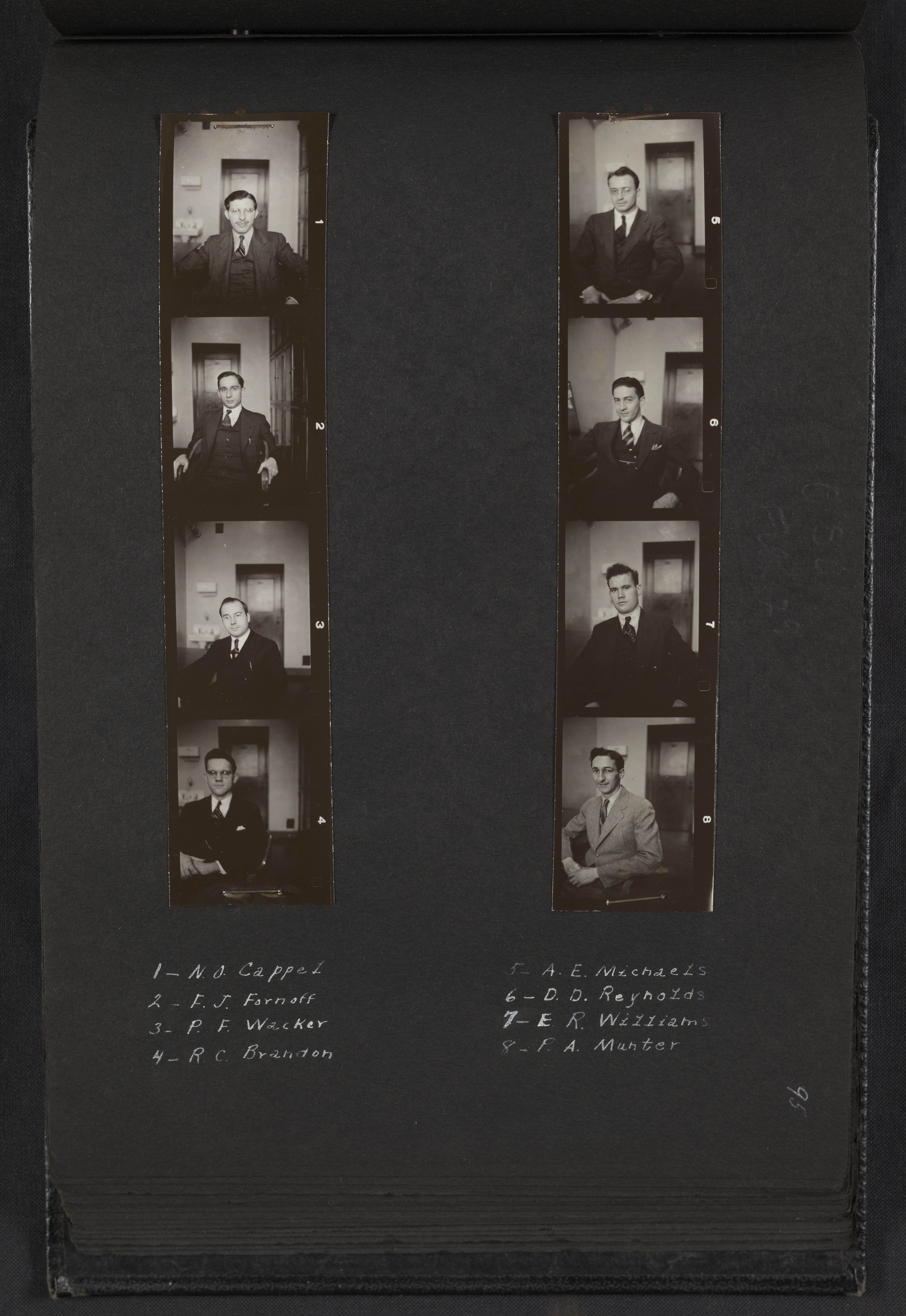 Small JPG1200 x 774px — 253 KBLarge JPG2880 x 1857px — 1.3 MBFull-sized JPG8122 x 5238px — 8.2 MBOriginal fileTIFF — 8122 x 5238px — 122 MBPhotographic album containing approximately 440 black and white portraits of new members of the American Chemical Society for the years 1938-1939. The names and institutional affiliation of each individual are inscribed on the album page. The portraits are grouped by institutional affiliation, including members from Yale, Princeton, Cornell, MIT, Ohio State University, and Purdue.