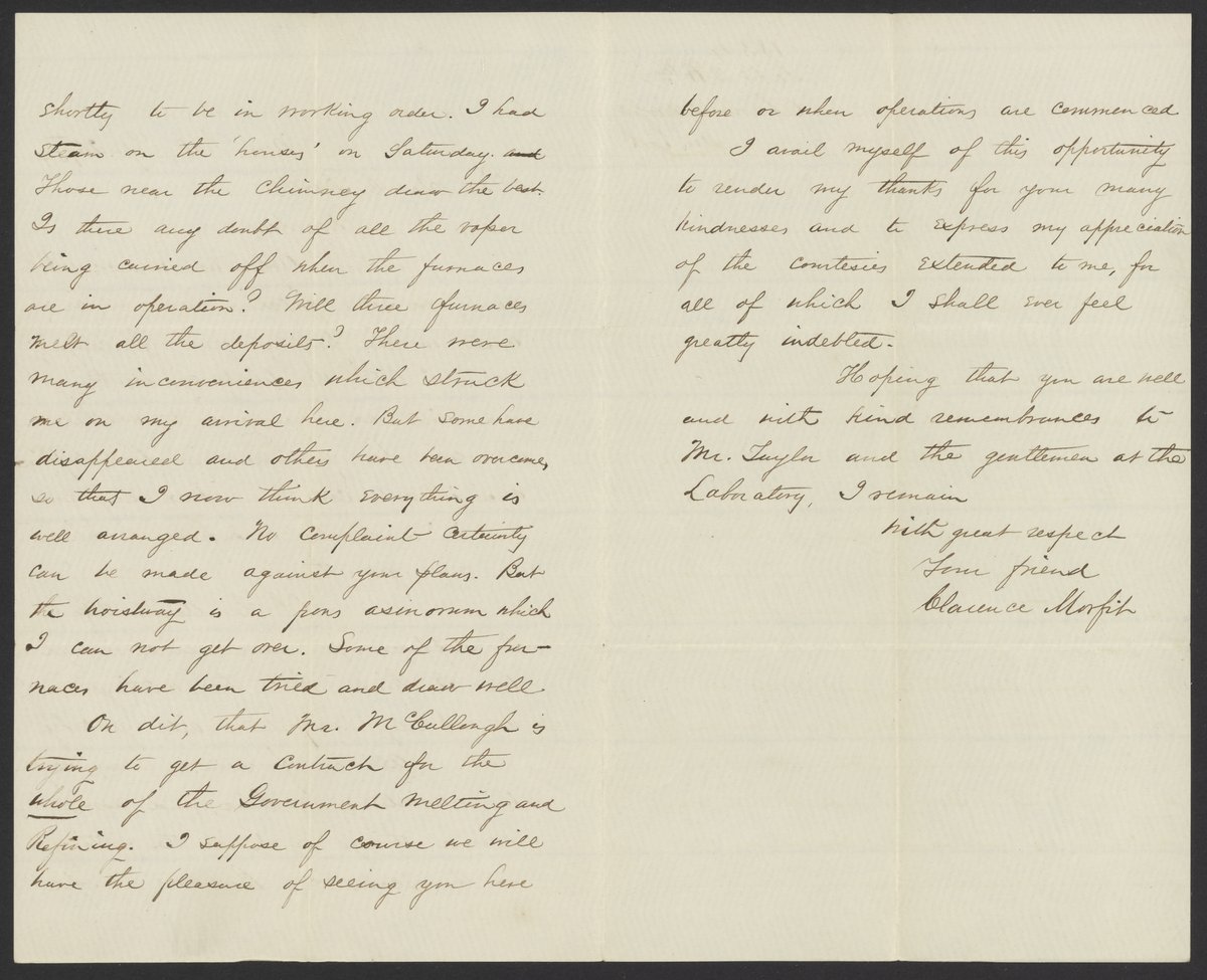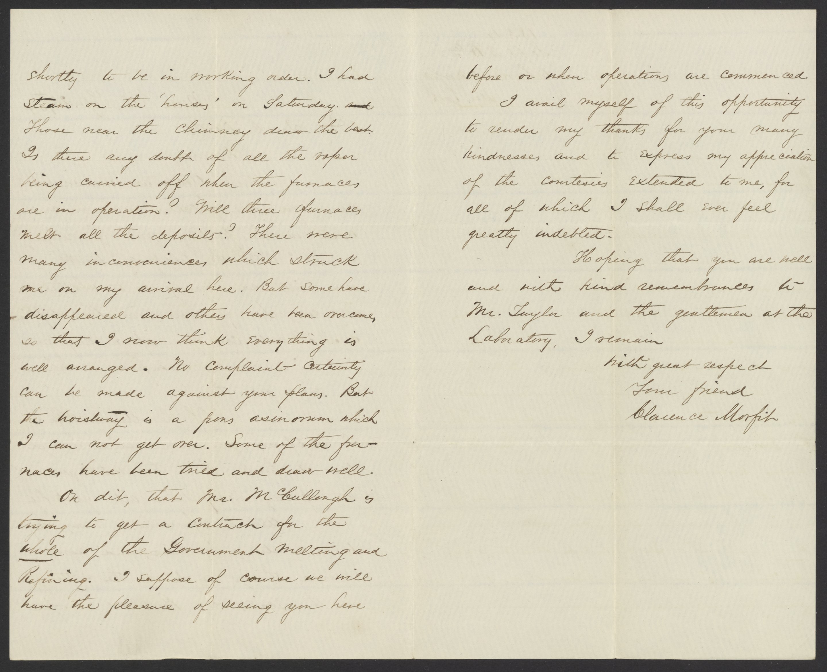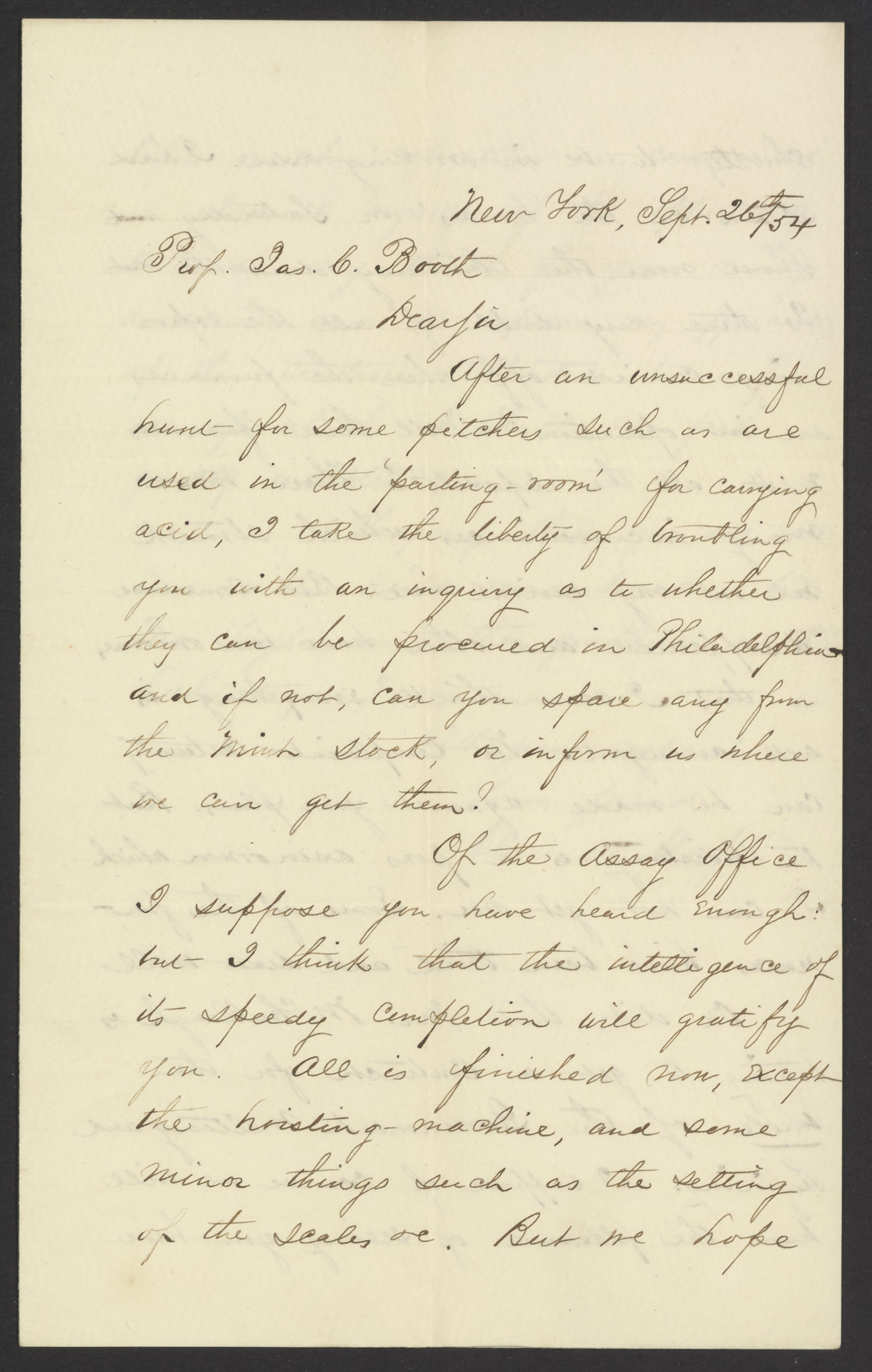 Letter from Clarence Morfit to James Curtis Booth, September 26, 1854
