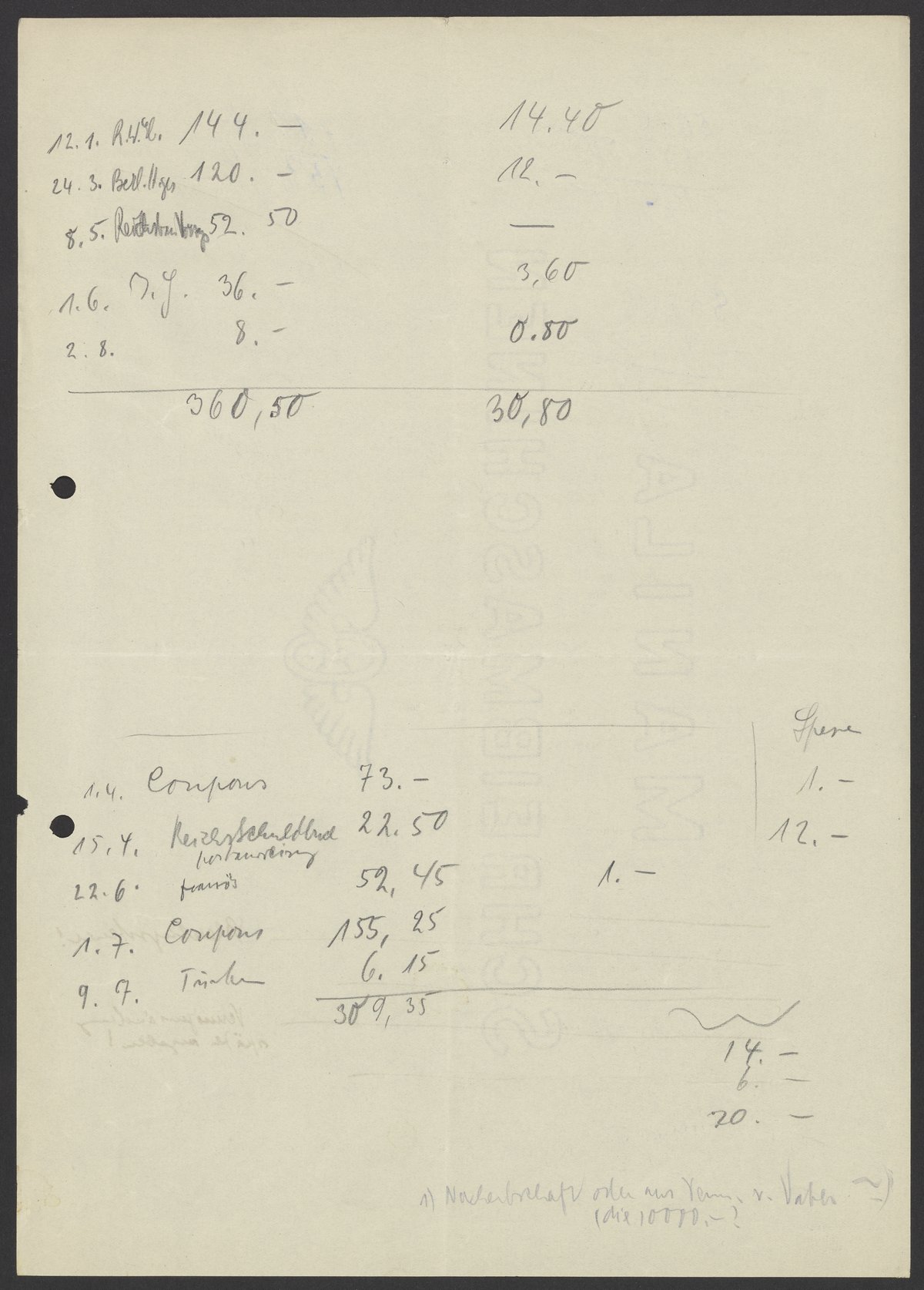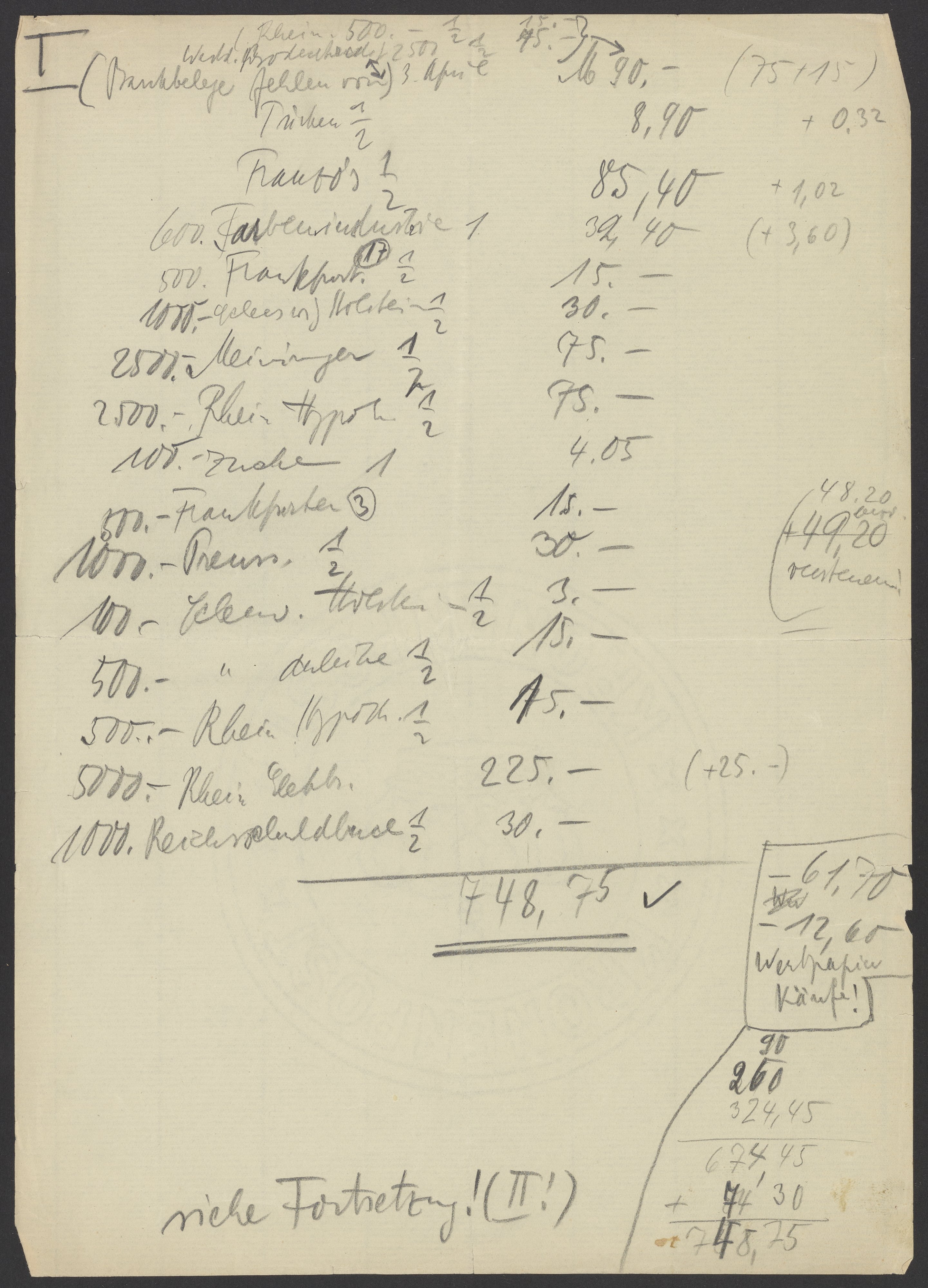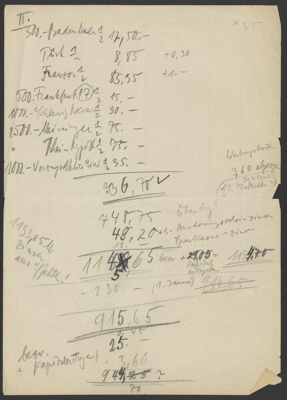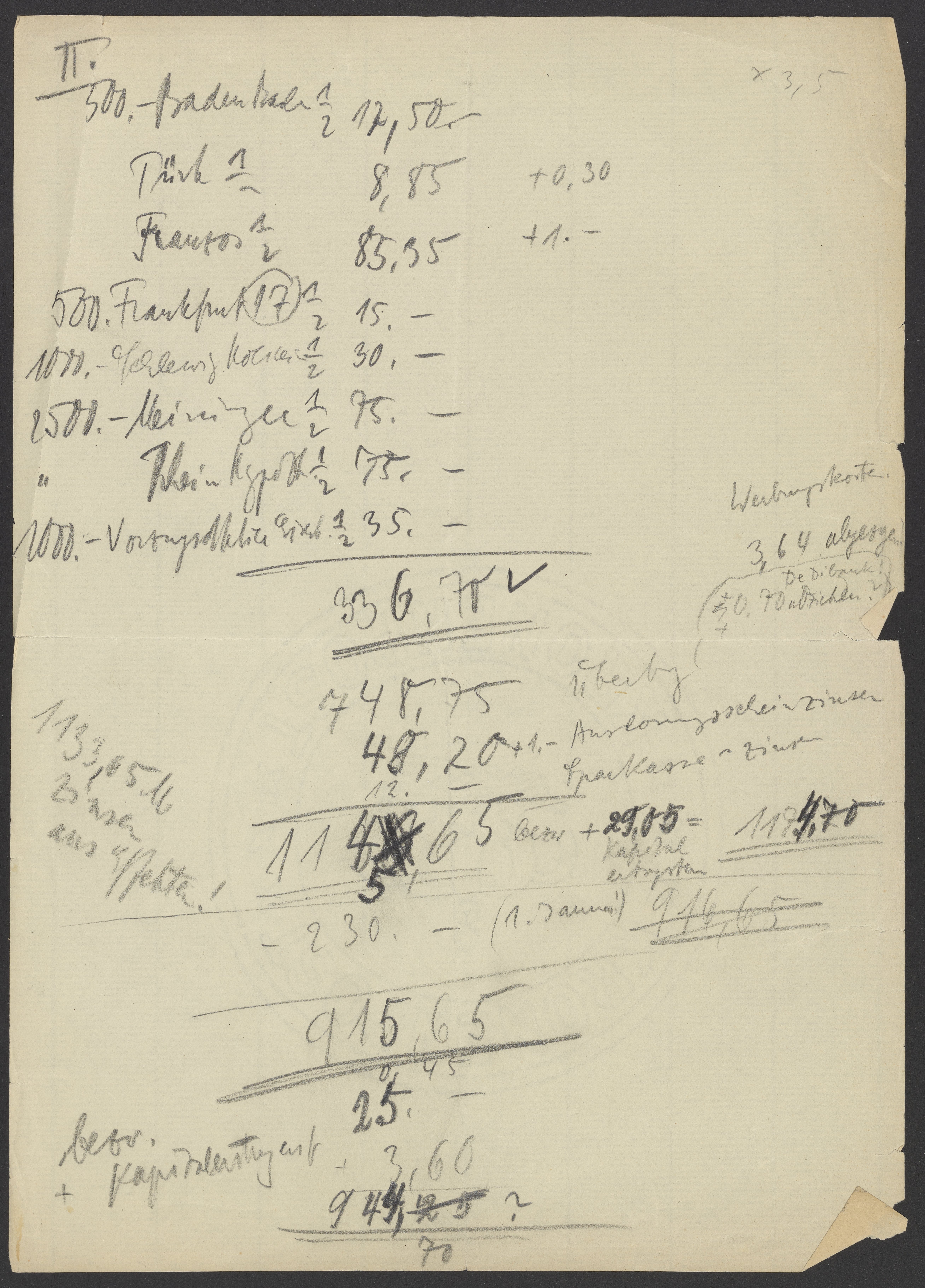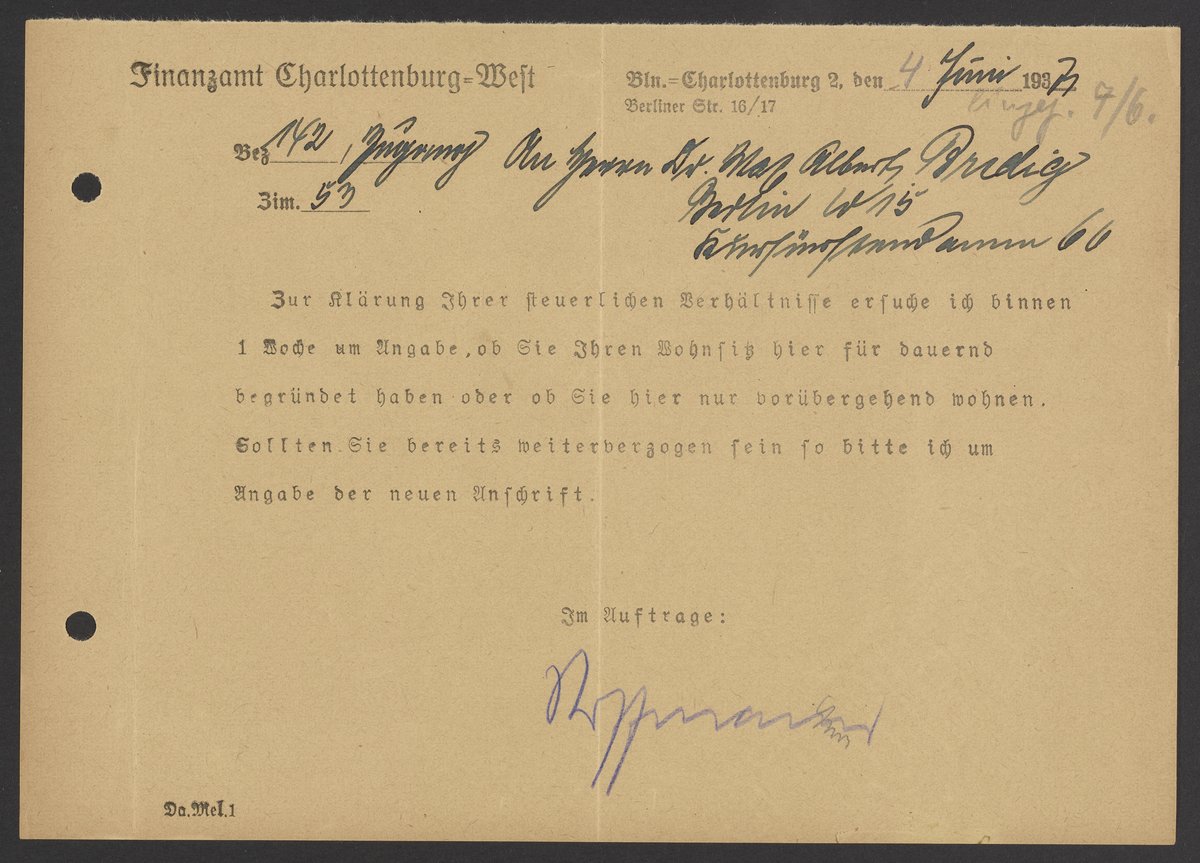 Financial documents of Max Bredig, undated