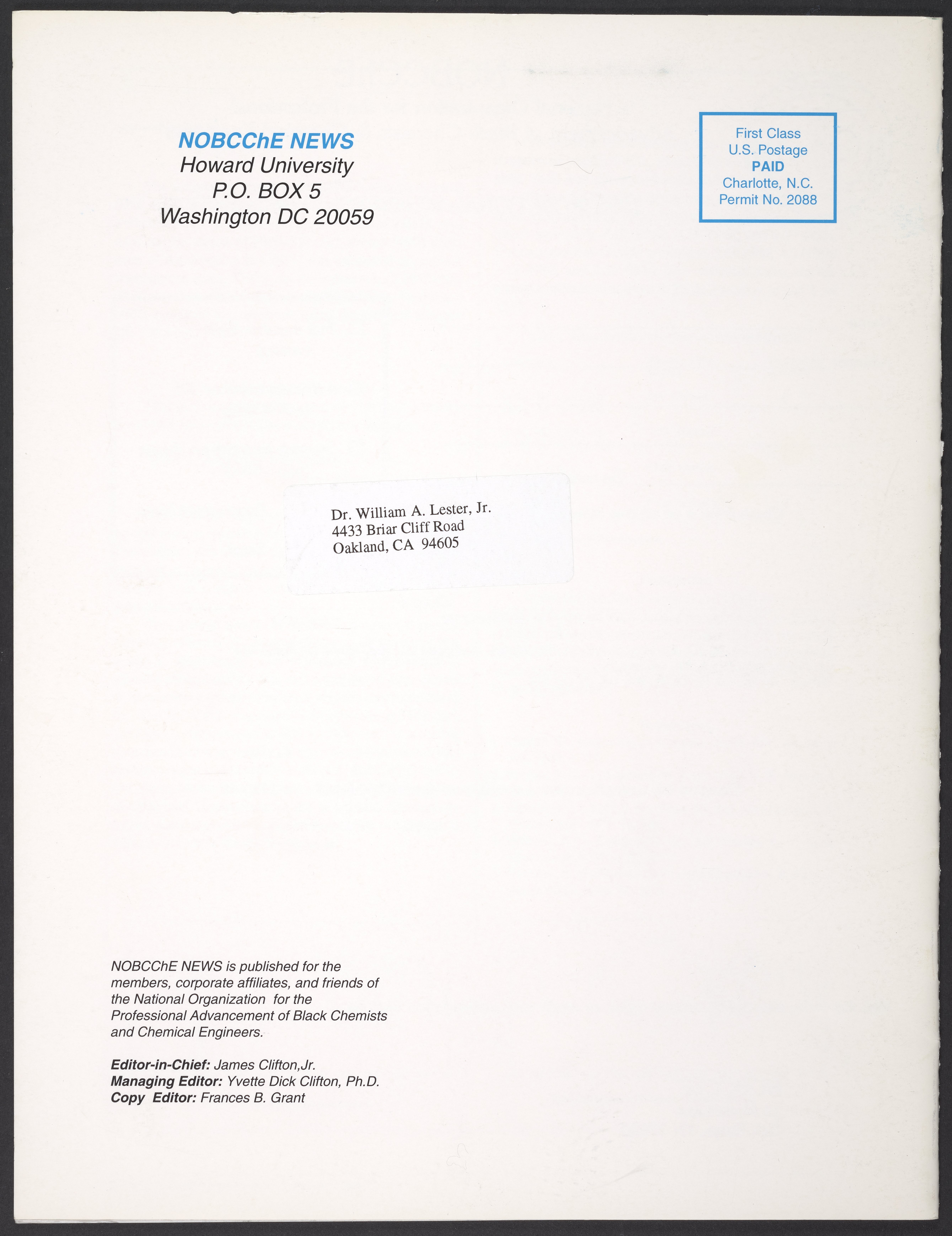 “NOBCChE News, Volume 17, Number 3.” Washington (D.C.): National Organization for Black Chemists and Chemical Engineers, 1996. William A. Lester, Jr. Papers, Box 46, Folder 30. Science History Institute. Philadelphia. https://digital.sciencehistory.org/works/2vz90ew.