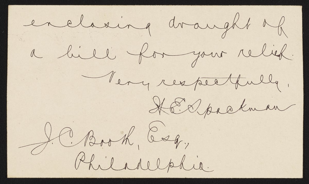 Spackman, H. E. “Note from H.E. Spackman to James Curtis Booth, April 14, 1886,” April 14, 1886. Papers of James Curtis Booth, Box 2, Folder 7. Science History Institute. Philadelphia. https://digital.sciencehistory.org/works/2yhdb24.