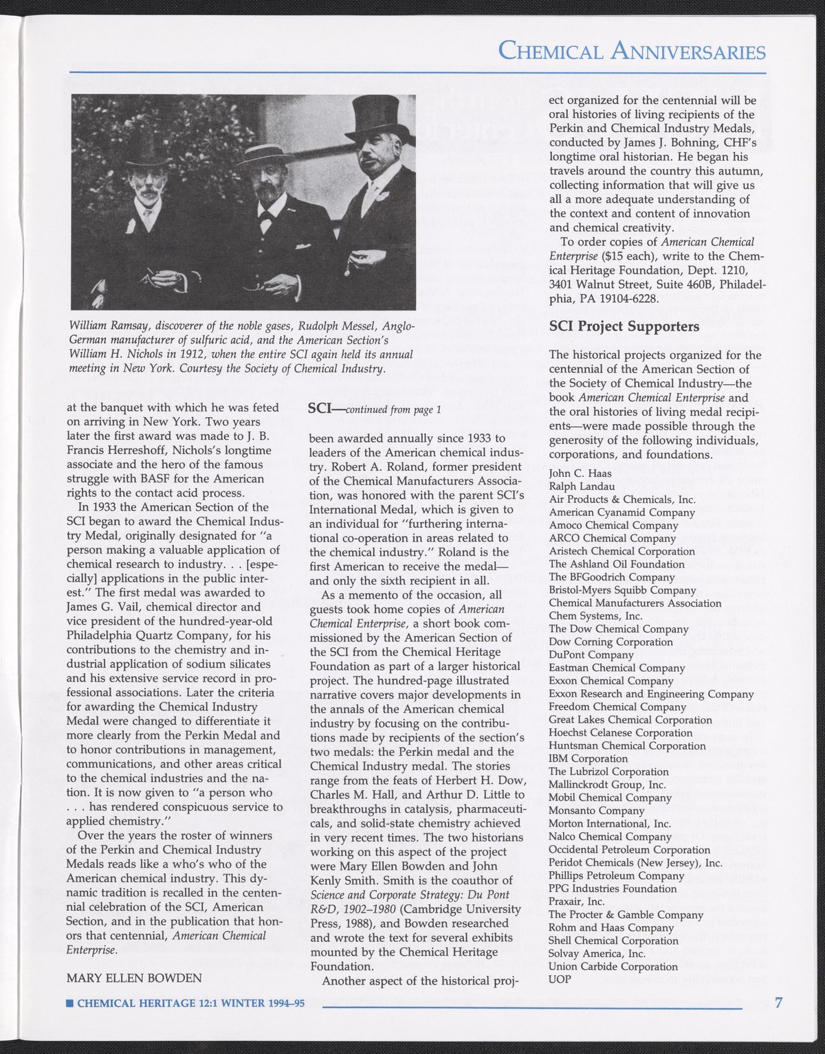 Chemical Heritage, Volume 12 Number 1