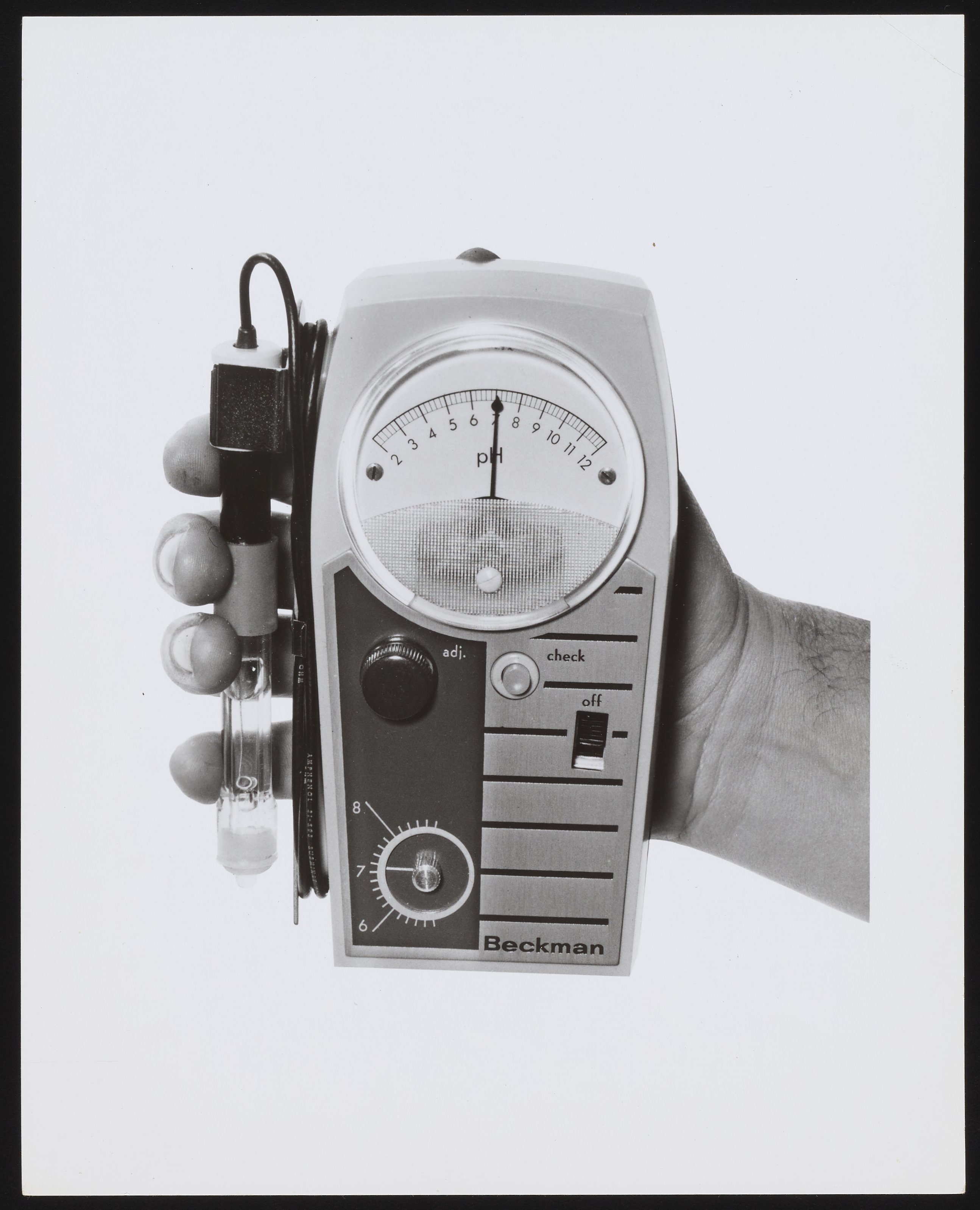 “Beckman Pocket PH Meter,” circa 1956. Beckman Historical Collection, Box 55, Folder 89. Science History Institute. Philadelphia. https://digital.sciencehistory.org/works/3197xm11z.
